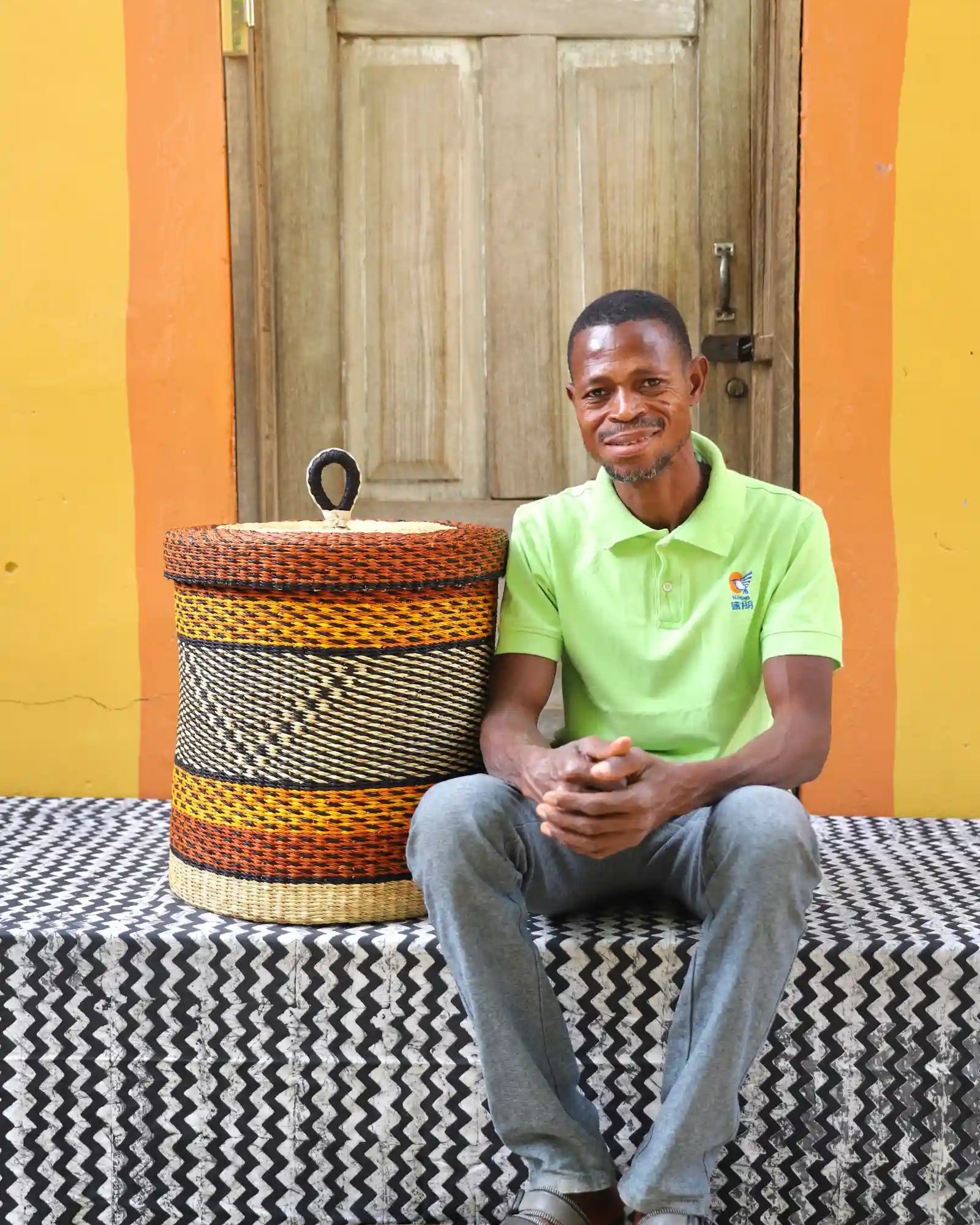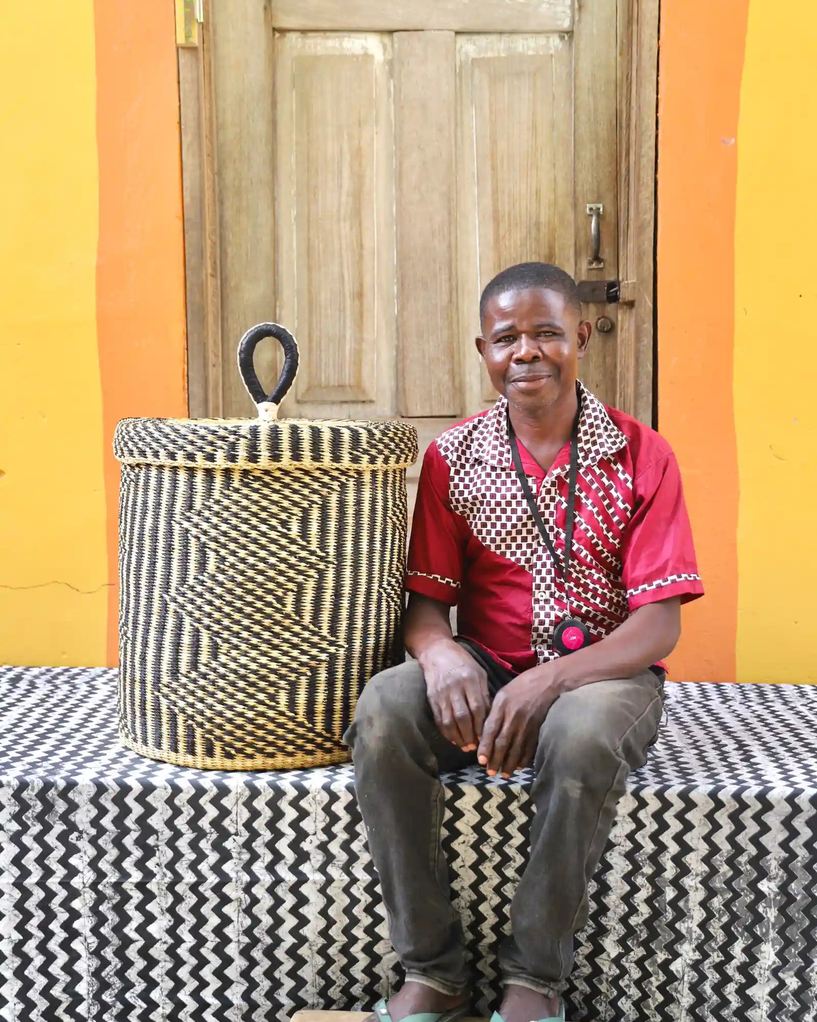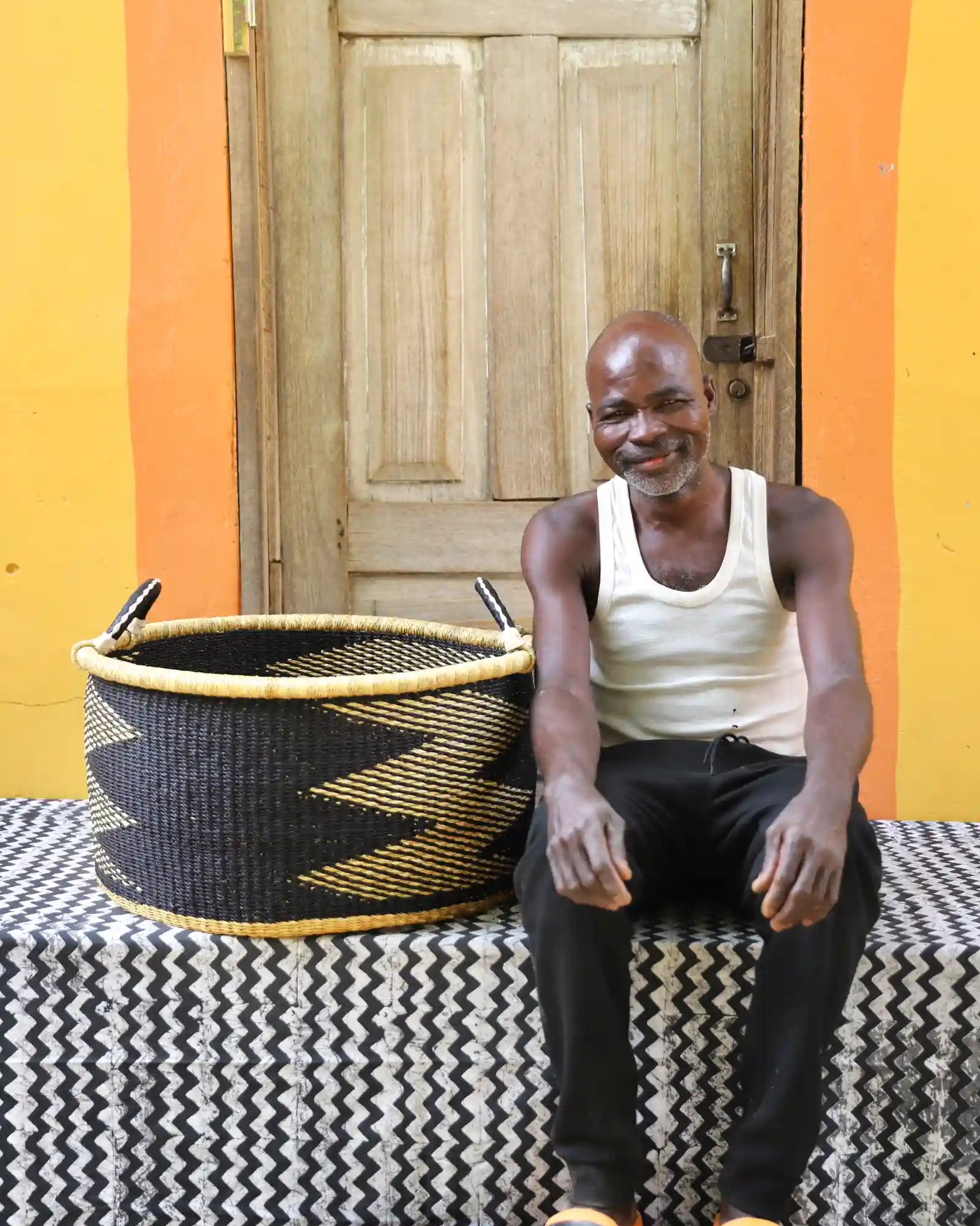 In the photos, the weaver holding each basket is the weaver that created it.