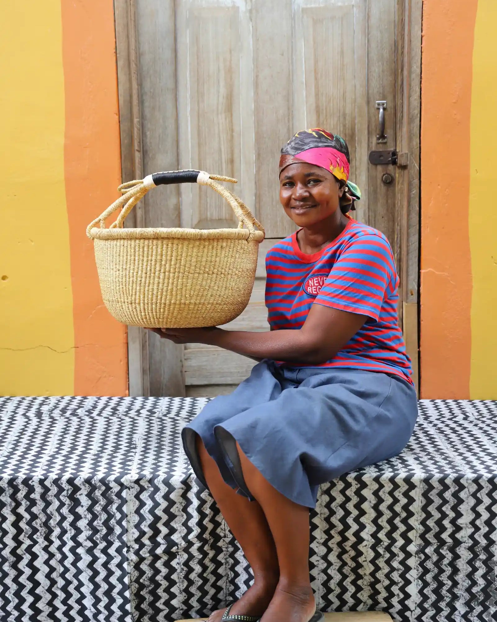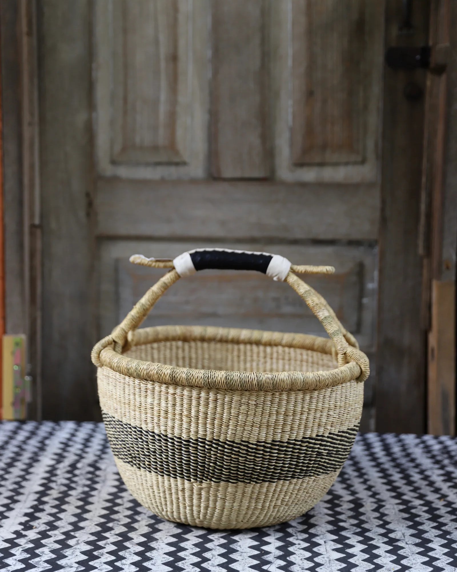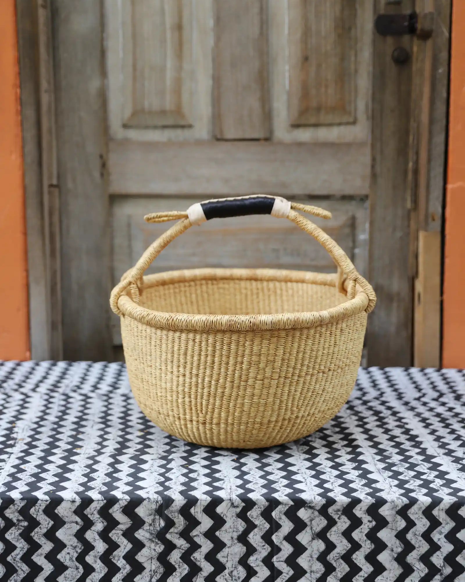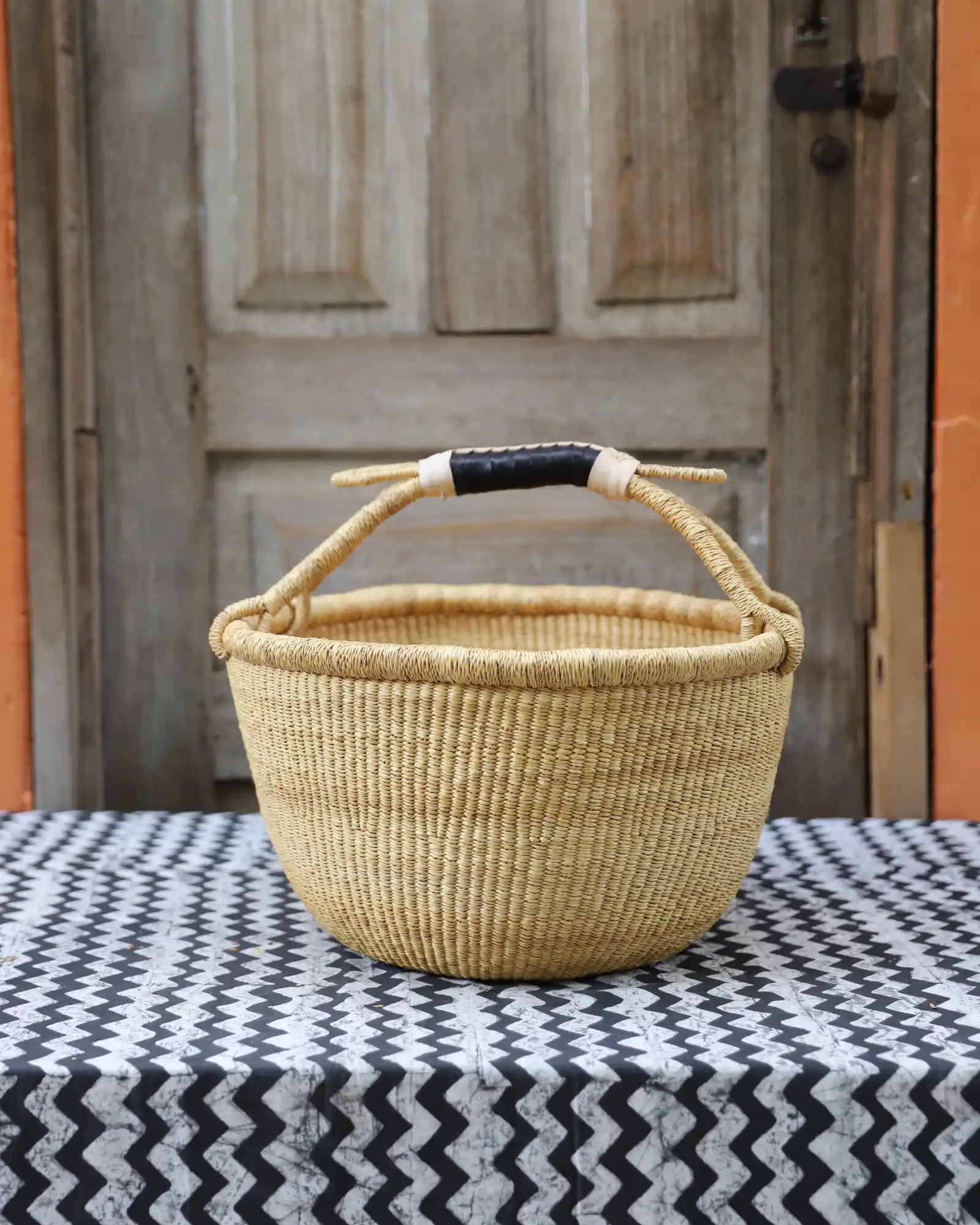 A Bolgatanga classic—this is the basket that started it all, and no one does it better than The Baba Tree. Perfect as your go-to carry all for market trips, beach days, or as a catch-all storage solution at home or in the car. Durable, timeless, and endlessly useful.