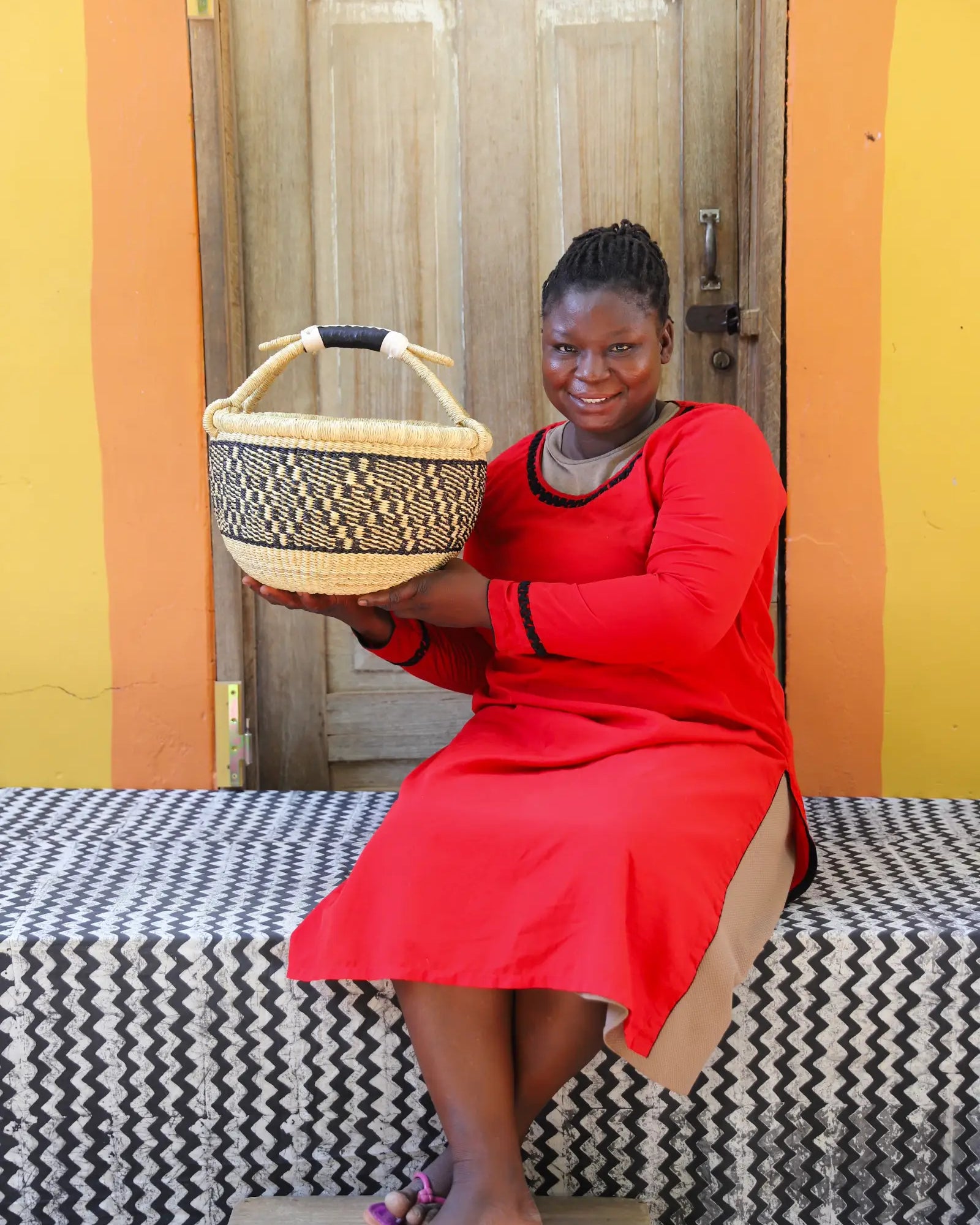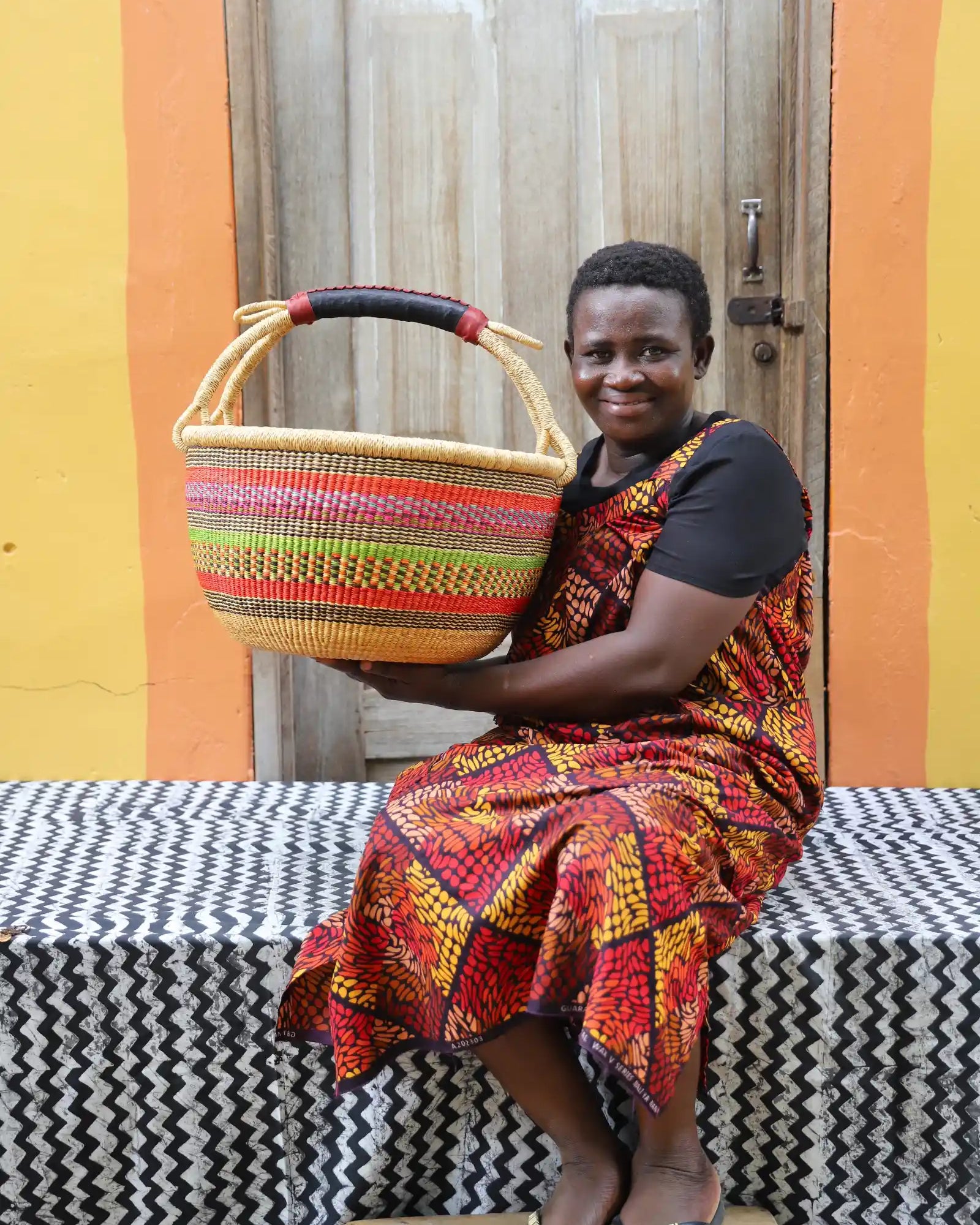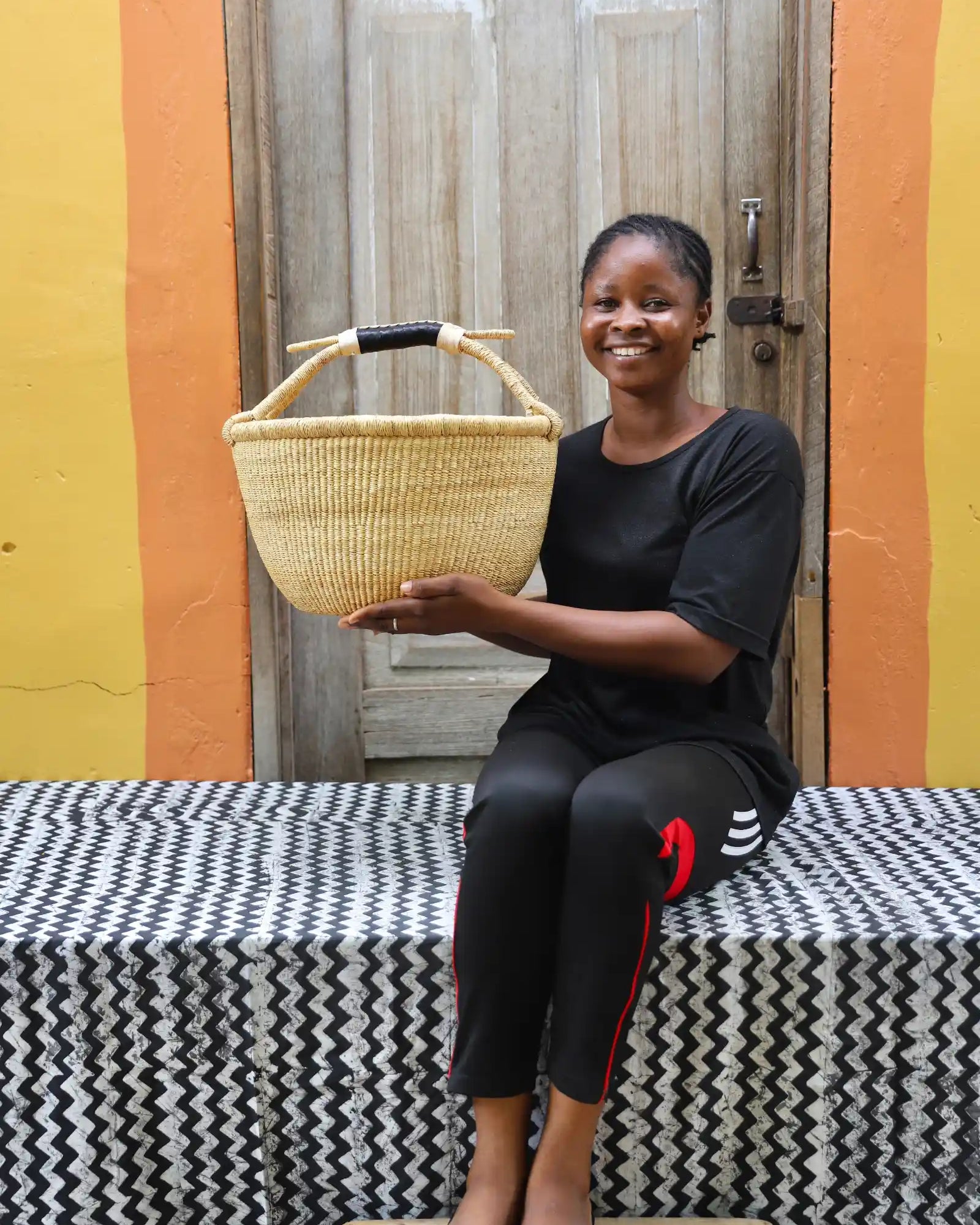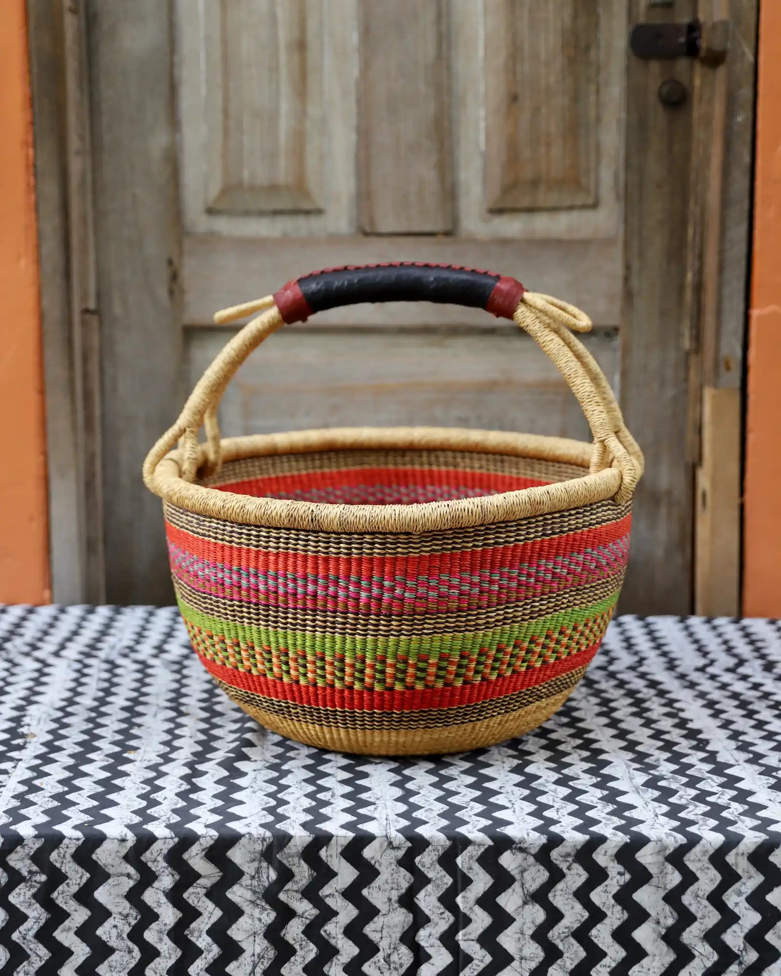 A Bolgatanga classic—this is the basket that started it all, and no one does it better than The Baba Tree. Perfect as your go-to carry all for market trips, beach days, or as a catch-all storage solution at home or in the car. Durable, timeless, and endlessly useful.