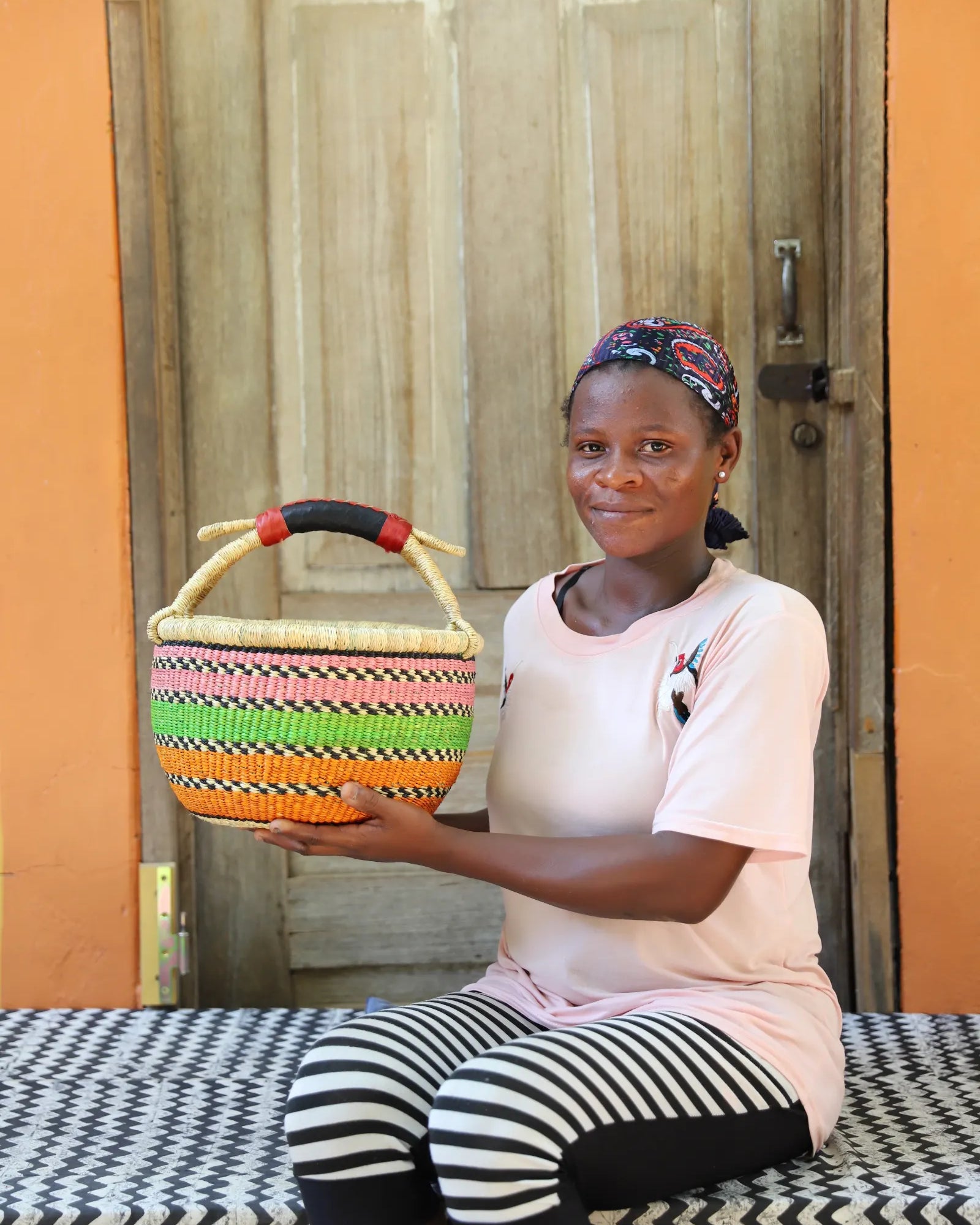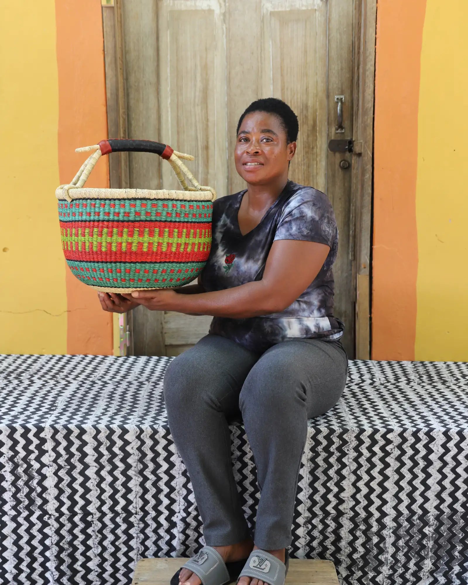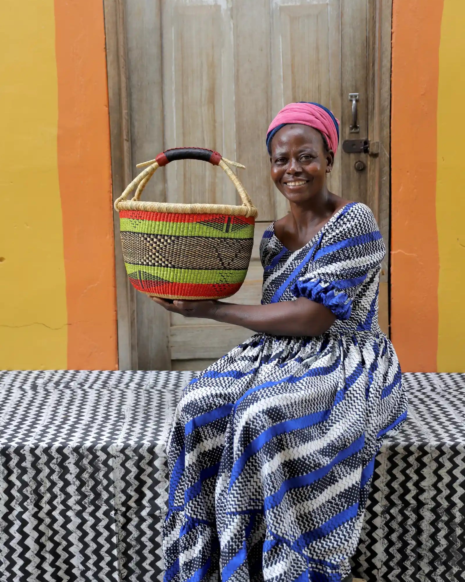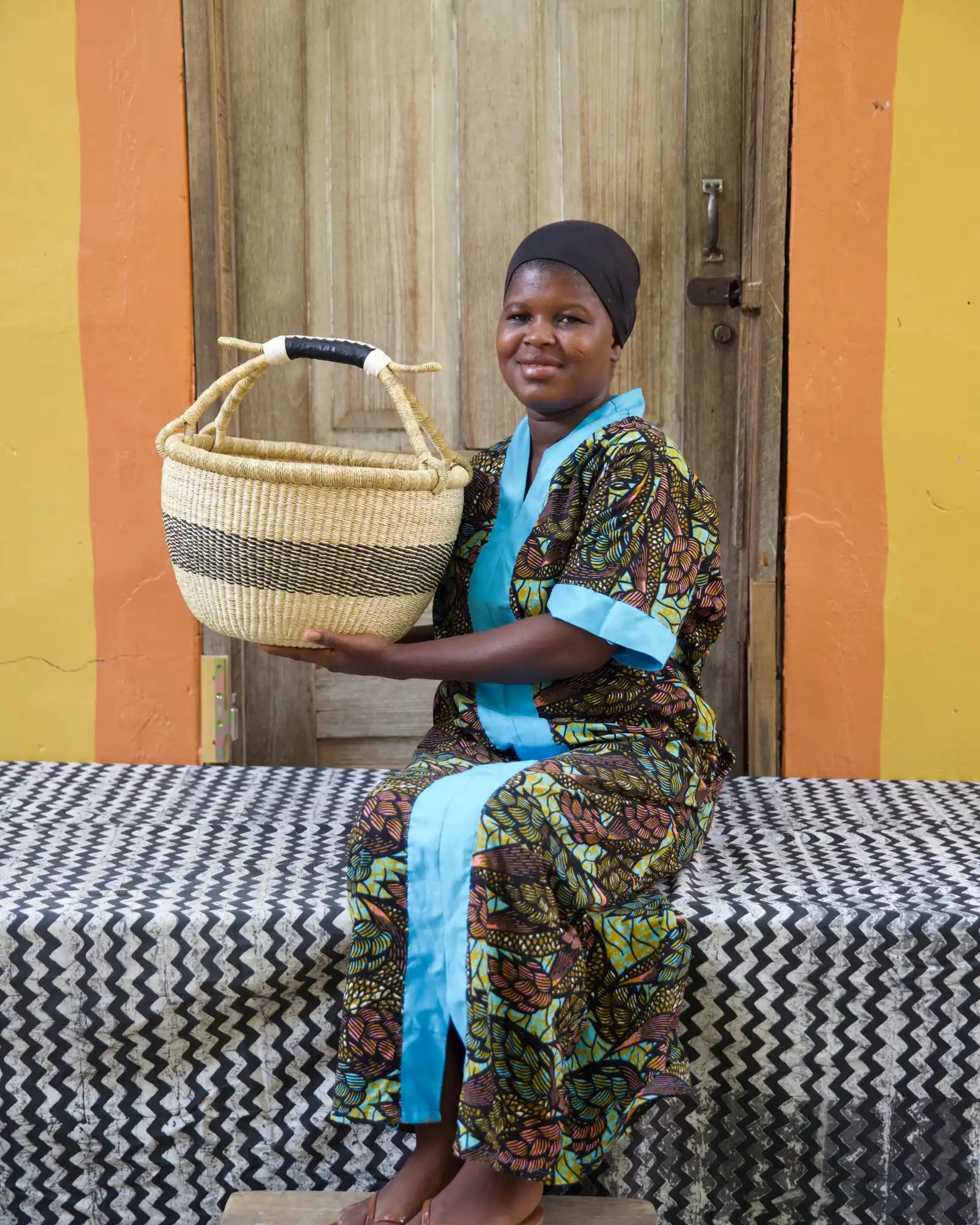 A Bolgatanga classic—this is the basket that started it all, and no one does it better than The Baba Tree. Perfect as your go-to carry all for market trips, beach days, or as a catch-all storage solution at home or in the car. Durable, timeless, and endlessly useful.