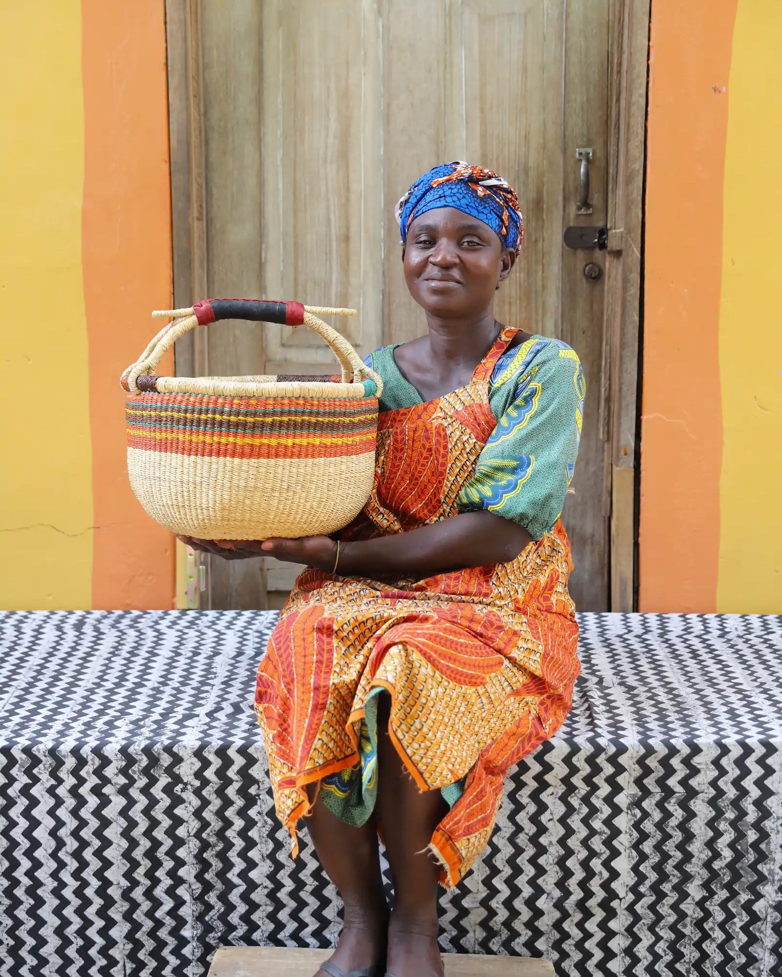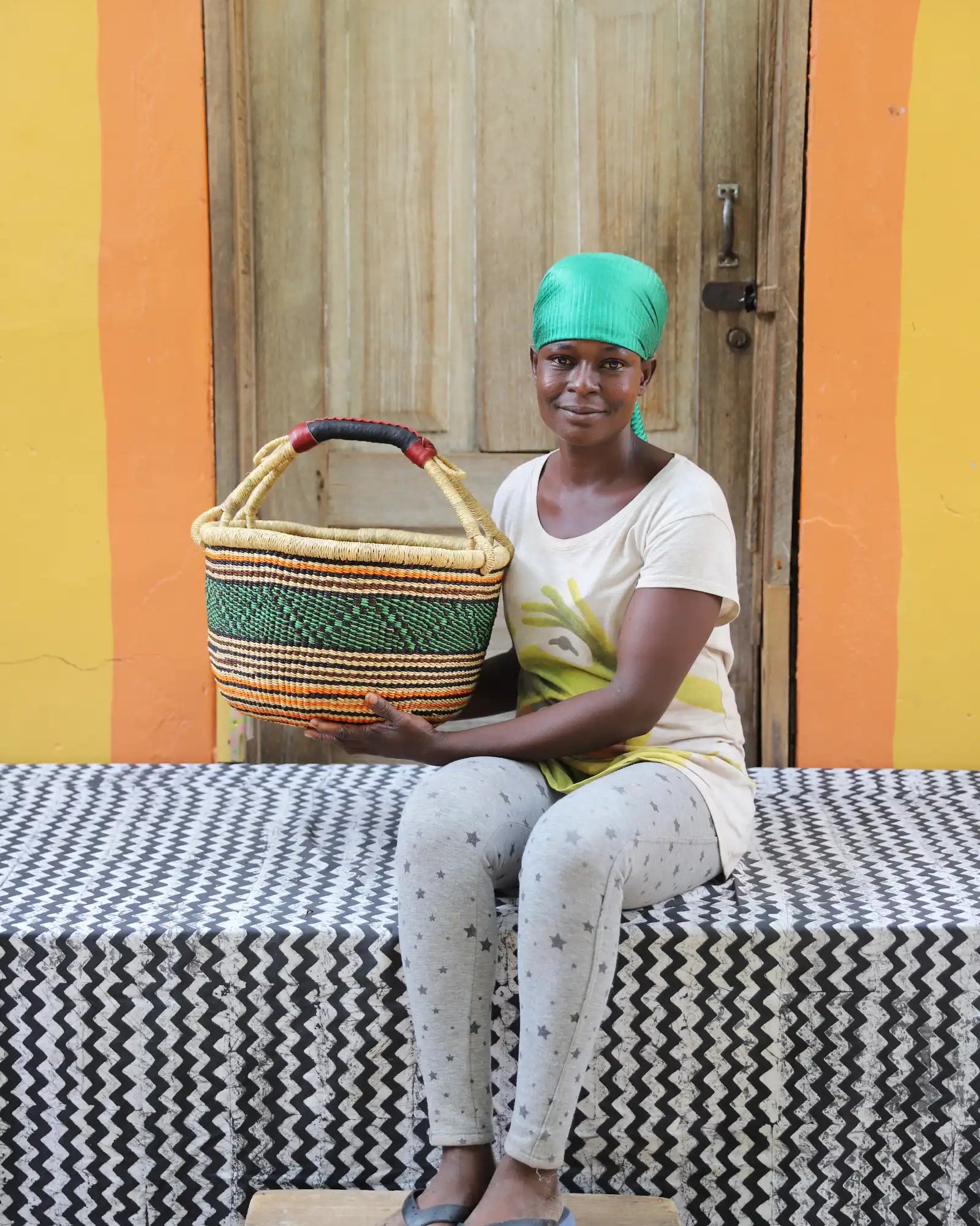 A Bolgatanga classic—this is the basket that started it all, and no one does it better than The Baba Tree. Perfect as your go-to carry all for market trips, beach days, or as a catch-all storage solution at home or in the car. Durable, timeless, and endlessly useful.