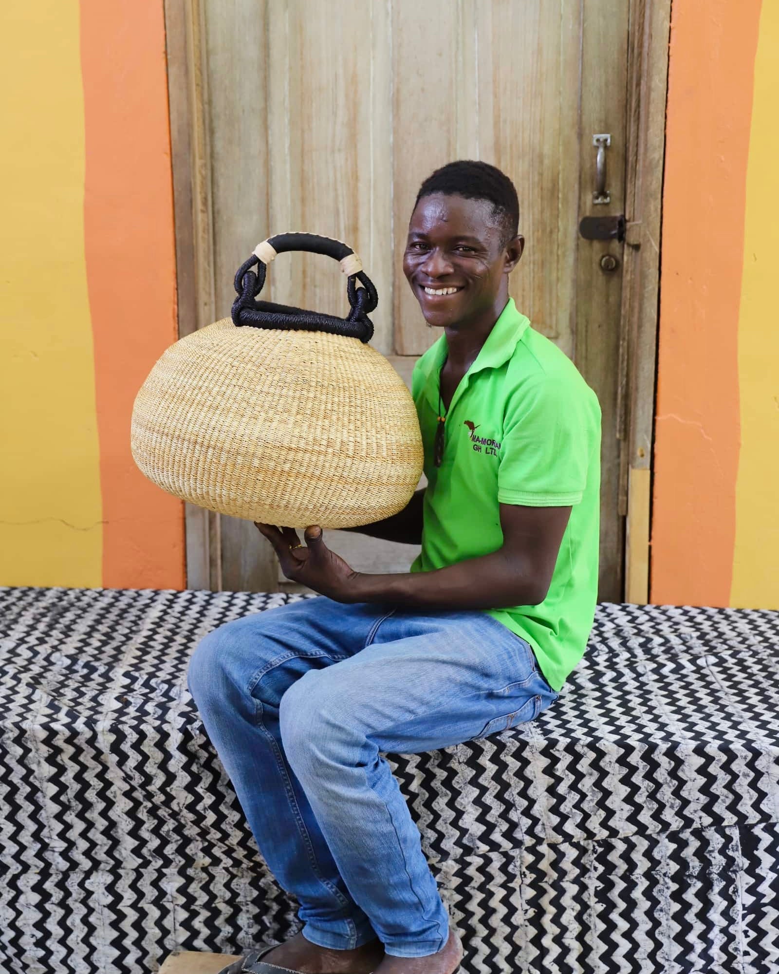 A popular yet challenging basket to weave, our artisans have truly made this design sing. Though not suited for heavy shopping, this Baba Tree Pot Basket is equal parts art and storage, perfect for everything from that special vacation rock to keepsakes and to those little mysteries only you understand.