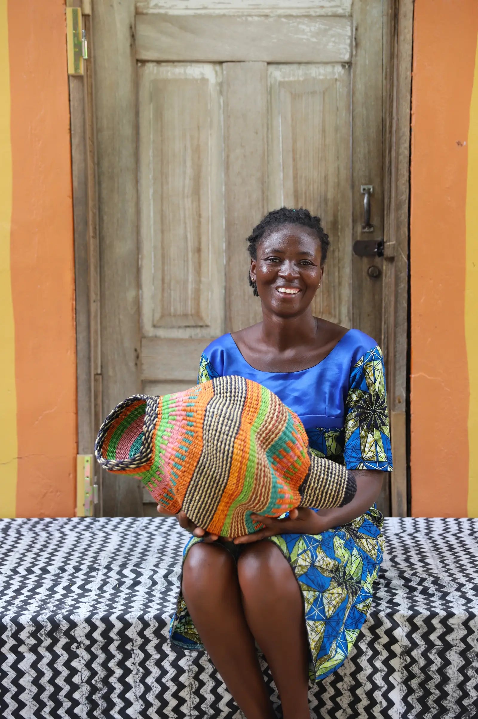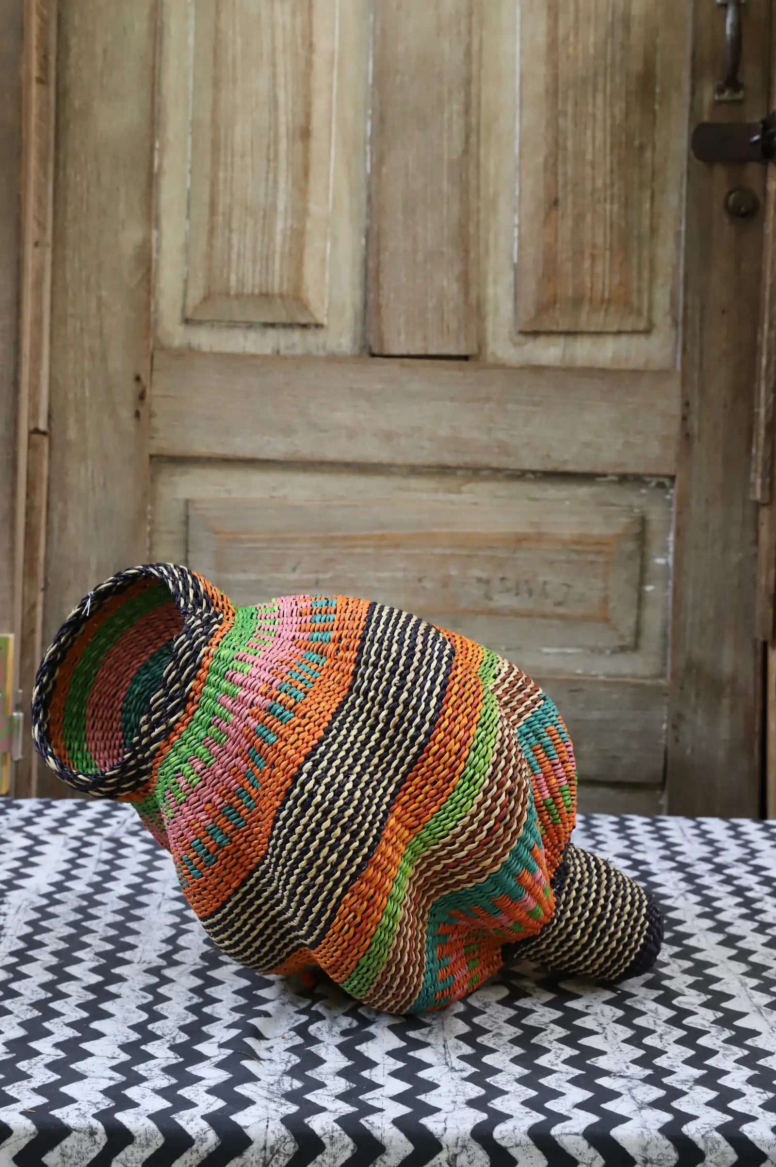 Katayeli-tia (Conch), known as the snail basket in Gurune, is an ode to the feminine. Crafted by artisan Perpetual over 3 1⁄2 weeks, its exquisite spiral design captivates with multi-dimensional beauty. Perfect as a striking statement in an entrance or overlooking the ocean in your beach home.