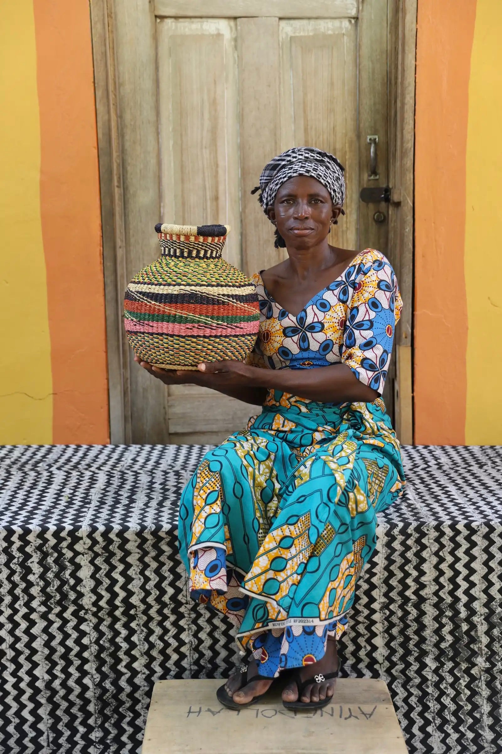 Jemima Akolgo was the first to weave this form in Bolgatanga—naming it after her is our tribute to her artistry and spirit. The Jemima 10 Cows basket remains a beloved classic, beautifully crafted for every home. Honouring tradition, embracing innovation—that’s the Baba Tree way.