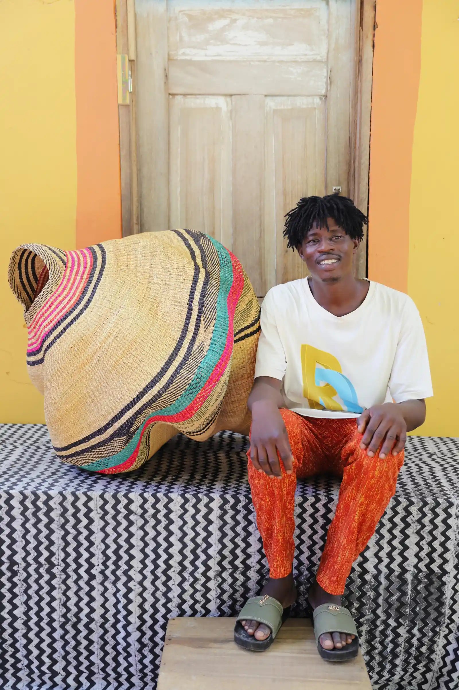 Katayeli-tia (Conch), known as the snail basket in Gurune, is an ode to the feminine. Crafted by artisan Perpetual over 3 1⁄2 weeks, its exquisite spiral design captivates with multi-dimensional beauty. Perfect as a striking statement in an entrance or overlooking the ocean in your beach home.