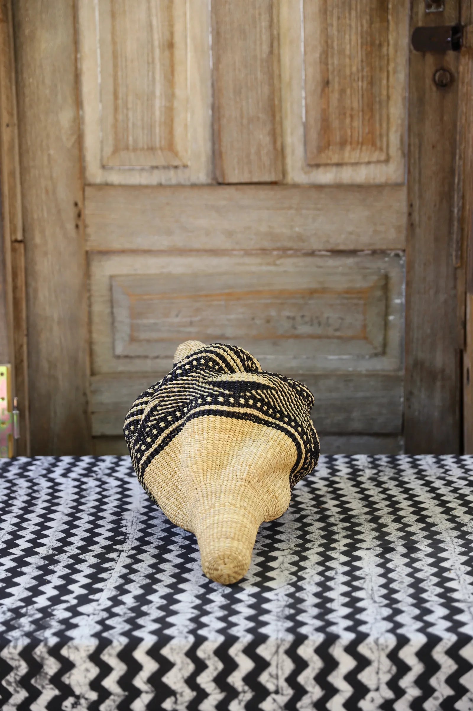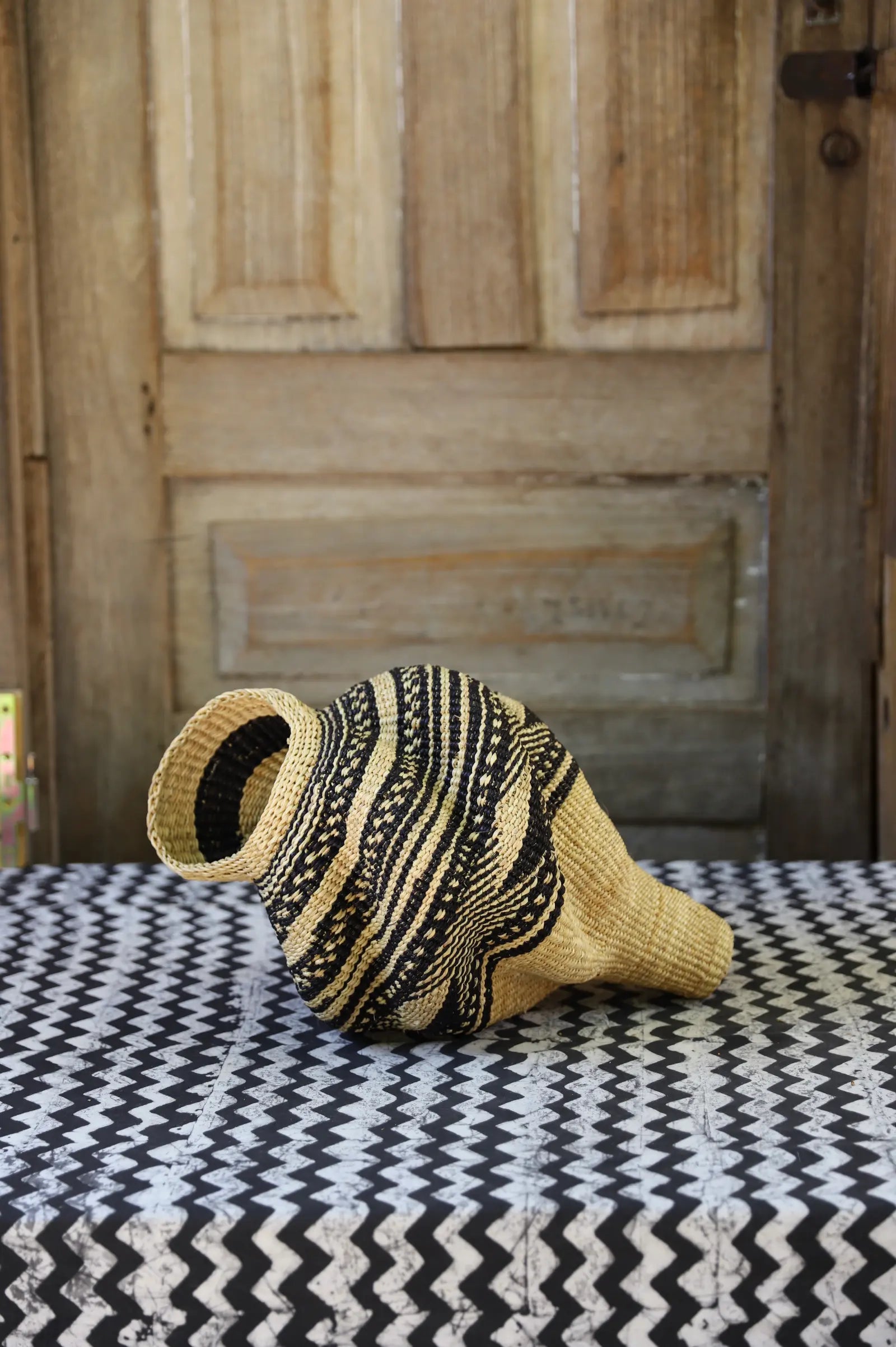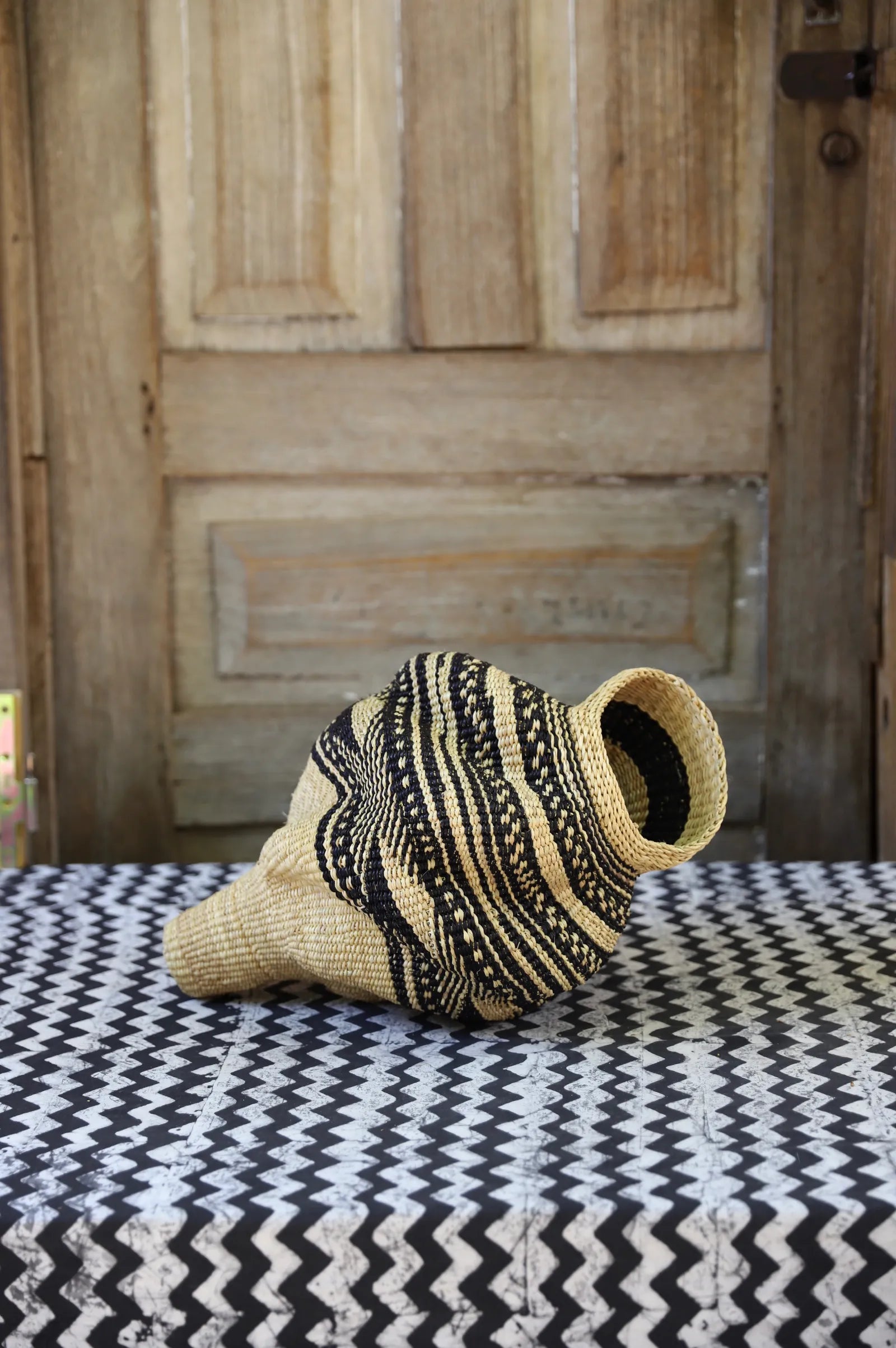 Katayeli-tia (Conch), known as the snail basket in Gurune, is an ode to the feminine. Crafted by artisan Perpetual over 3 1⁄2 weeks, its exquisite spiral design captivates with multi-dimensional beauty. Perfect as a striking statement in an entrance or overlooking the ocean in your beach home.