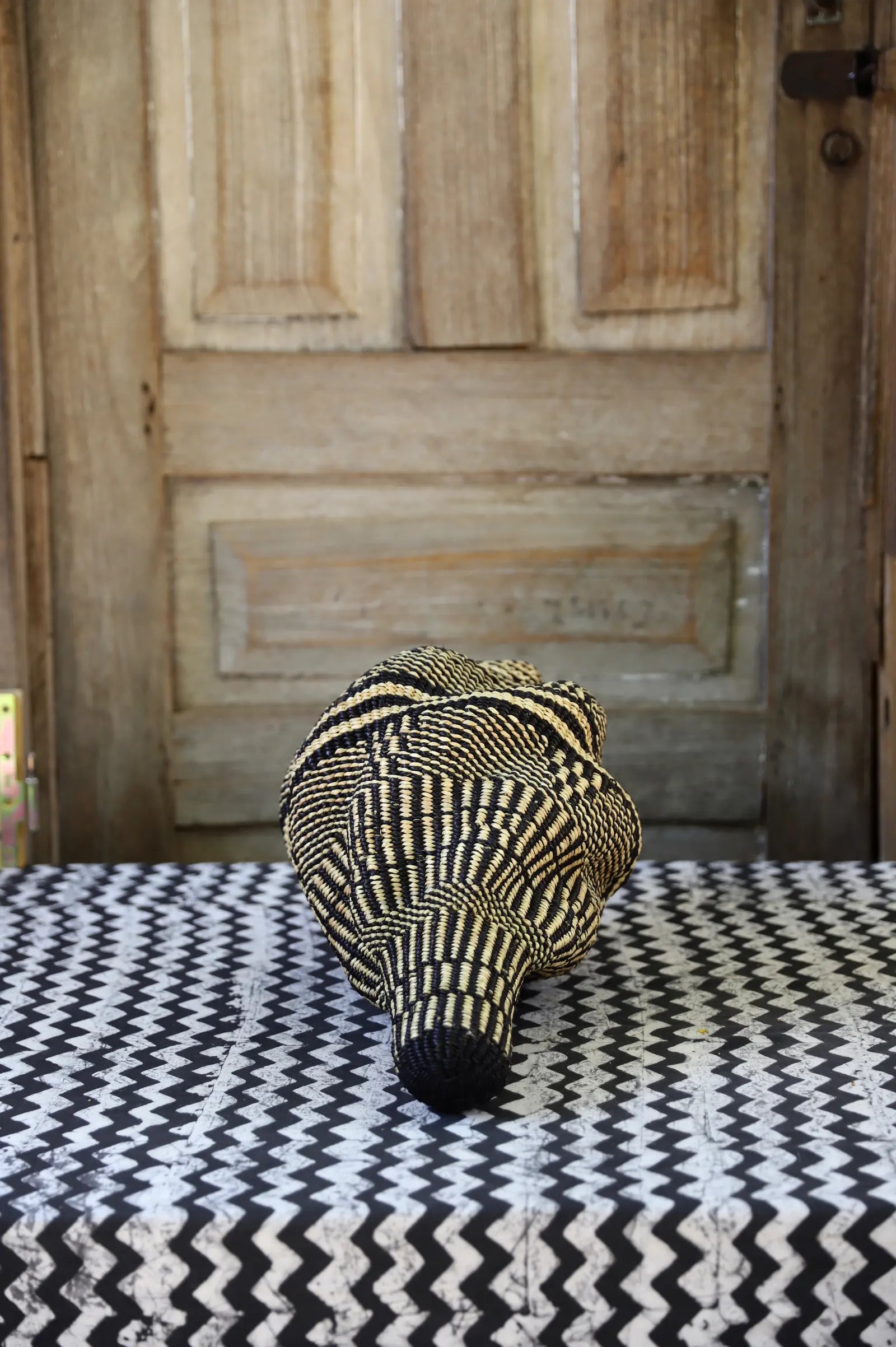 Katayeli-tia (Conch), known as the snail basket in Gurune, is an ode to the feminine. Crafted by artisan Perpetual over 3 1⁄2 weeks, its exquisite spiral design captivates with multi-dimensional beauty. Perfect as a striking statement in an entrance or overlooking the ocean in your beach home.