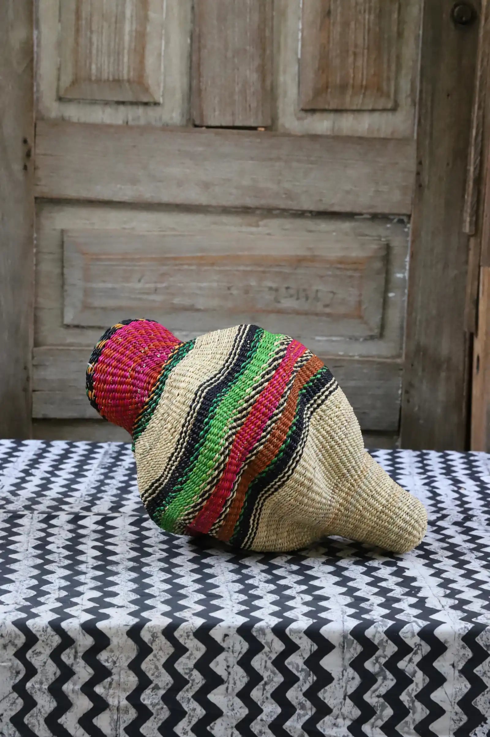 Katayeli-tia (Conch), known as the snail basket in Gurune, is an ode to the feminine. Crafted by artisan Perpetual over 3 1⁄2 weeks, its exquisite spiral design captivates with multi-dimensional beauty. Perfect as a striking statement in an entrance or overlooking the ocean in your beach home.