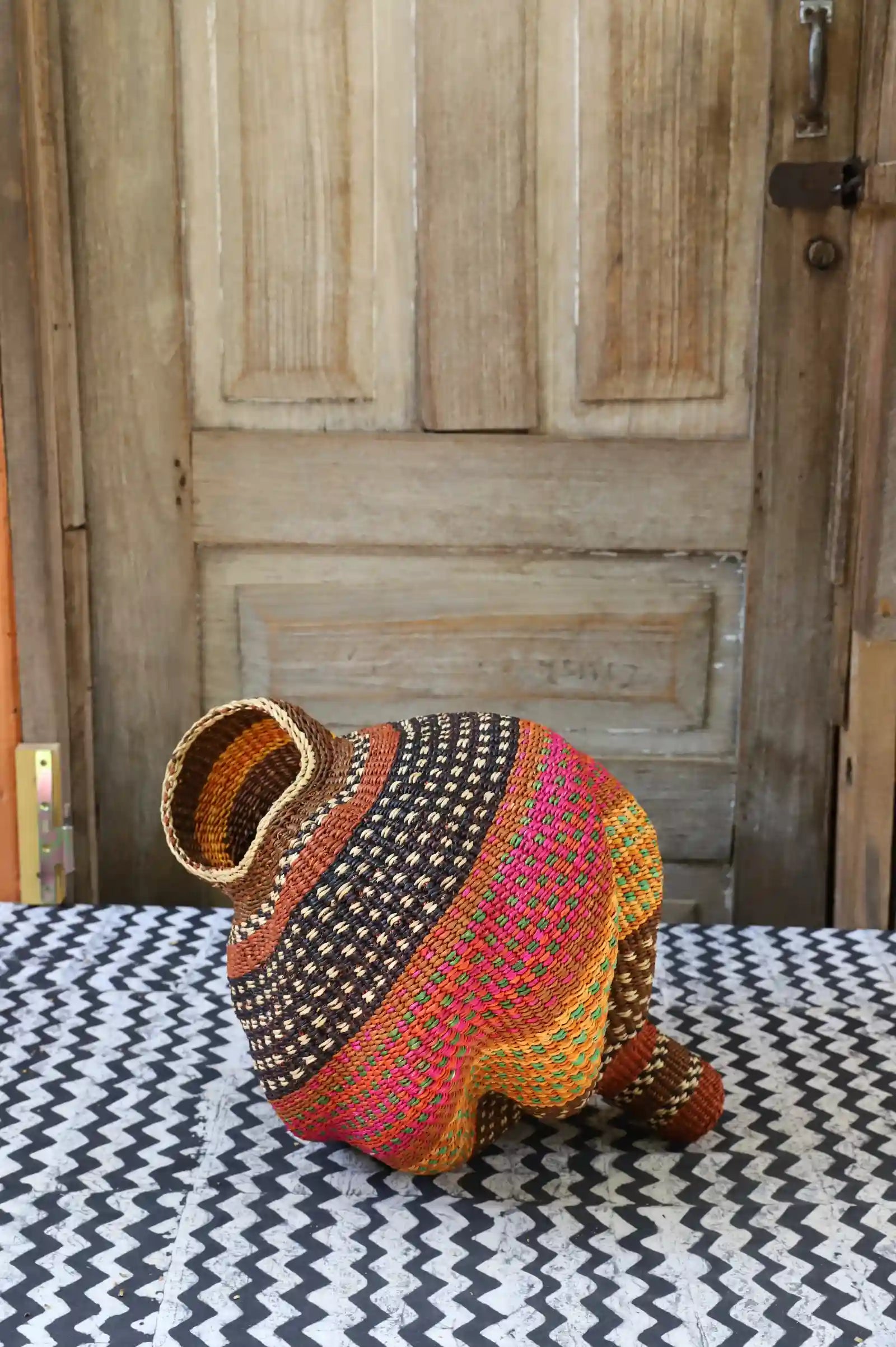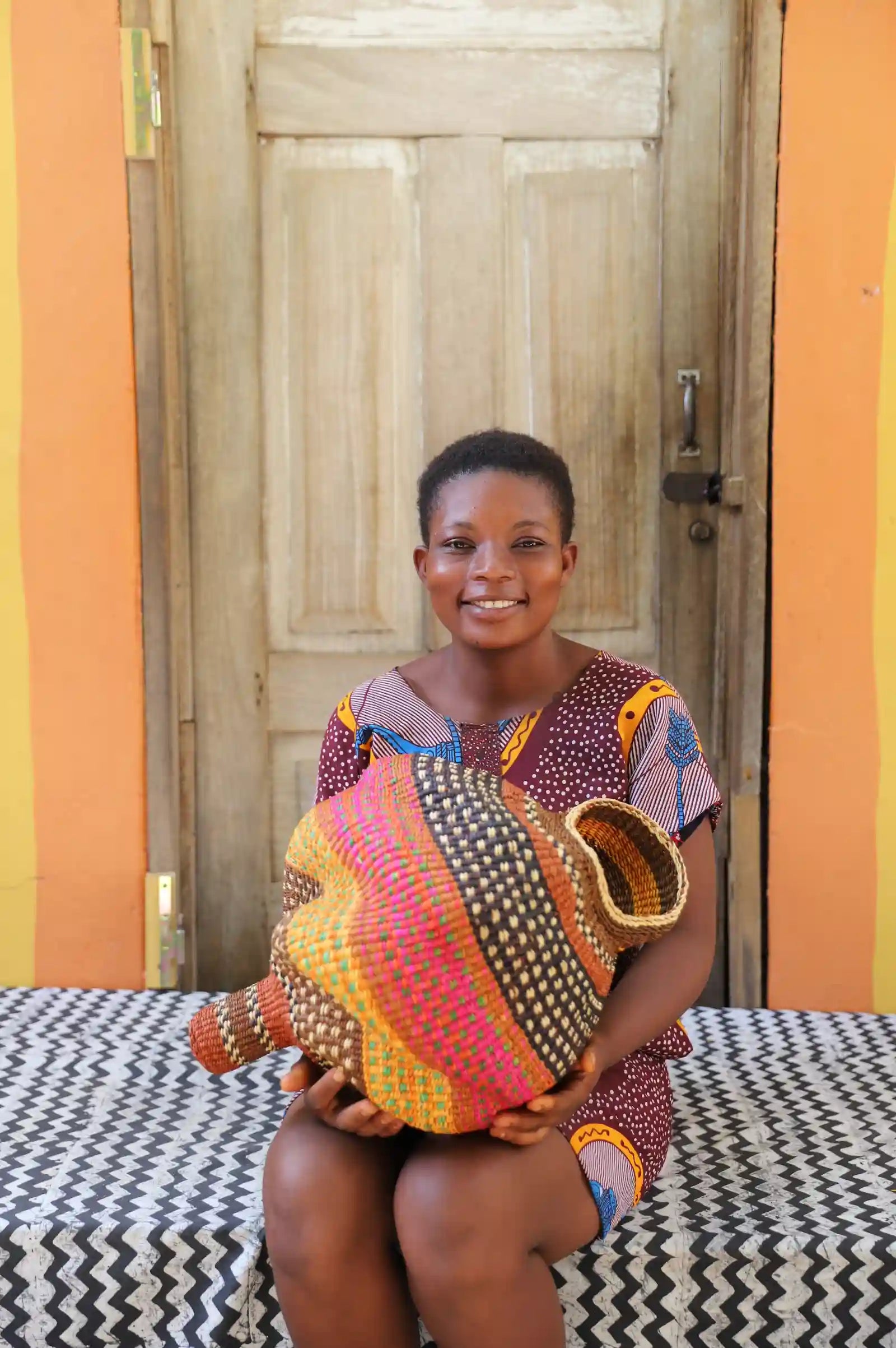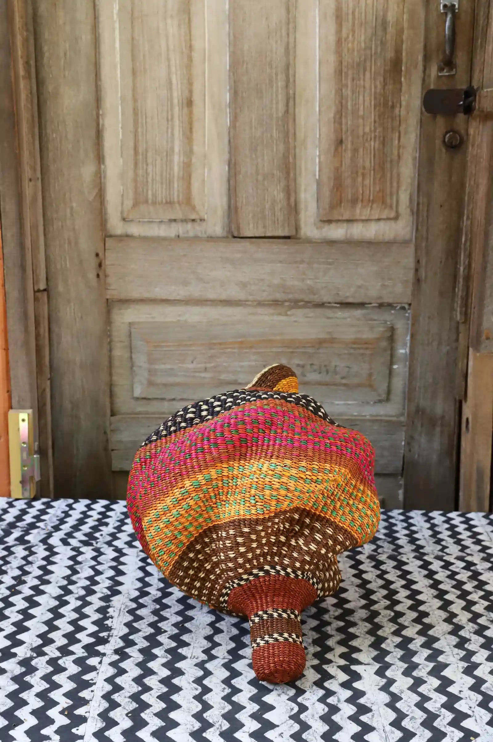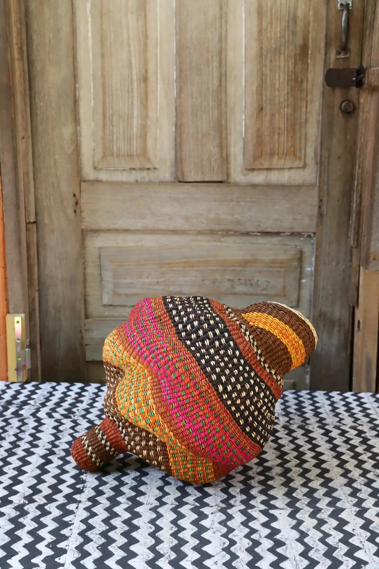 Katayeli-tia (Conch), known as the snail basket in Gurune, is an ode to the feminine. Crafted by artisan Perpetual over 3 1⁄2 weeks, its exquisite spiral design captivates with multi-dimensional beauty. Perfect as a striking statement in an entrance or overlooking the ocean in your beach home.
