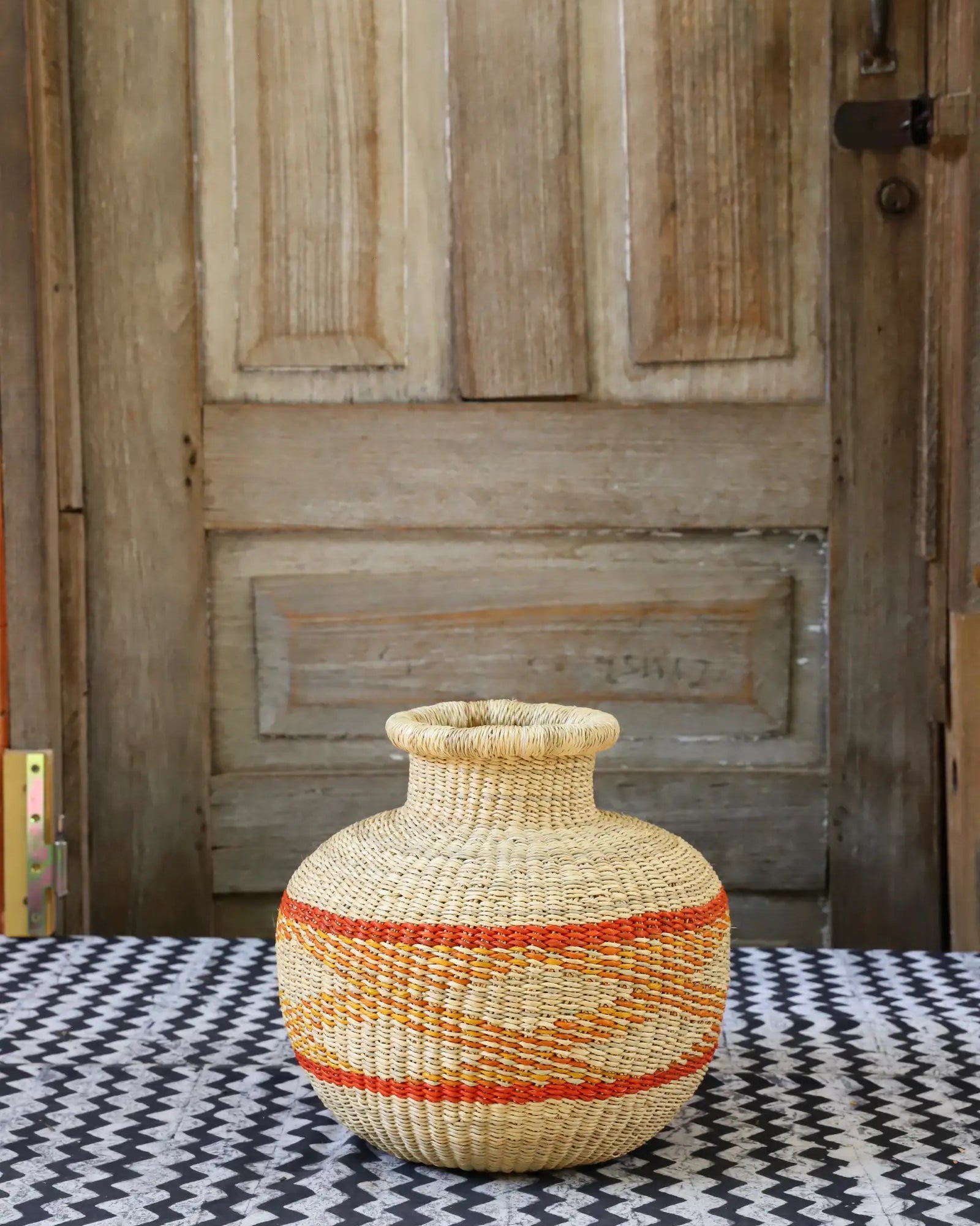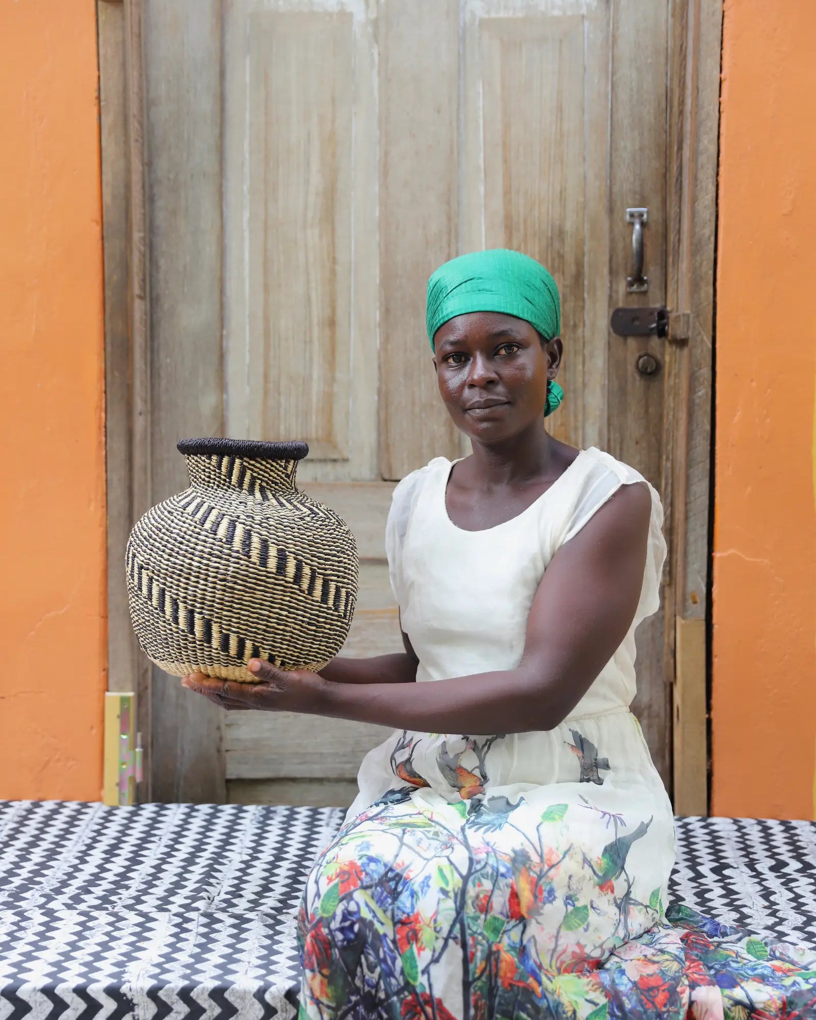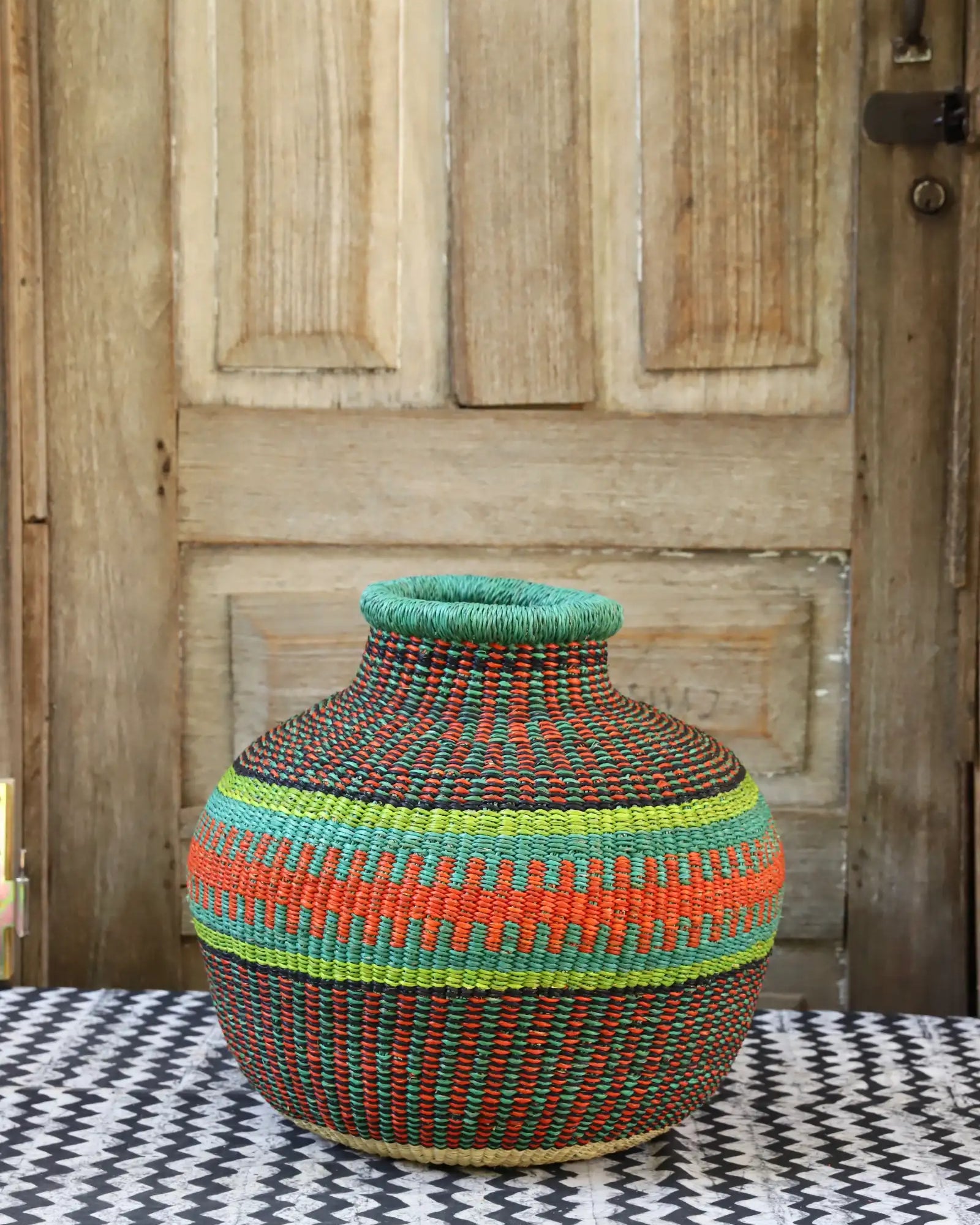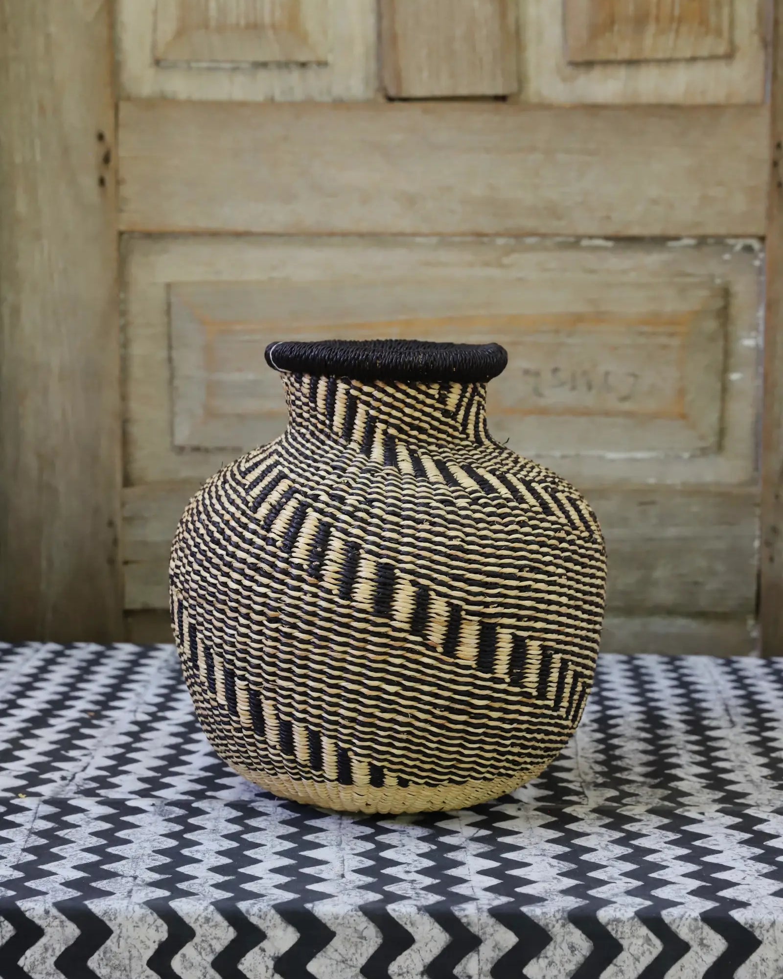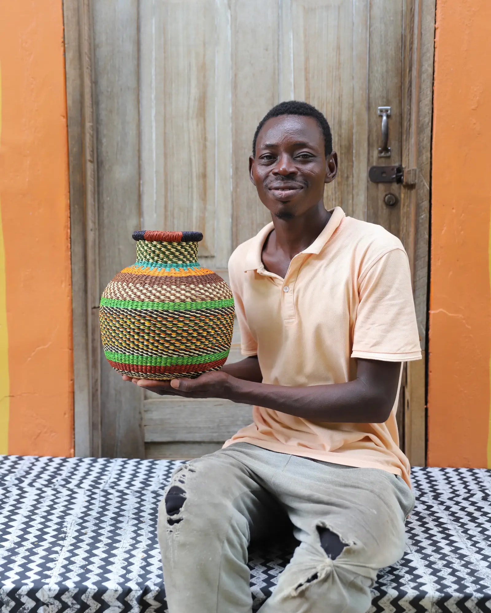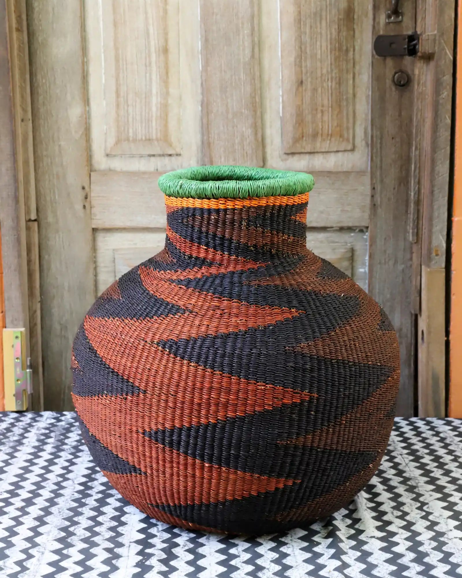 Jemima Akolgo was the first to weave this type of basket in Bolgatanga - so of course we named it after her and her master skills. Since then Jemima has taught and inspired many of our weavers with her innovative approach to traditional Gurunsi folklore. Honouring local basket traditions and creating exciting forms with the oldest craft in the world is what we do best! New ways with weave indeed.