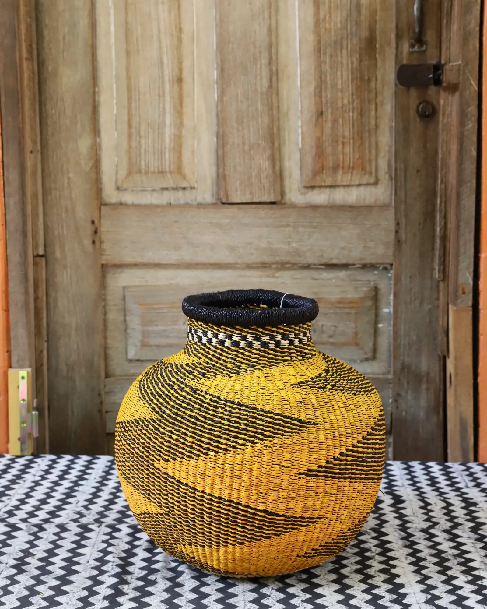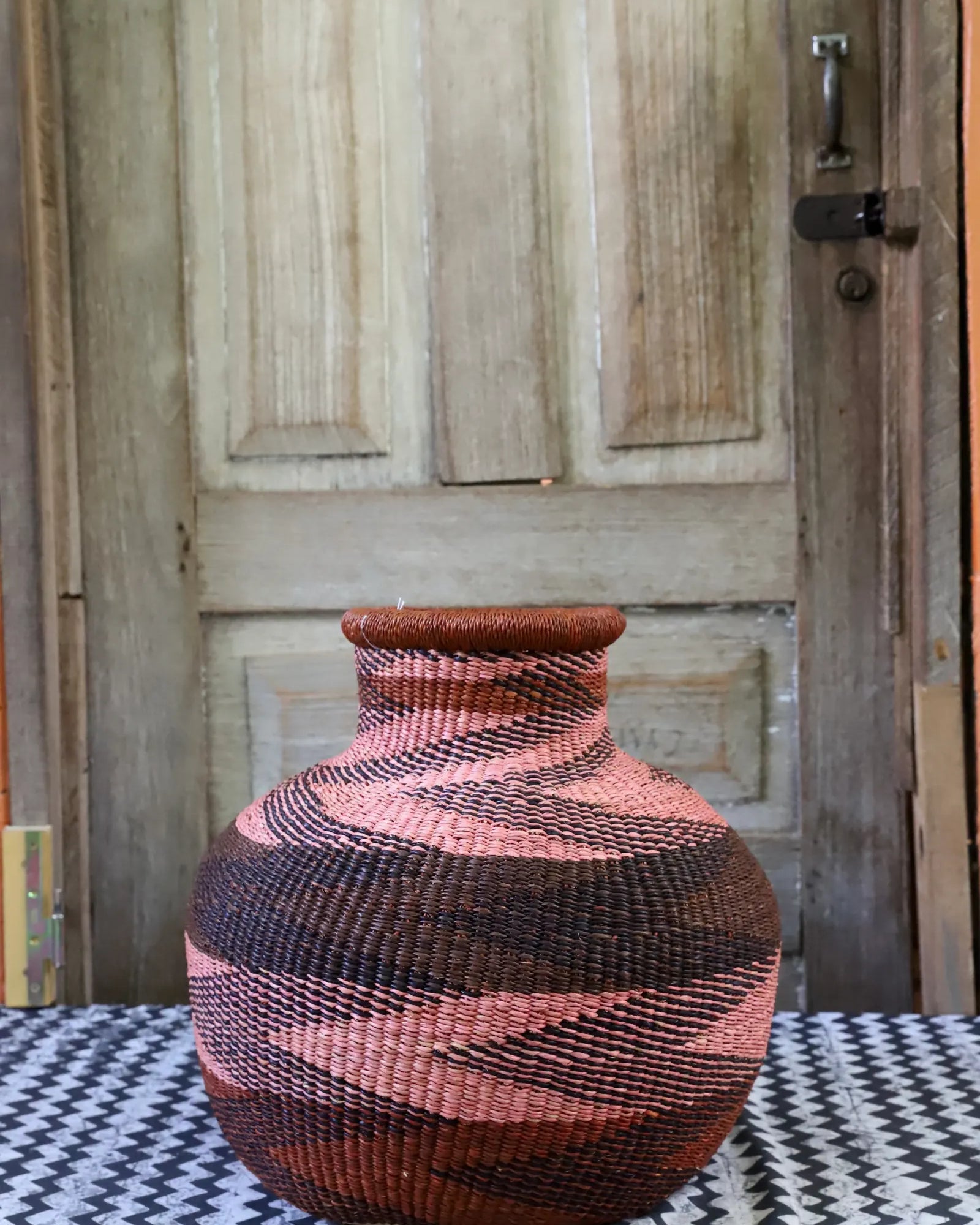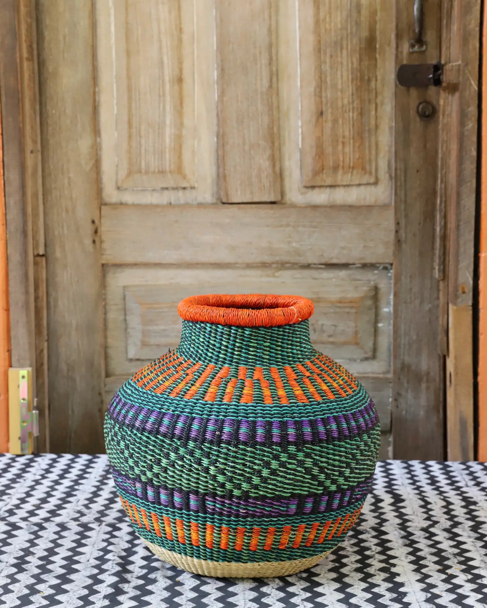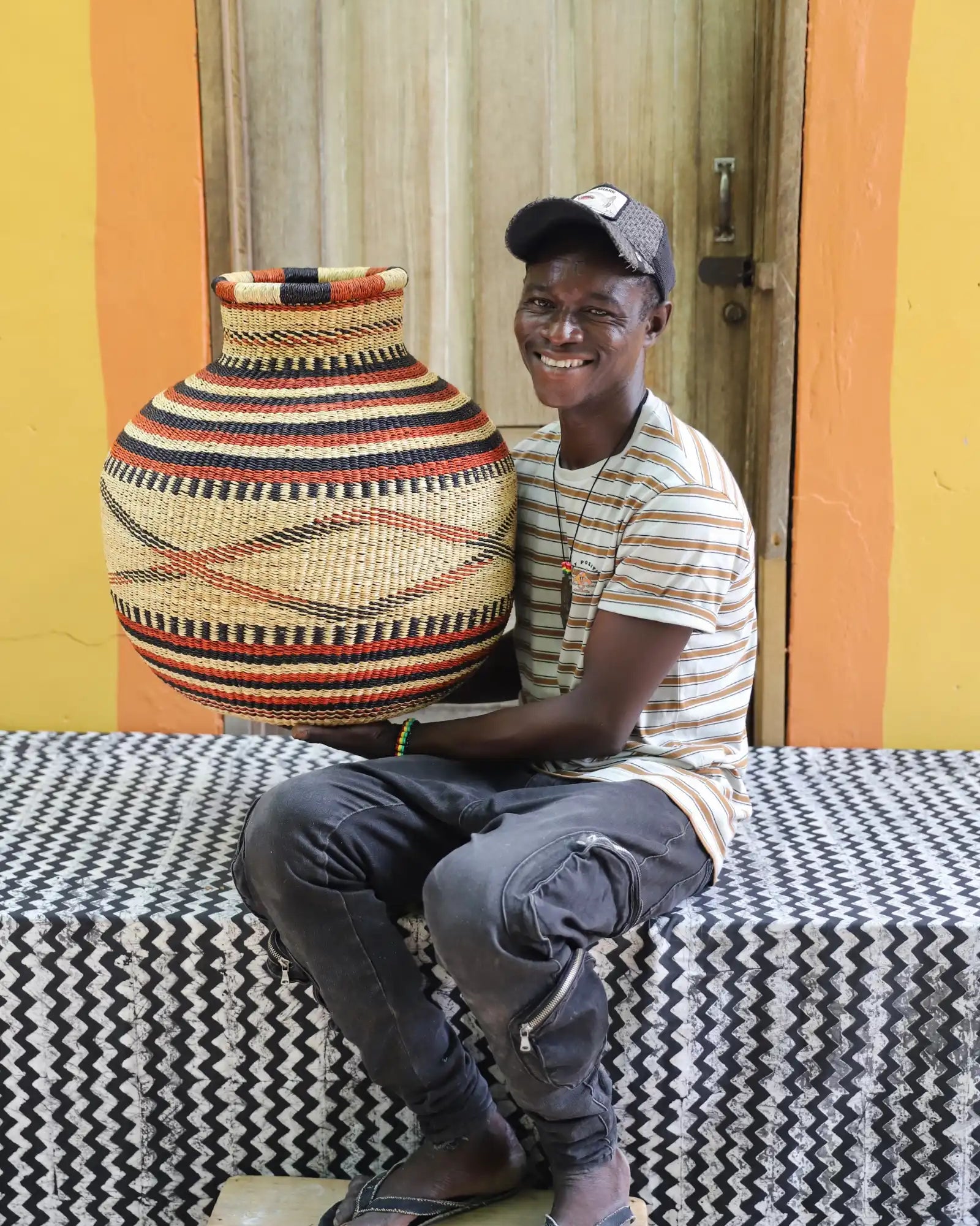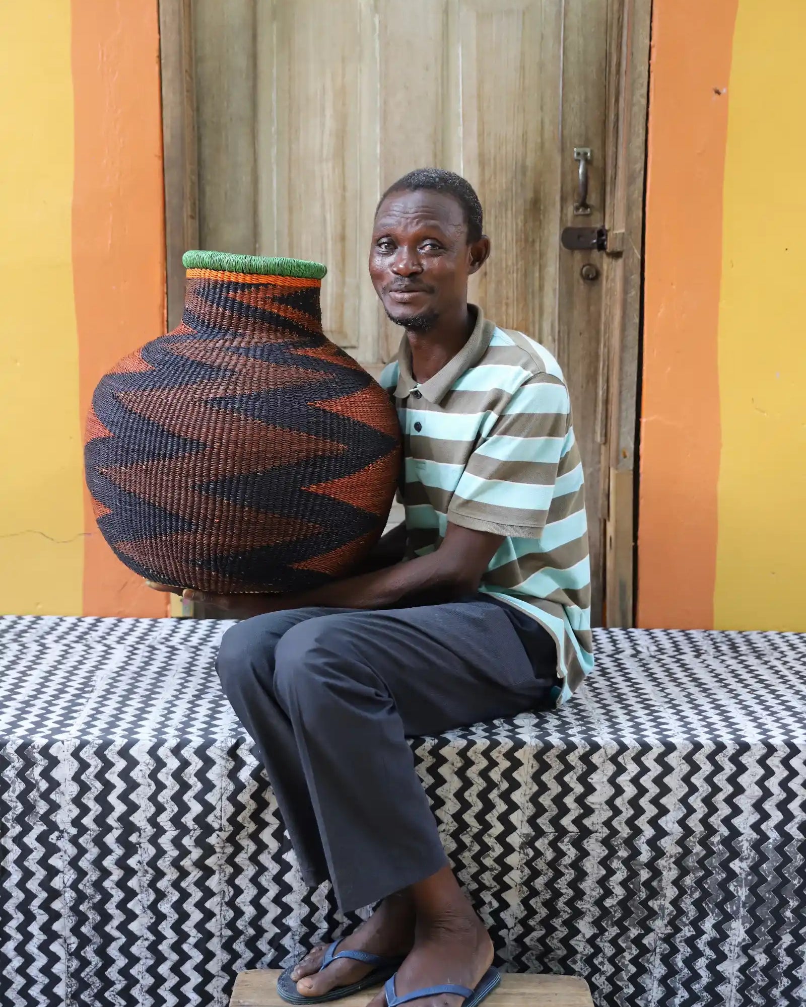 Jemima Akolgo was the first to weave this type of basket in Bolgatanga - so of course we named it after her and her master skills. Since then Jemima has taught and inspired many of our weavers with her innovative approach to traditional Gurunsi folklore. Honouring local basket traditions and creating exciting forms with the oldest craft in the world is what we do best! New ways with weave indeed.