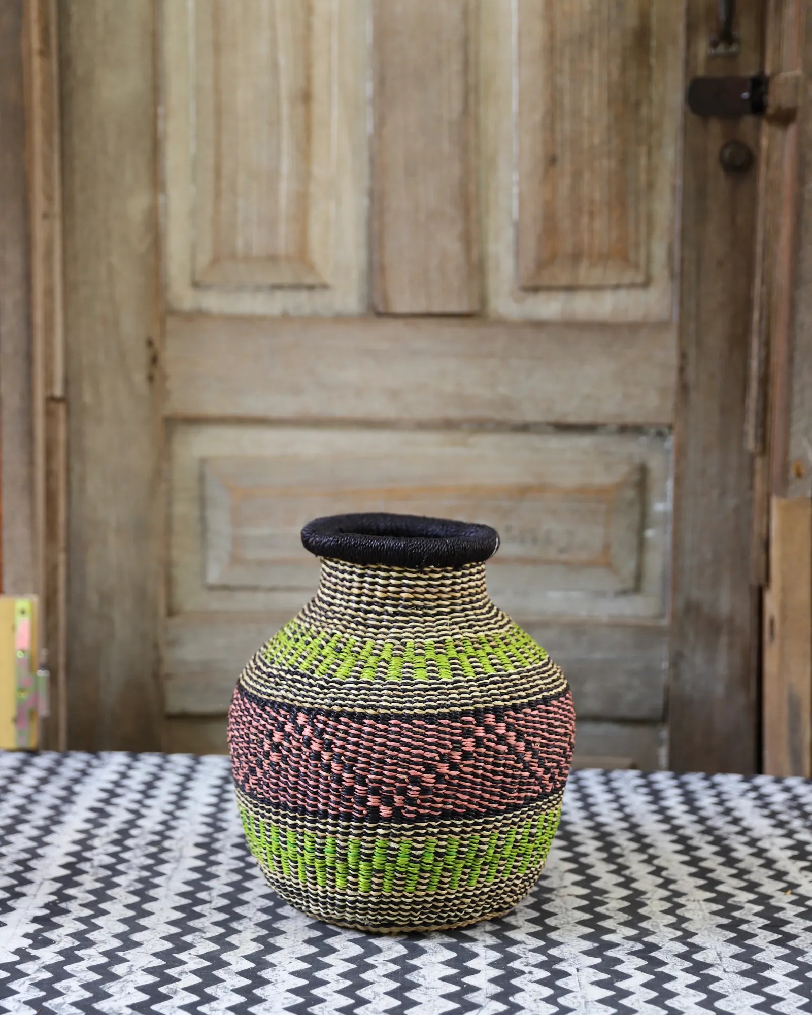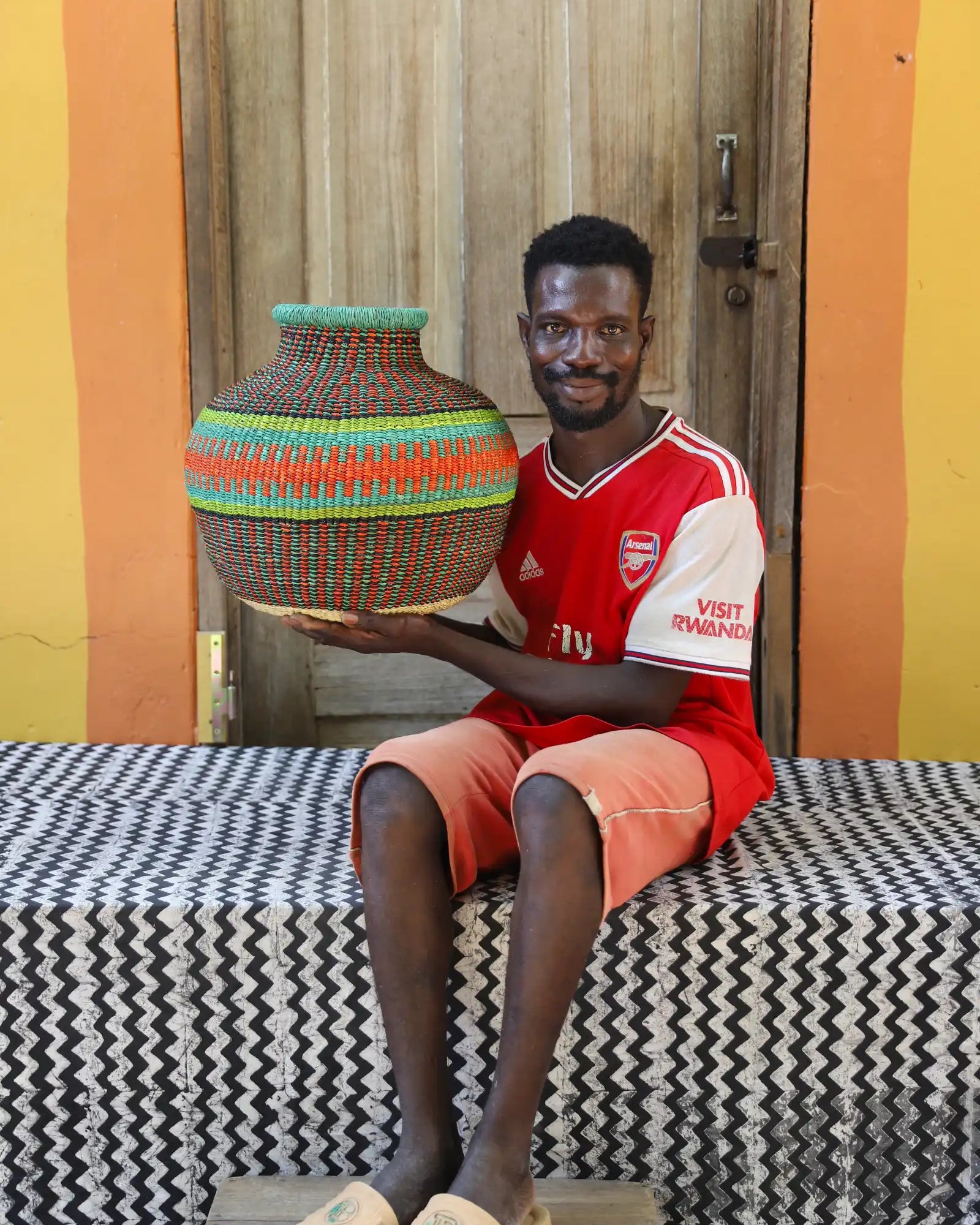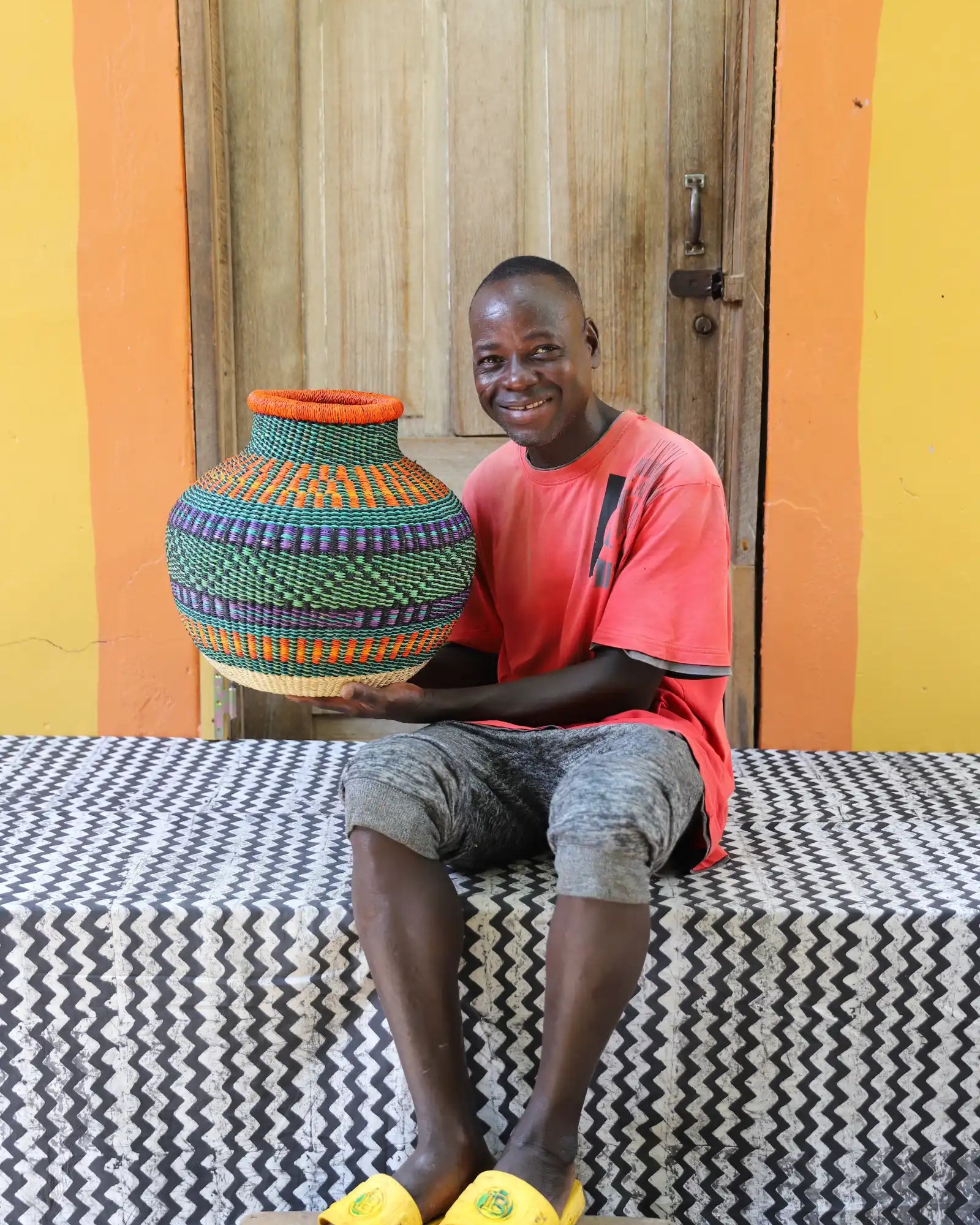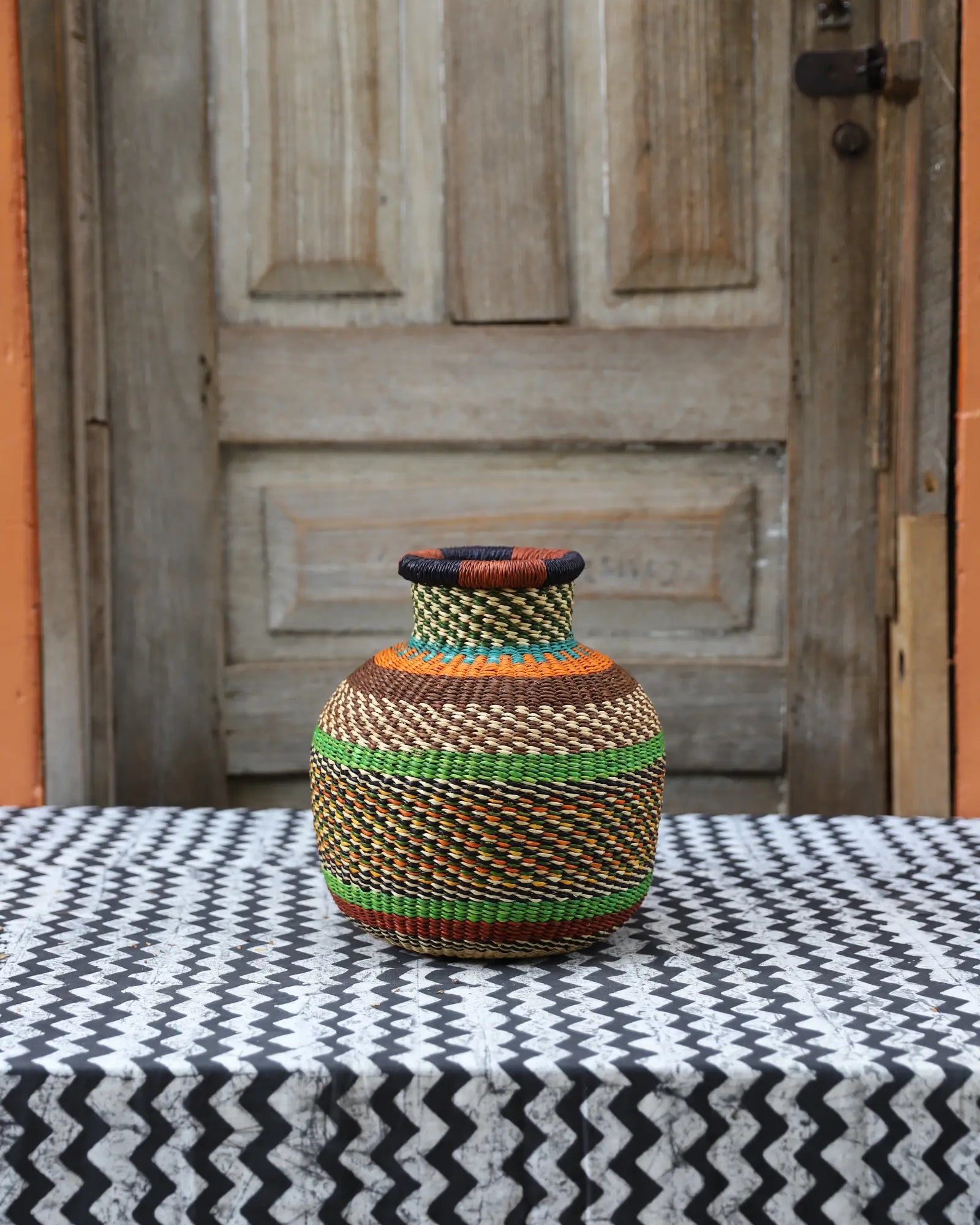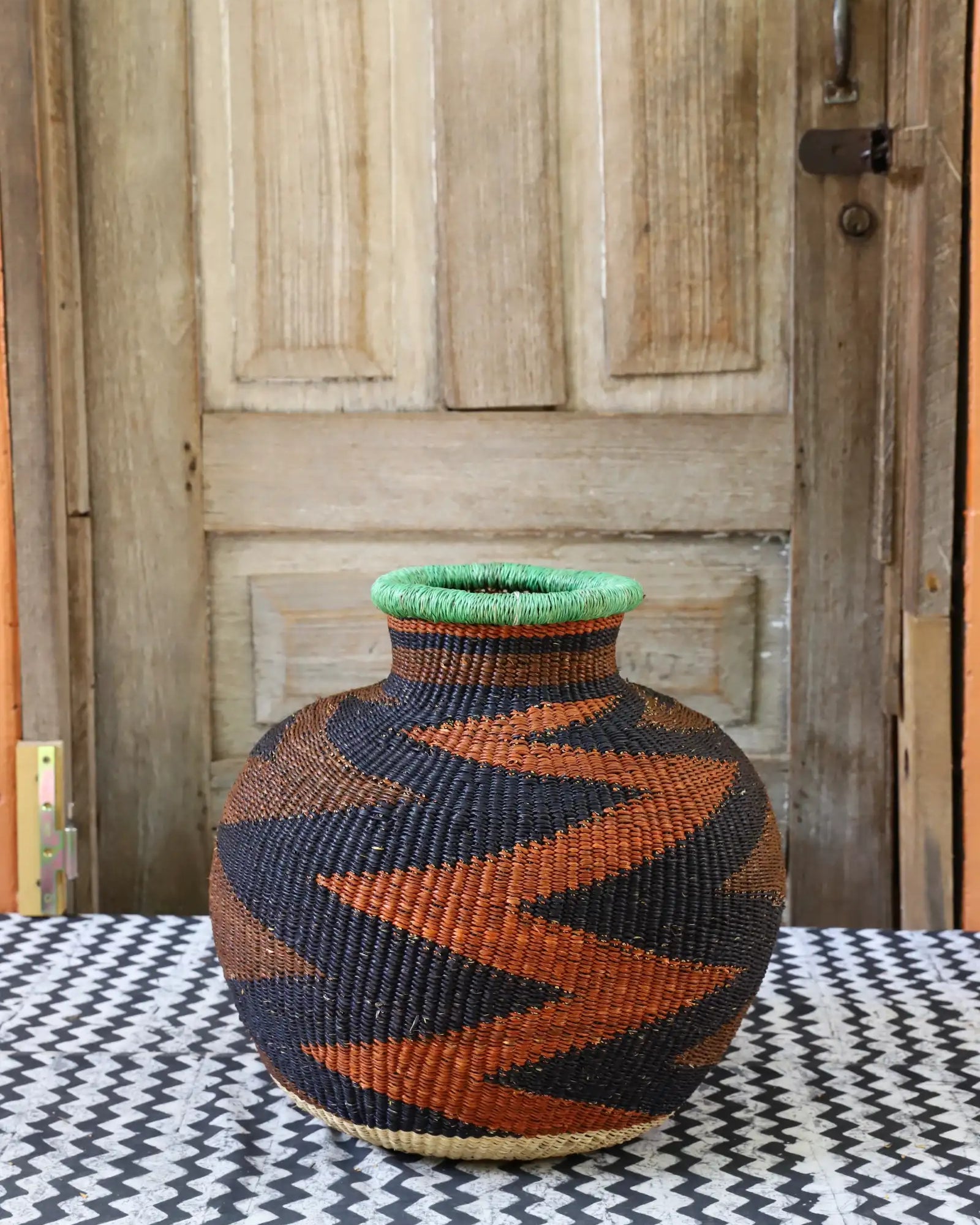 Jemima Akolgo was the first to weave this type of basket in Bolgatanga - so of course we named it after her and her master skills. Since then Jemima has taught and inspired many of our weavers with her innovative approach to traditional Gurunsi folklore. Honouring local basket traditions and creating exciting forms with the oldest craft in the world is what we do best! New ways with weave indeed.
