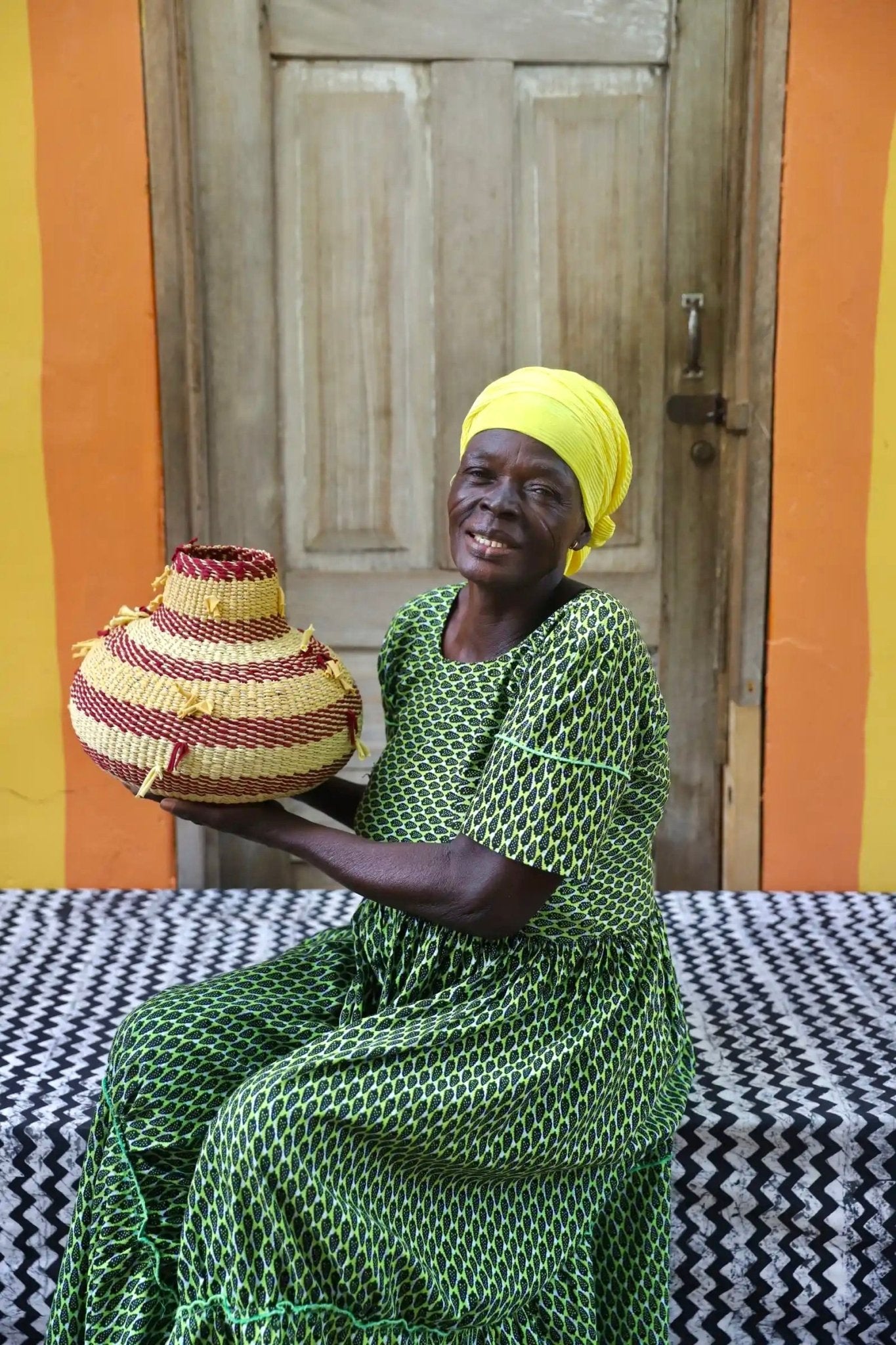 The Material Futures project blends our basketry tradition with upcycled textile waste from local markets. These reclaimed fabrics add fresh colors, textures, and bold details to create unique luxury baskets.