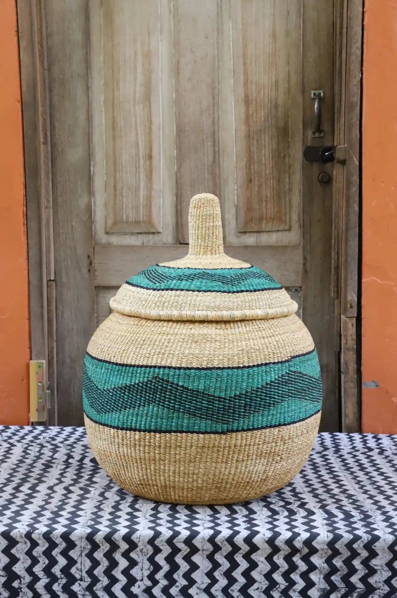 Also Known as Kuope-oh, Orbit was the trusted keeper of flour, salt, and other essentials for preparing TZ, a staple dish in Ghana. It's perfectly fitting lid made it ideal for gently storing ingredients. Orbit serves as a beautiful storage solution and decorative art piece, bringing tradition into the home while keeping spaces functional and graceful.