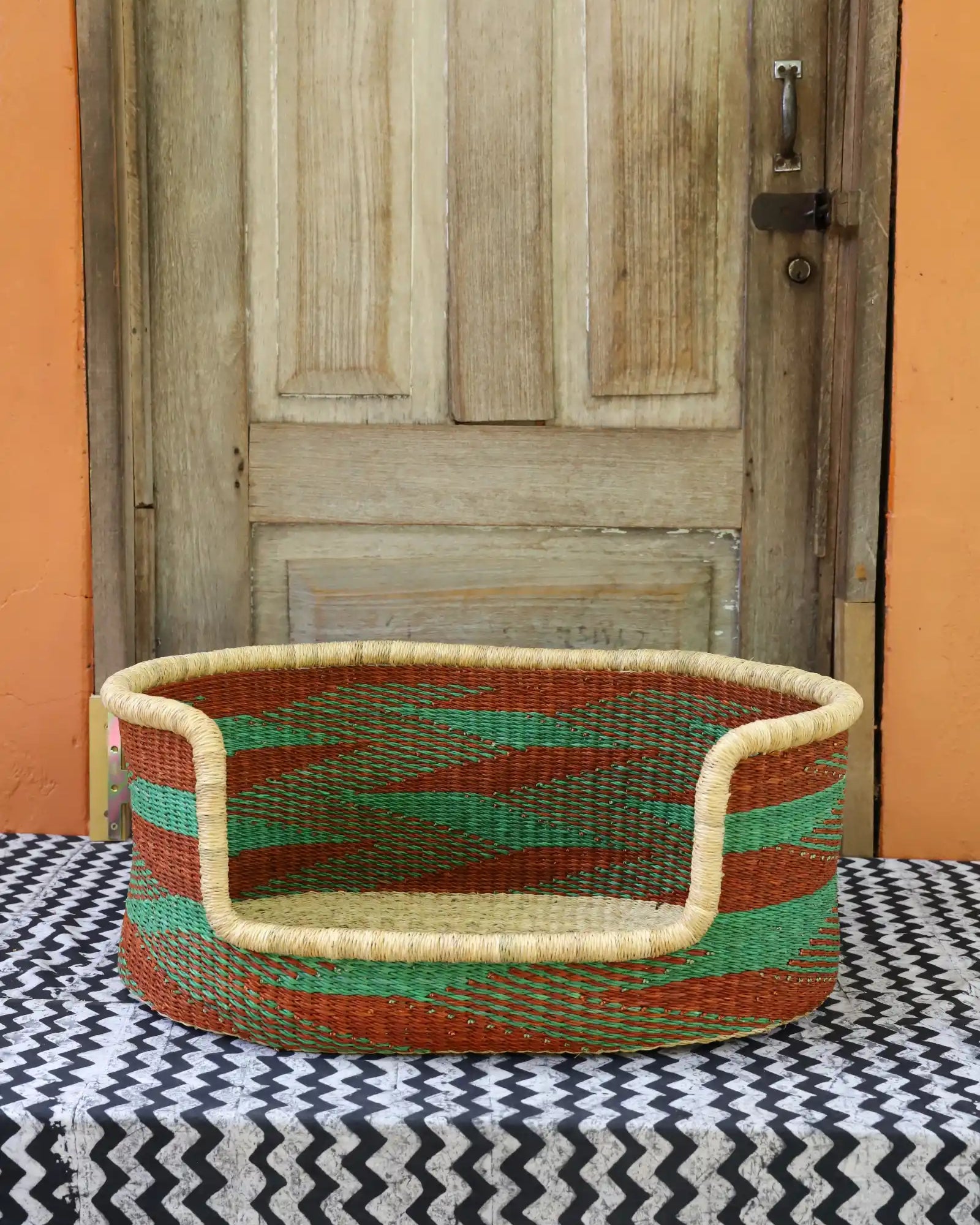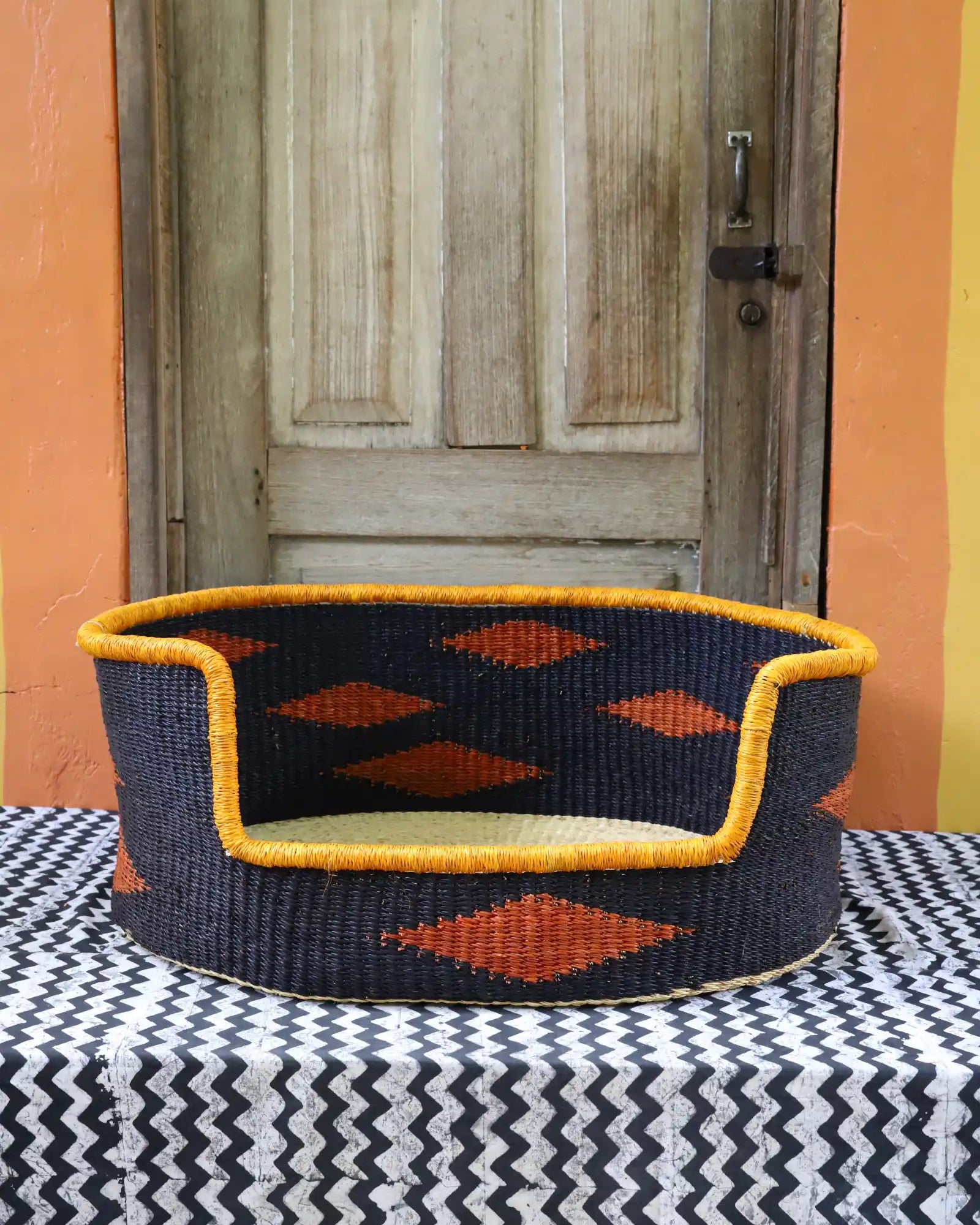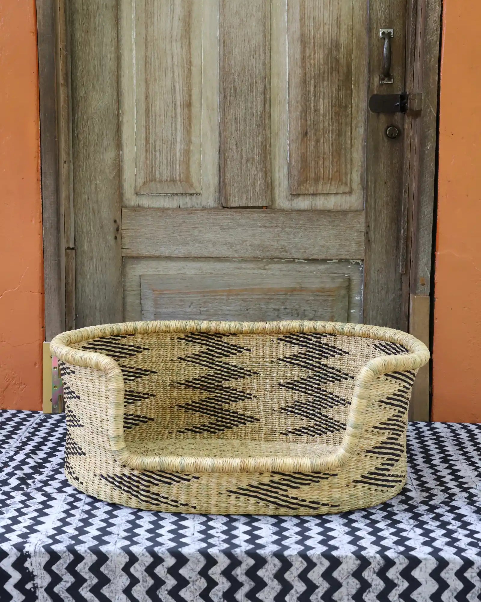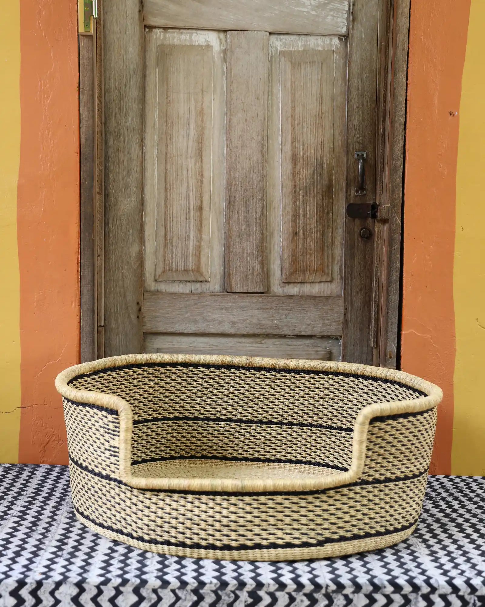Handcrafted from natural elephant gras, our handwoven dog beds come in three sizes—small, medium, and large—to suit your furry friend perfectly. Built for strength, balance, and comfort, these beds blend function with style, adding a chic, artisanal touch to any home. Basket art designed with your beloved pets in mind.