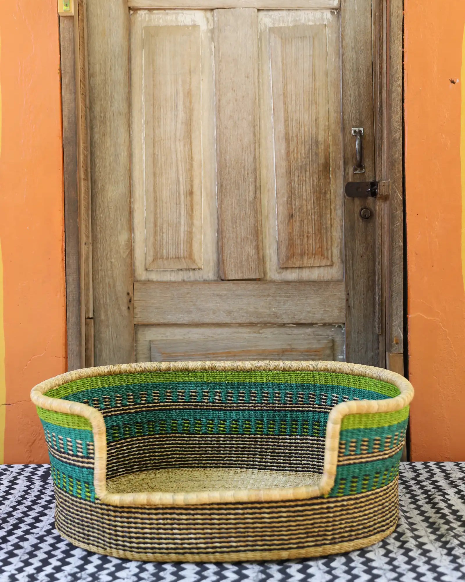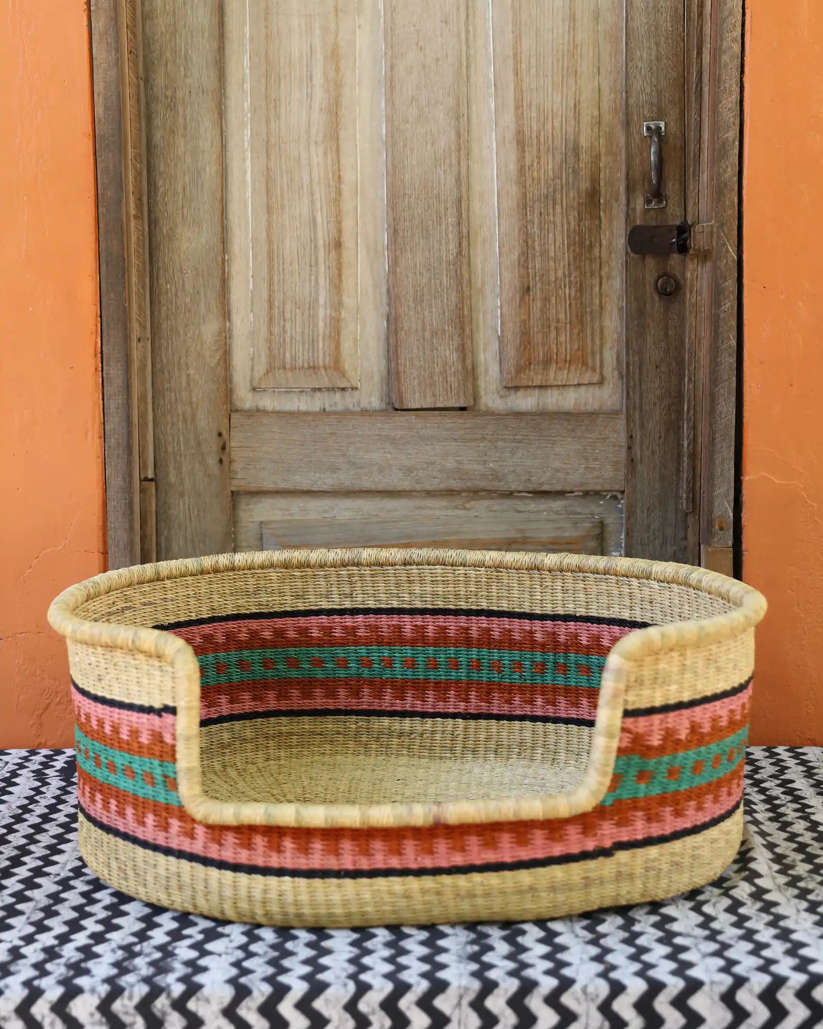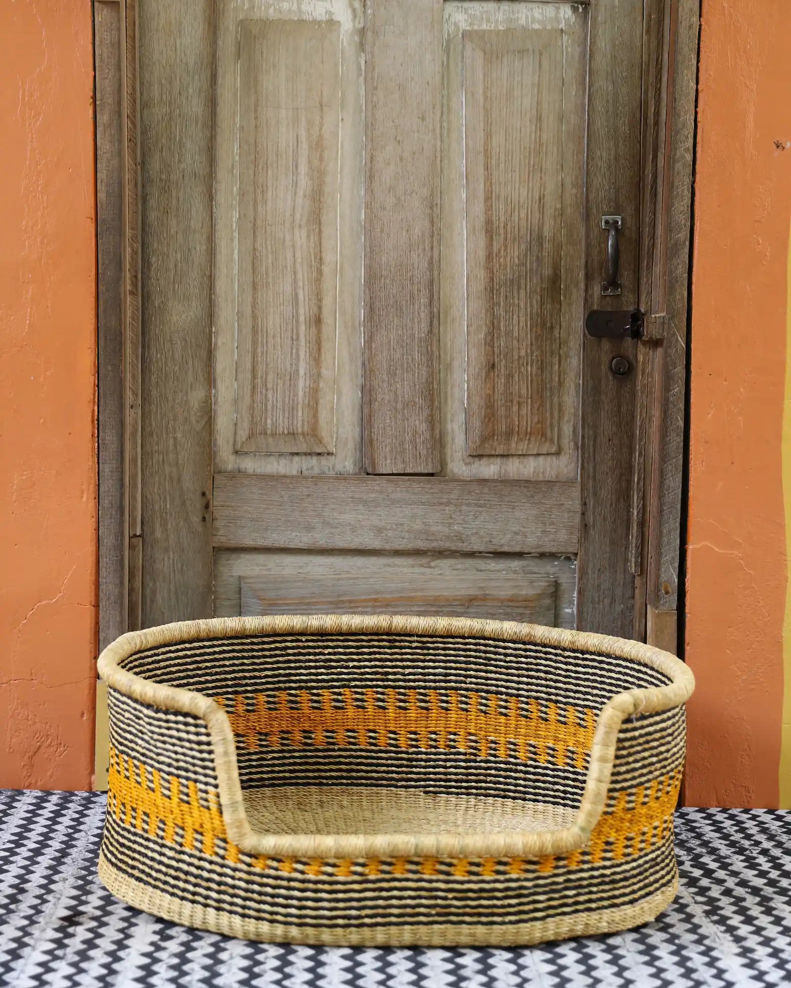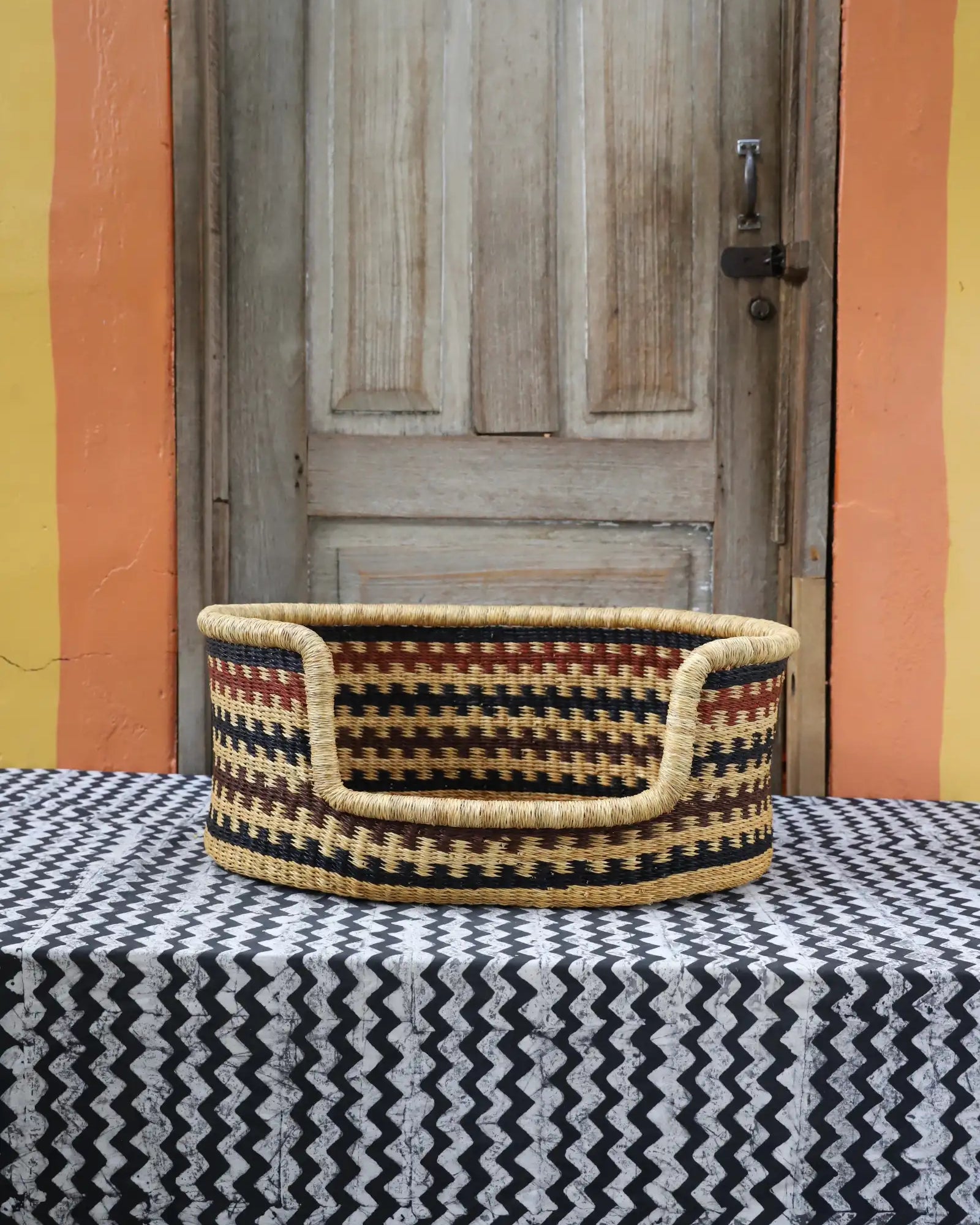 Handcrafted from natural elephant gras, our handwoven dog beds come in three sizes—small, medium, and large—to suit your furry friend perfectly. Built for strength, balance, and comfort, these beds blend function with style, adding a chic, artisanal touch to any home. Basket art designed with your beloved pets in mind.