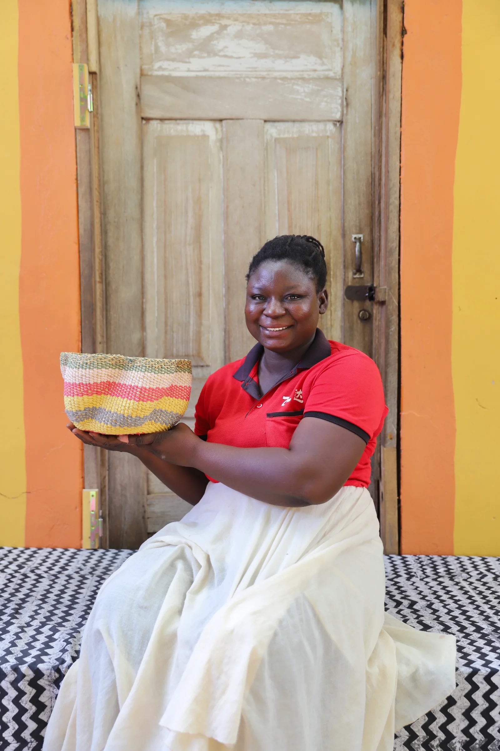 The Material Futures project blends our basketry tradition with upcycled textile waste from local markets. These reclaimed fabrics add fresh colors, textures, and bold details to create unique luxury baskets.