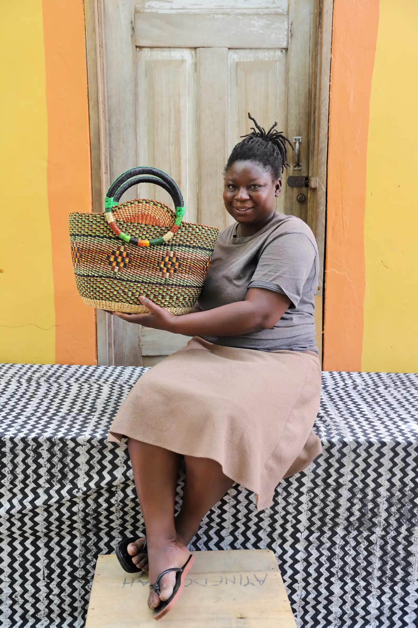 A basket bag with character, named after the legendary weaver who brought mischief and mastery to every piece. This double-weave beauty is strong, spacious, and ready for market strolls, beach days, or everyday toting. A little mischief, a lot of craft.