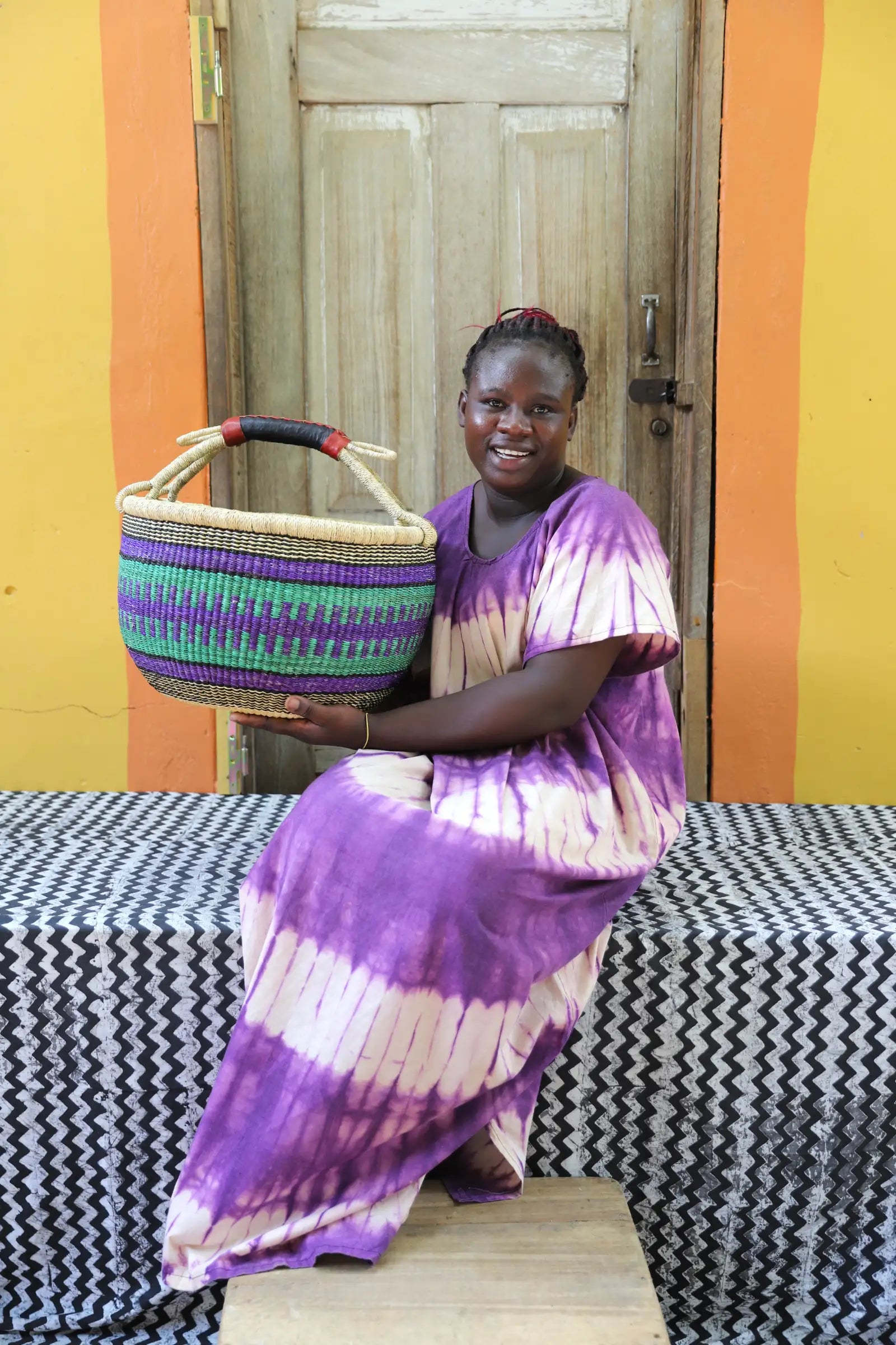 A Bolgatanga classic—this is the basket that started it all, and no one does it better than The Baba Tree. Perfect as your go-to carry all for market trips, beach days, or as a catch-all storage solution at home or in the car. Durable, timeless, and endlessly useful.