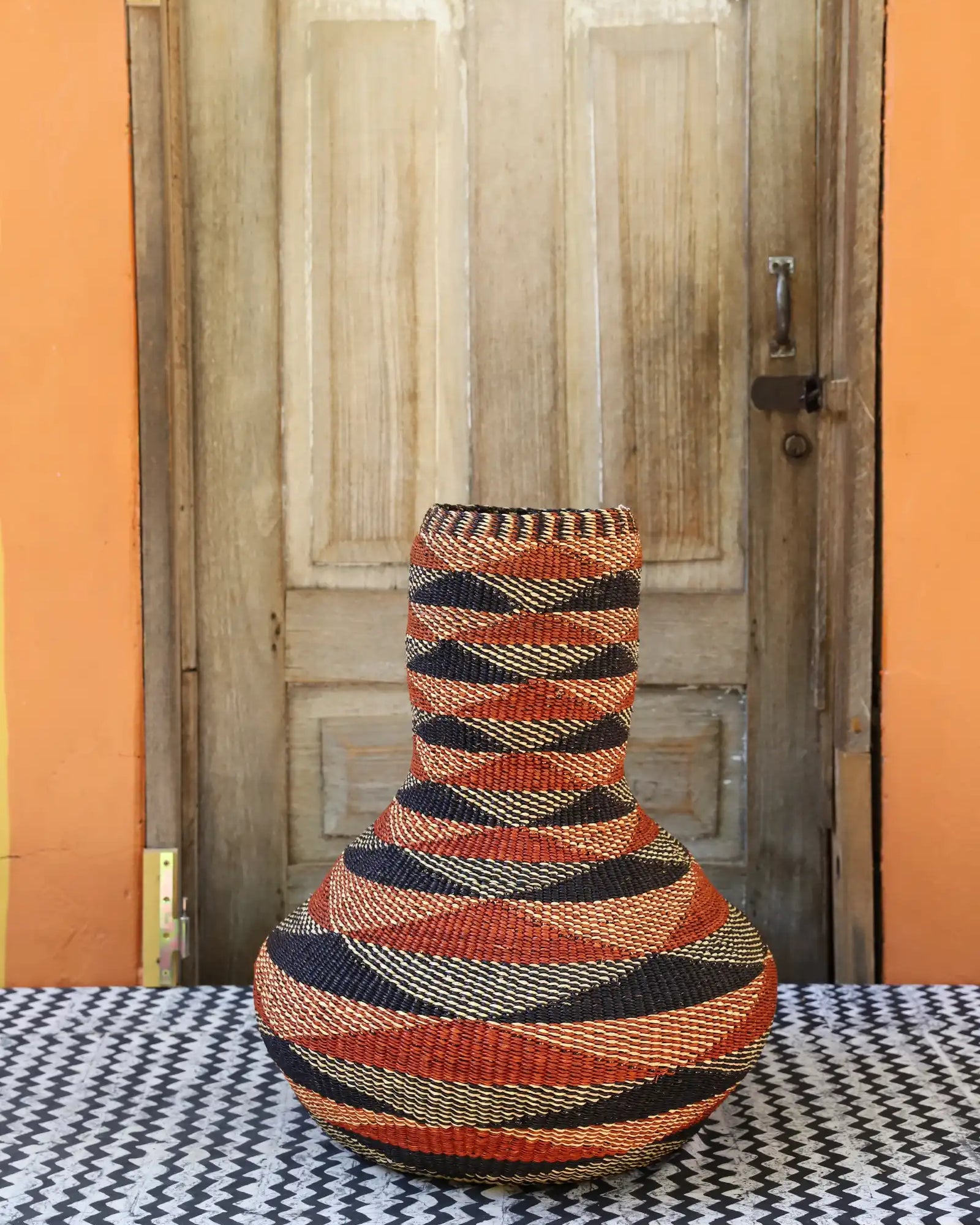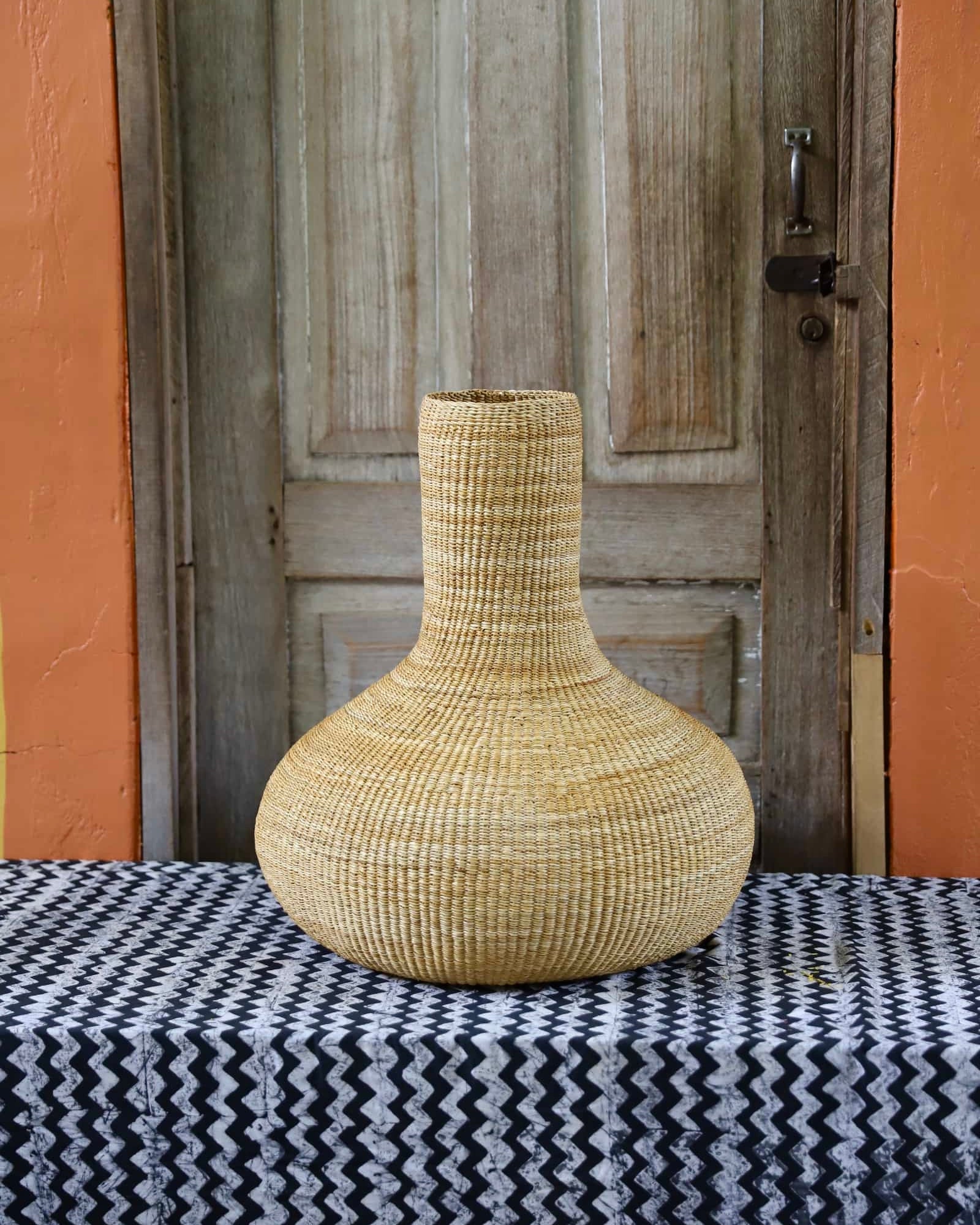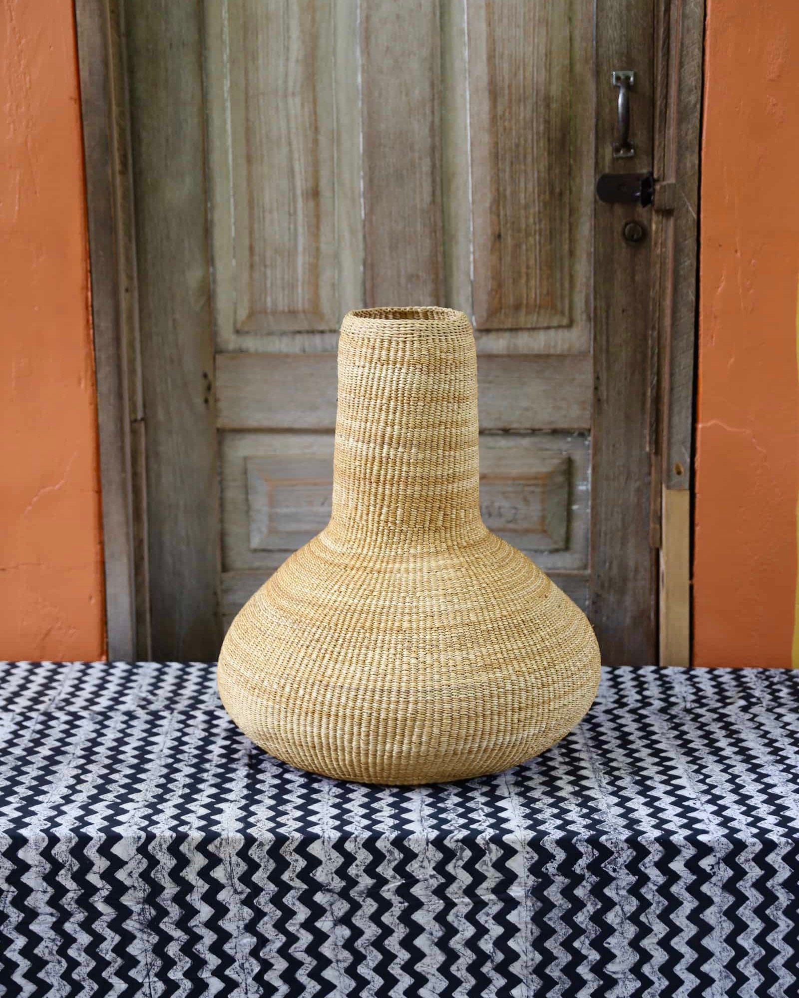 Sinyaka is inspired by the traditional gourd instrument used predominantly by soothsayers for their incantations and rituals. This art basket channels the spirit of that ancient practice through its shape and design, evoking a sense of mystery and tradition.