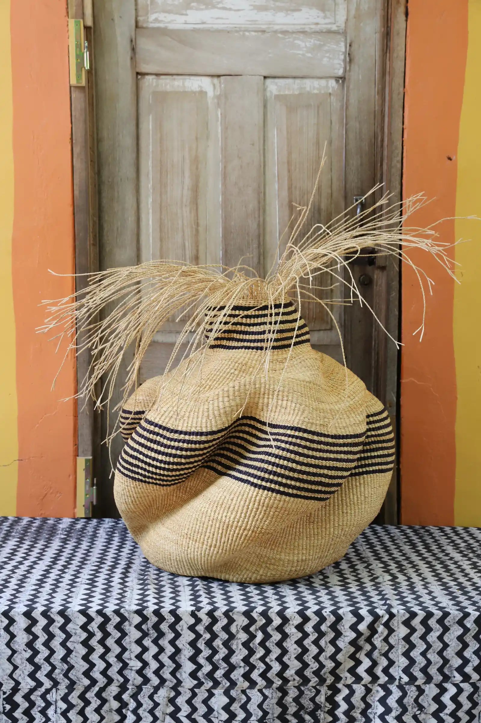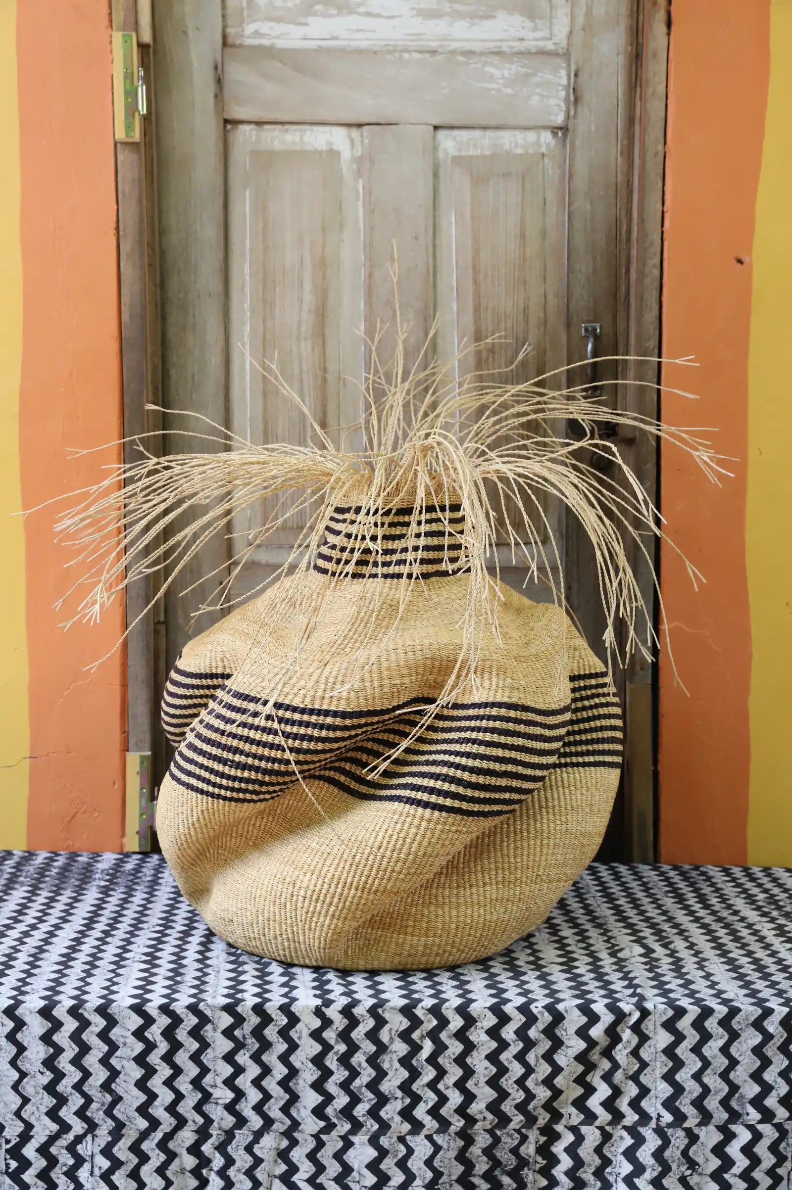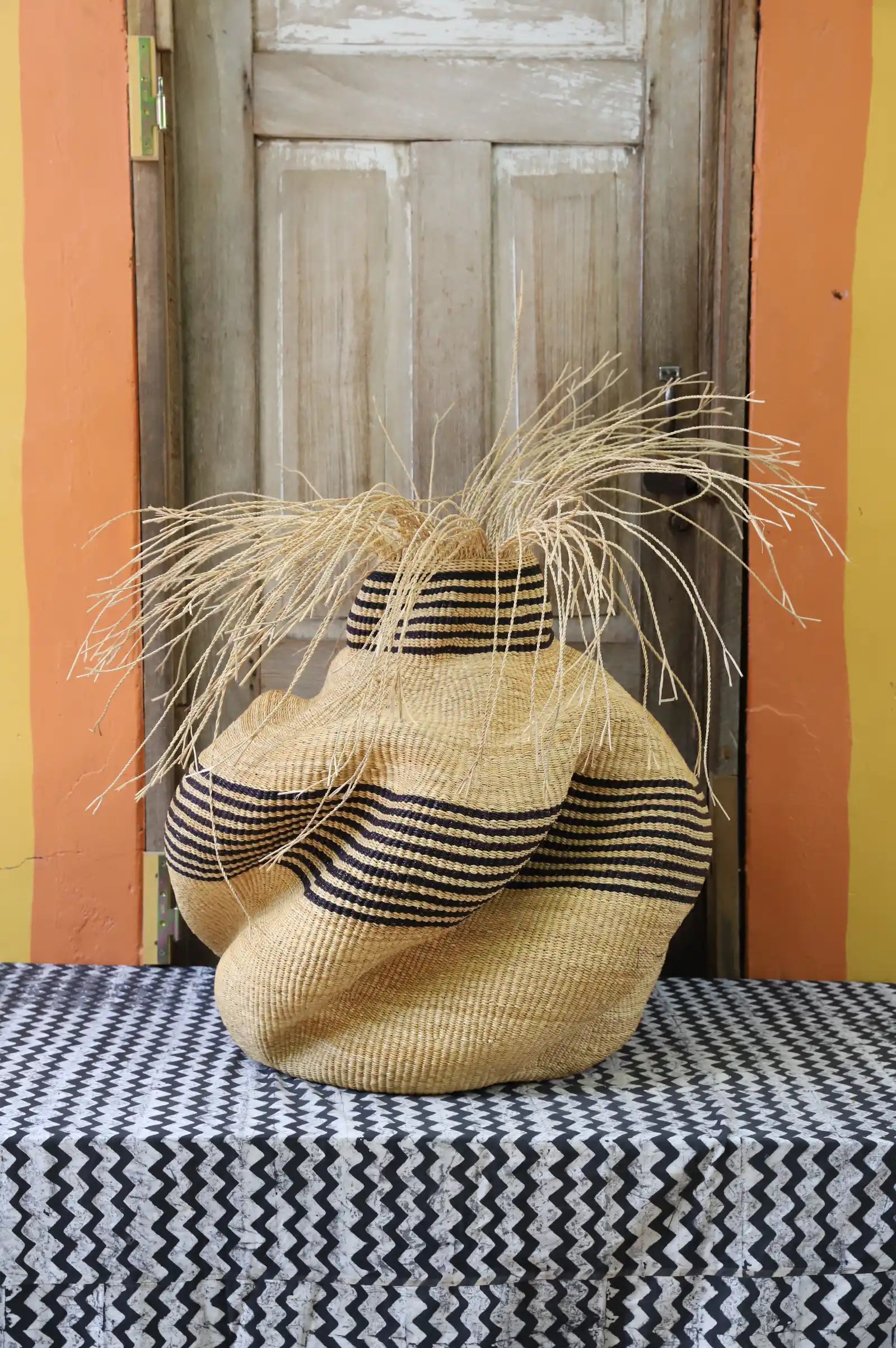 Named for its hanging straw and sculptural form, the Baobab Basket echoes Africa’s iconic ‘mother tree’—revered for its generous shade and nourishing fruit. The Baobab tree also inspired the name of our company, chosen for its warm nature and deep roots in the community. This piece features our signature spiraling technique, a reflection of our bond with land, culture, and craft.