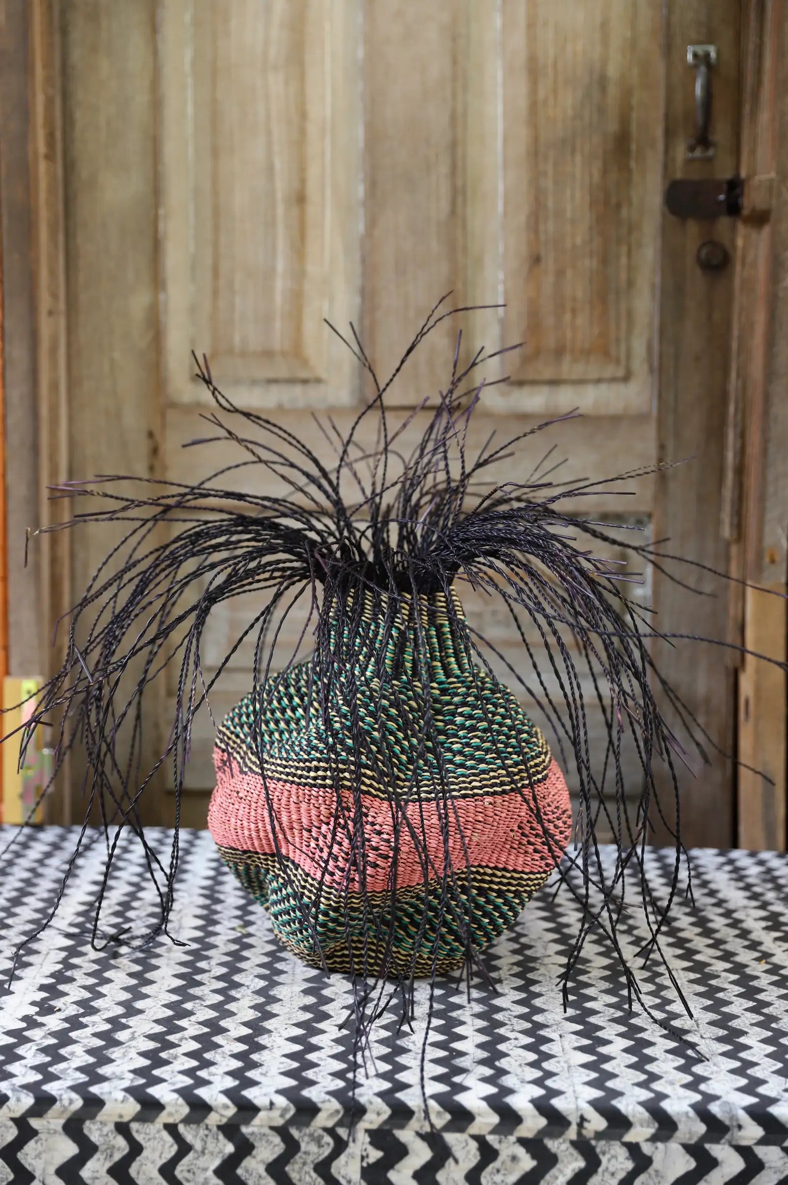 Named for its hanging straw and sculptural form, the Baobab Basket echoes Africa’s iconic ‘mother tree’—revered for its generous shade and nourishing fruit. The Baobab tree also inspired the name of our company, chosen for its warm nature and deep roots in the community. This piece features our signature spiraling technique, a reflection of our bond with land, culture, and craft.