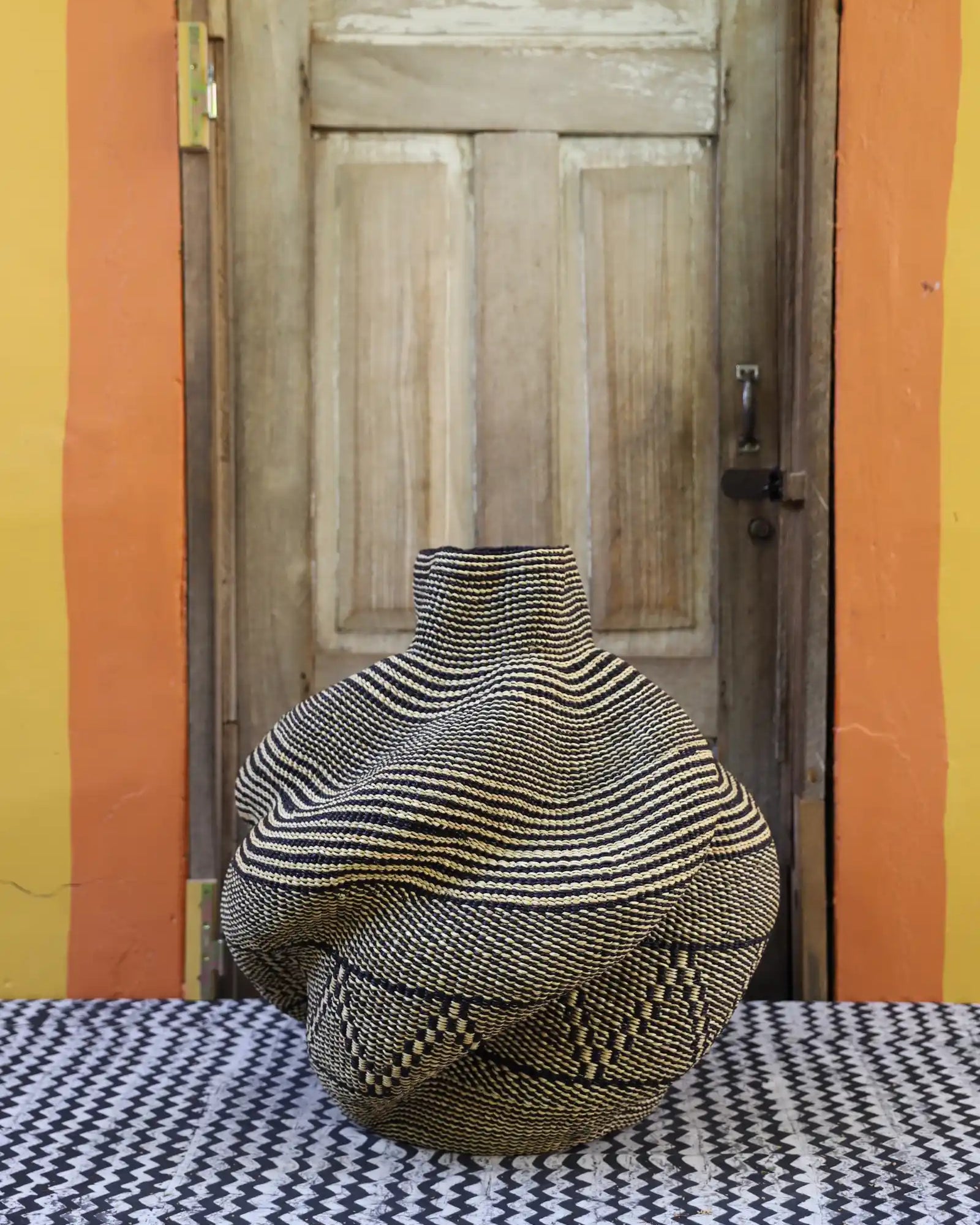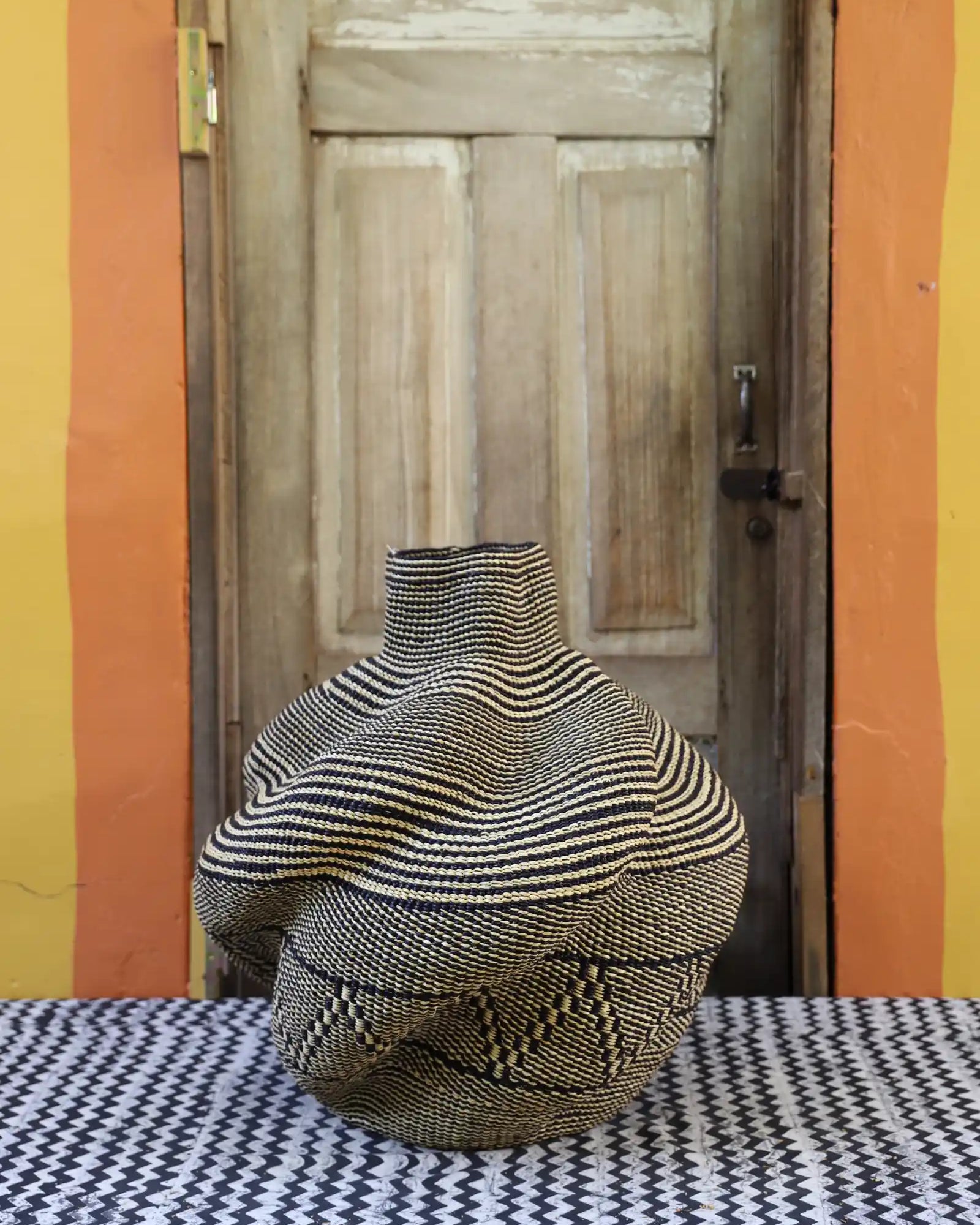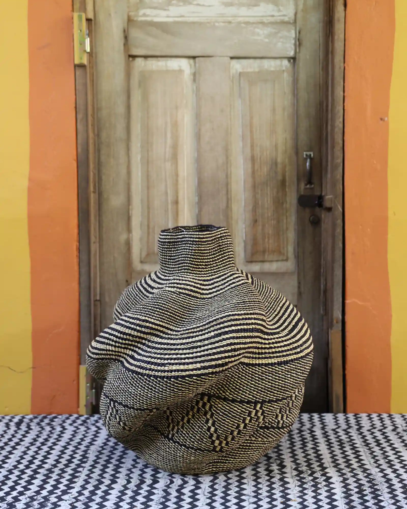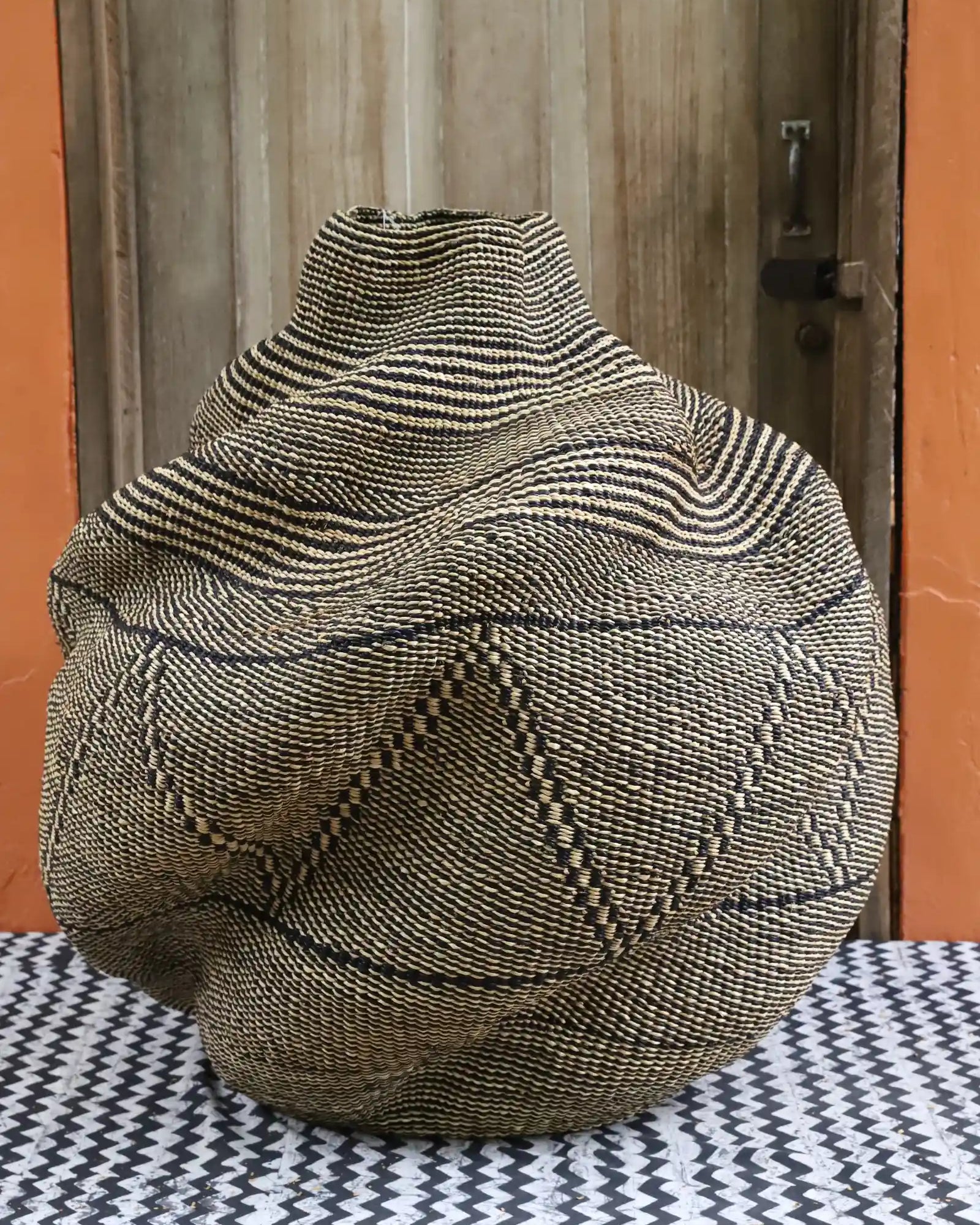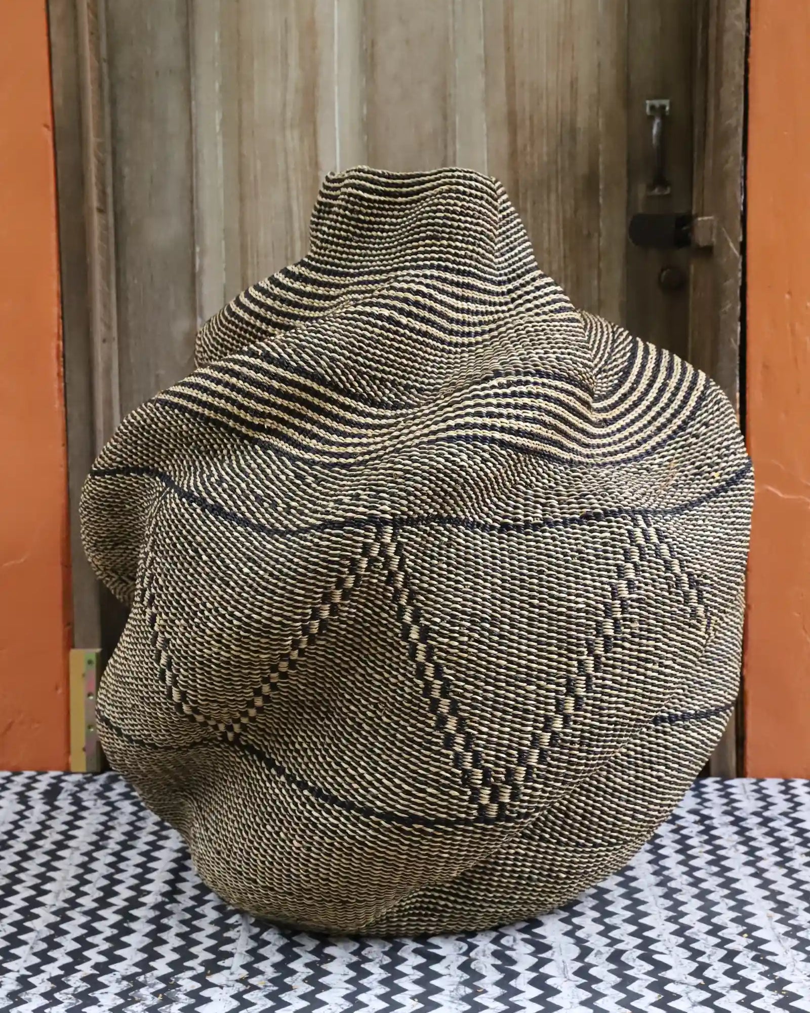 Yoomelingah-yure (Bent Pot) is an art basket that speaks in curves and quiet presence. Handwoven with care, its graceful form captures the stillness of dusk and the beauty of craftsmanship. A sculptural piece for those who see baskets as more than function—this is basketry as poetry.