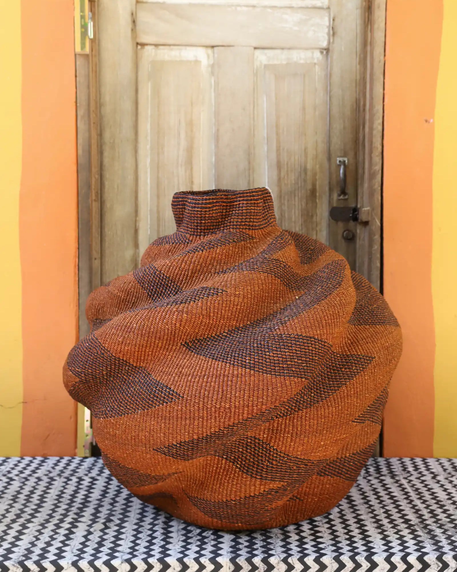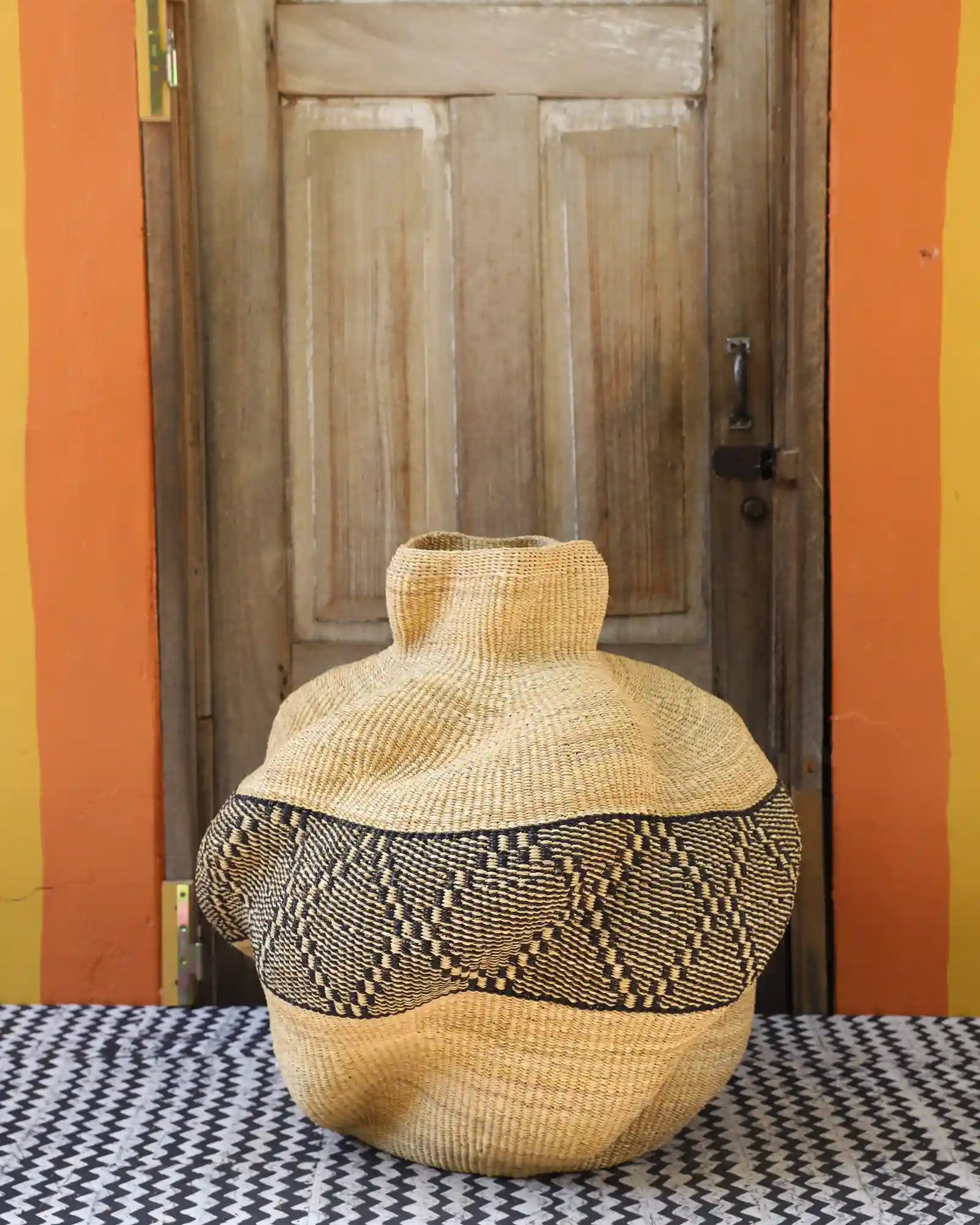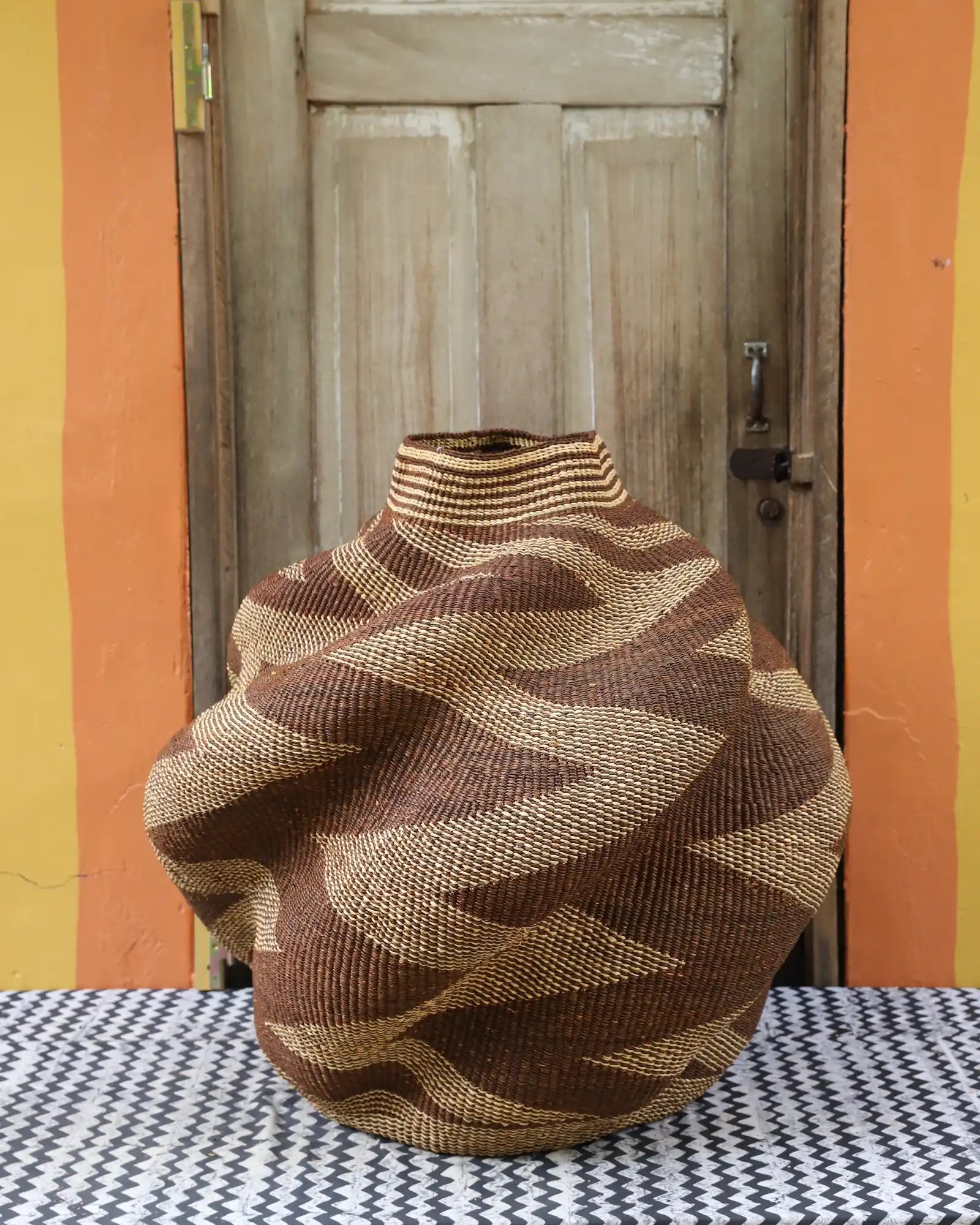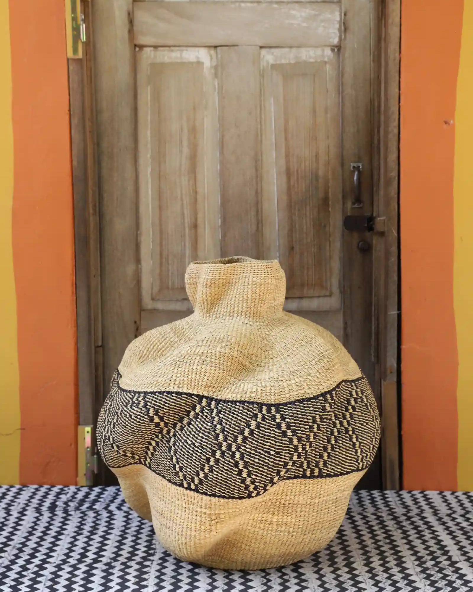 Yoomelingah-yure (Bent Pot) is an art basket that speaks in curves and quiet presence. Handwoven with care, its graceful form captures the stillness of dusk and the beauty of craftsmanship. A sculptural piece for those who see baskets as more than function—this is basketry as poetry.