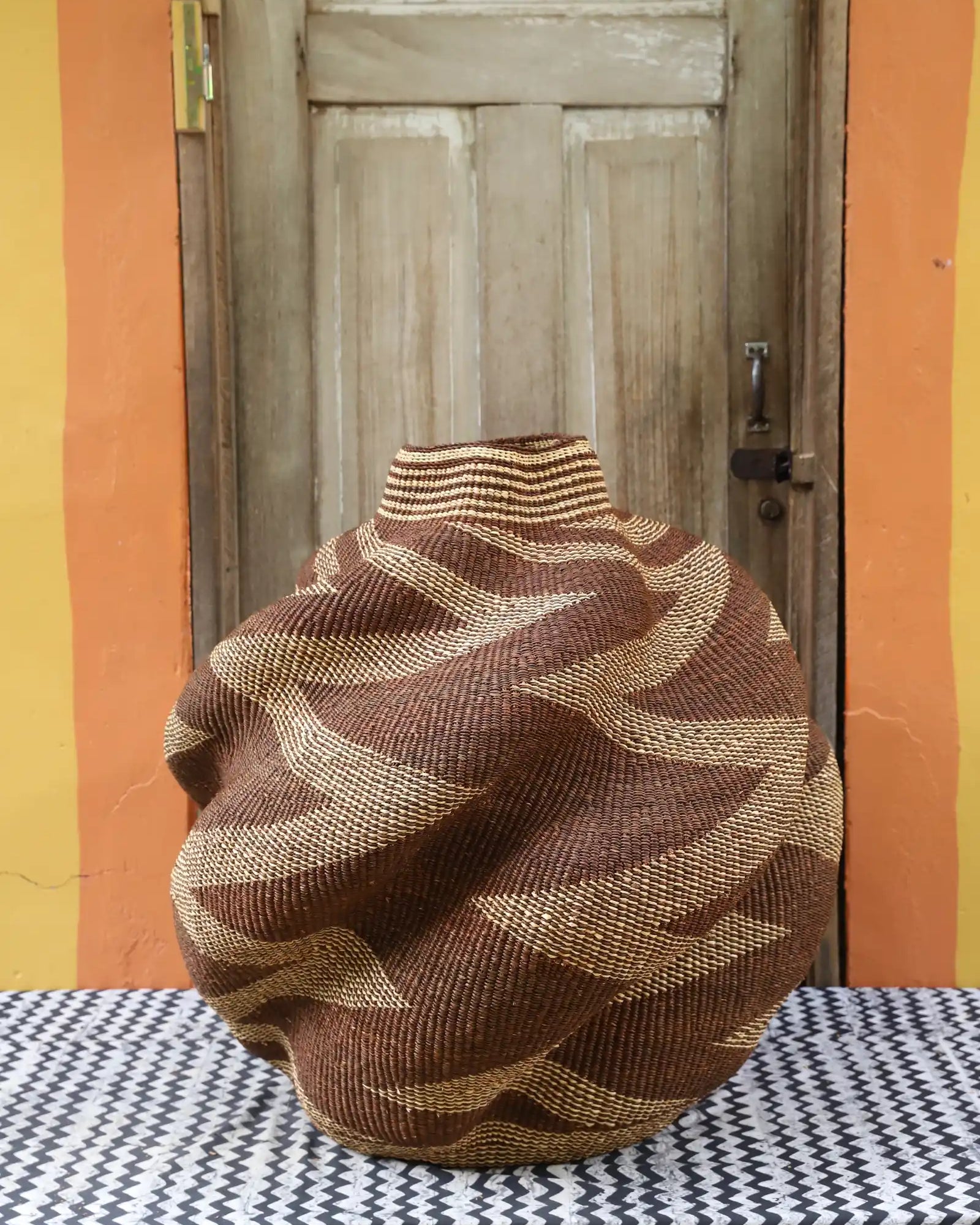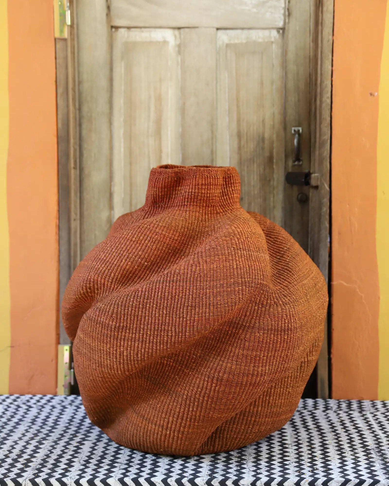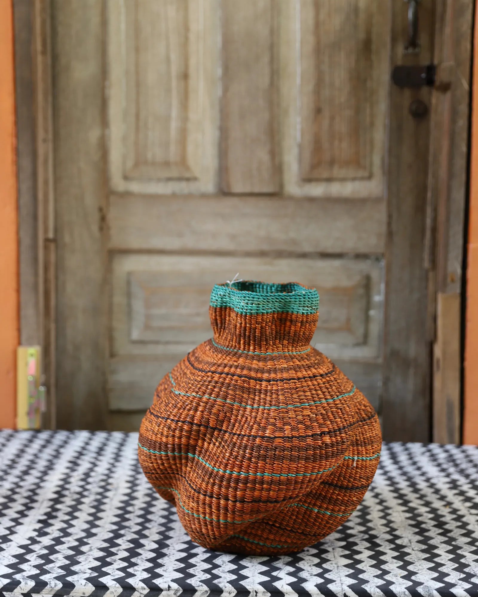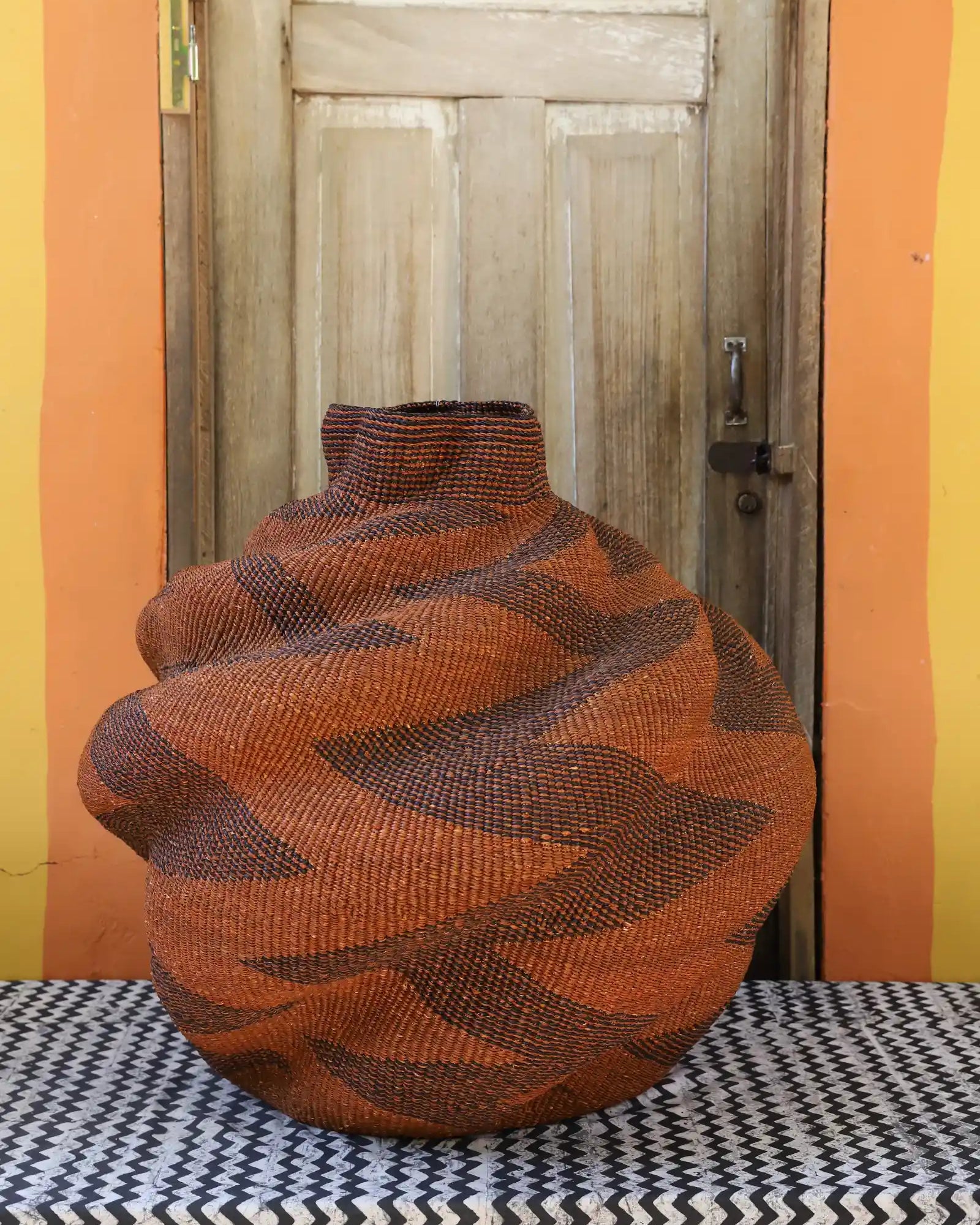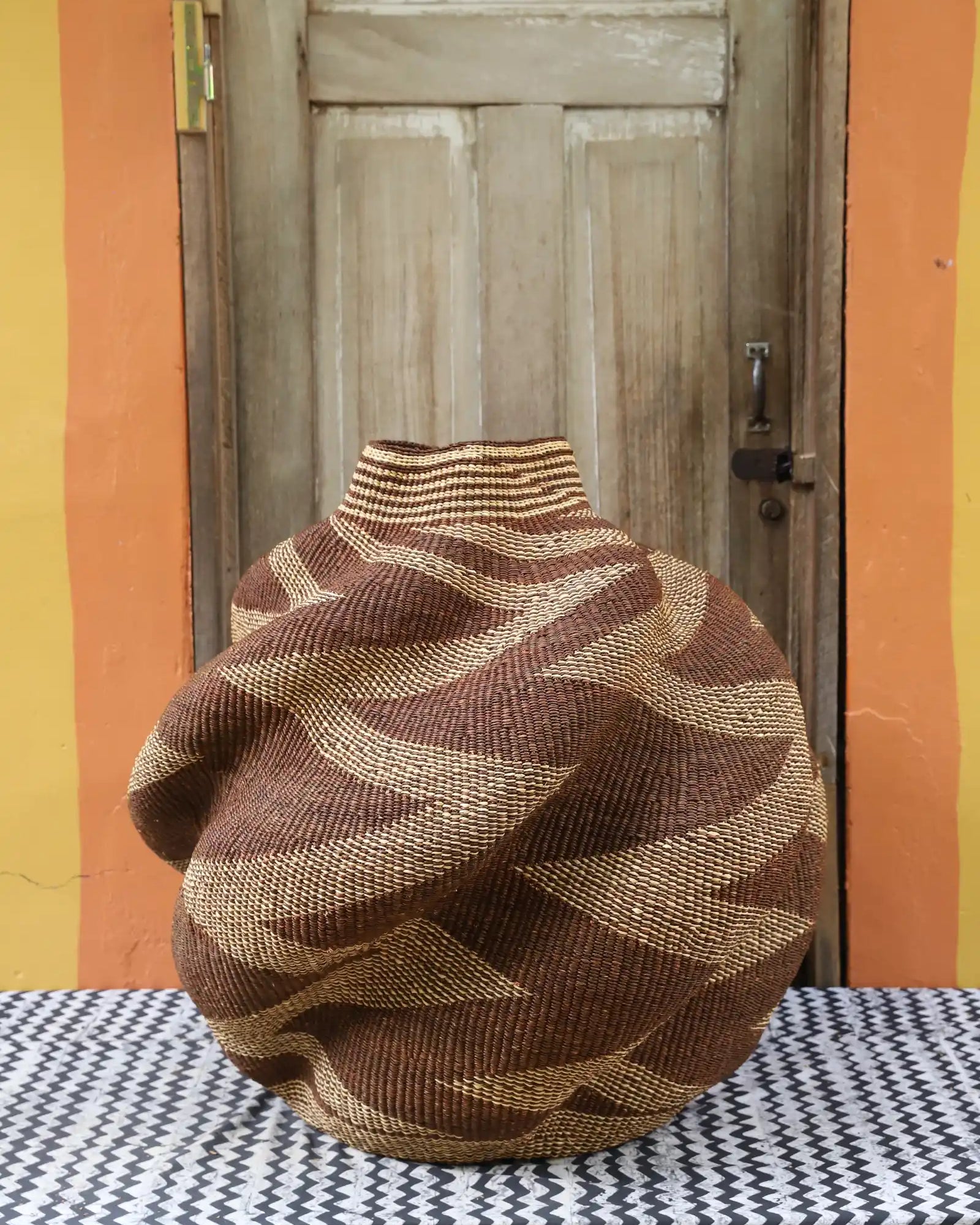Yoomelingah-yure (Bent Pot) is an art basket that speaks in curves and quiet presence. Handwoven with care, its graceful form captures the stillness of dusk and the beauty of craftsmanship. A sculptural piece for those who see baskets as more than function—this is basketry as poetry.