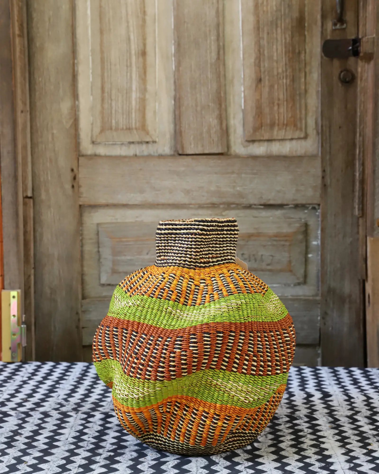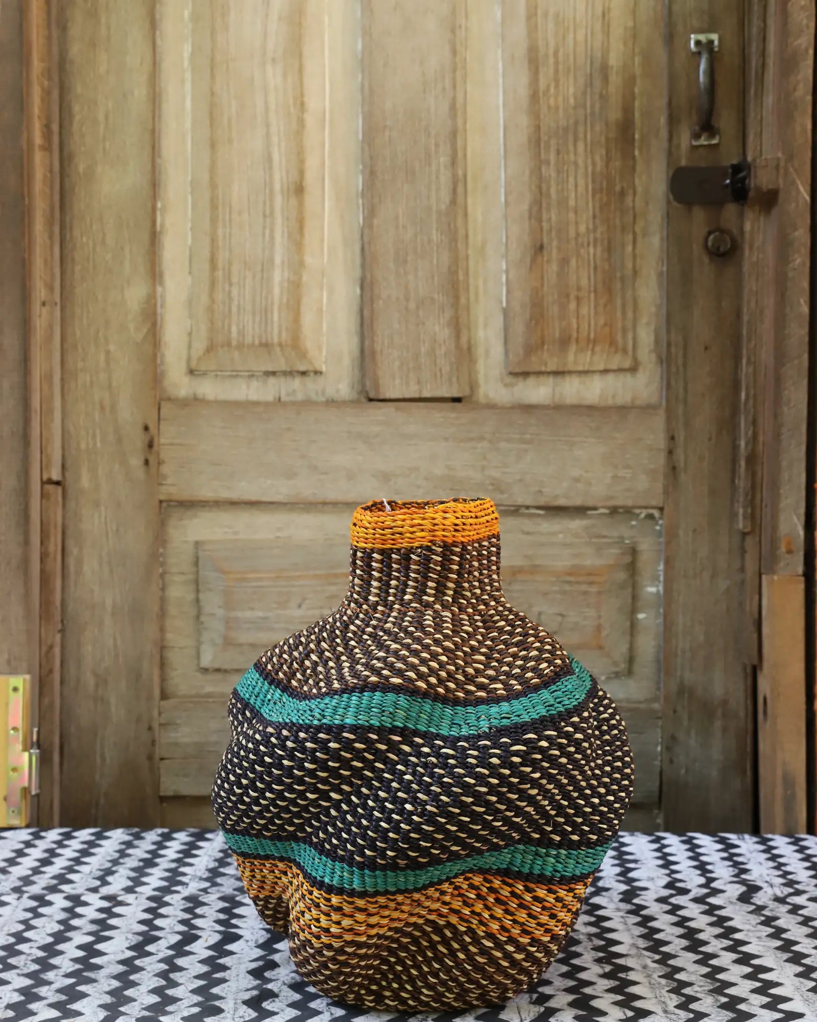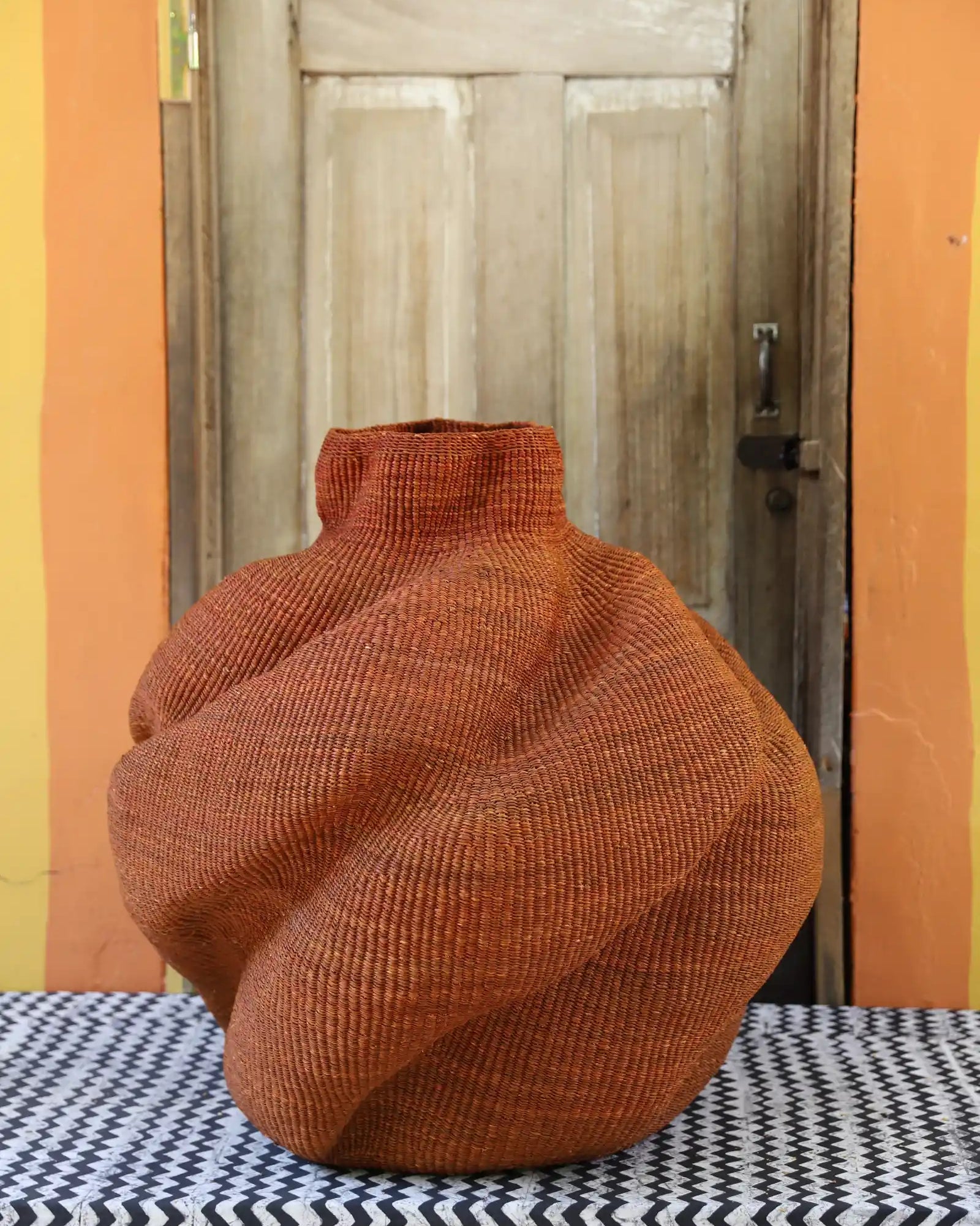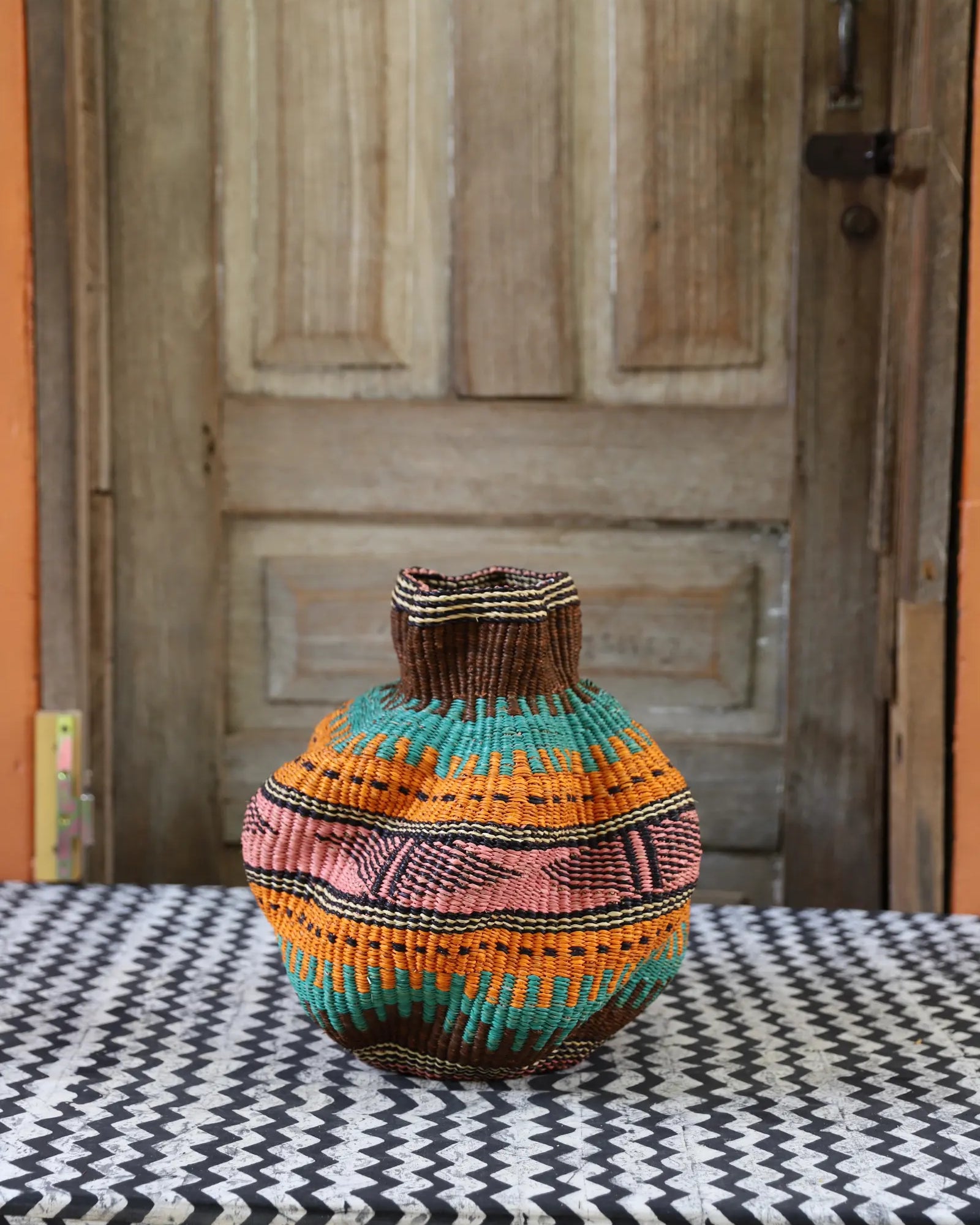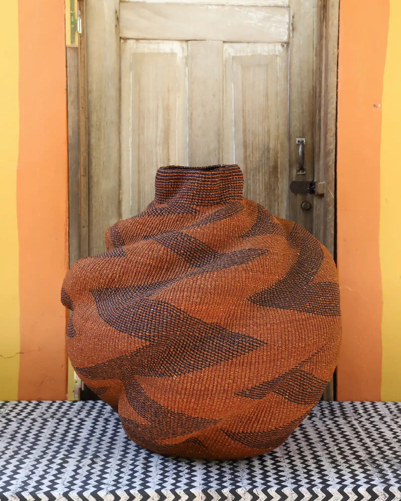 Yoomelingah-yure (Bent Pot) is an art basket that speaks in curves and quiet presence. Handwoven with care, its graceful form captures the stillness of dusk and the beauty of craftsmanship. A sculptural piece for those who see baskets as more than function—this is basketry as poetry.