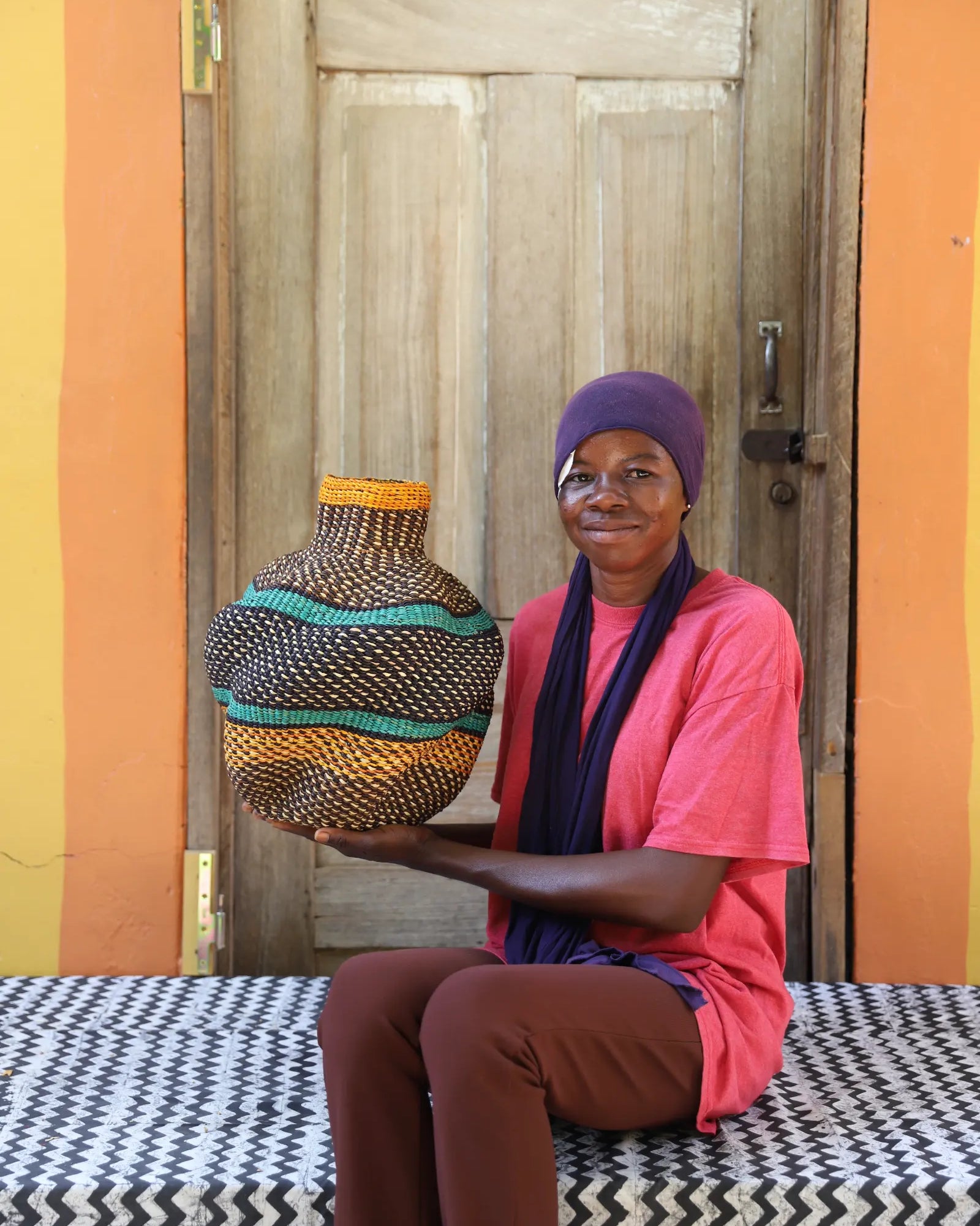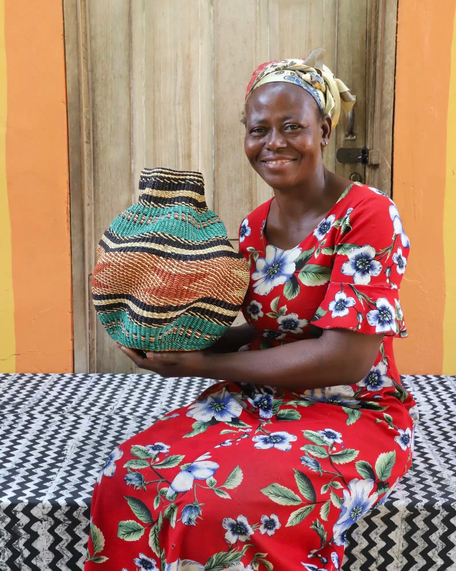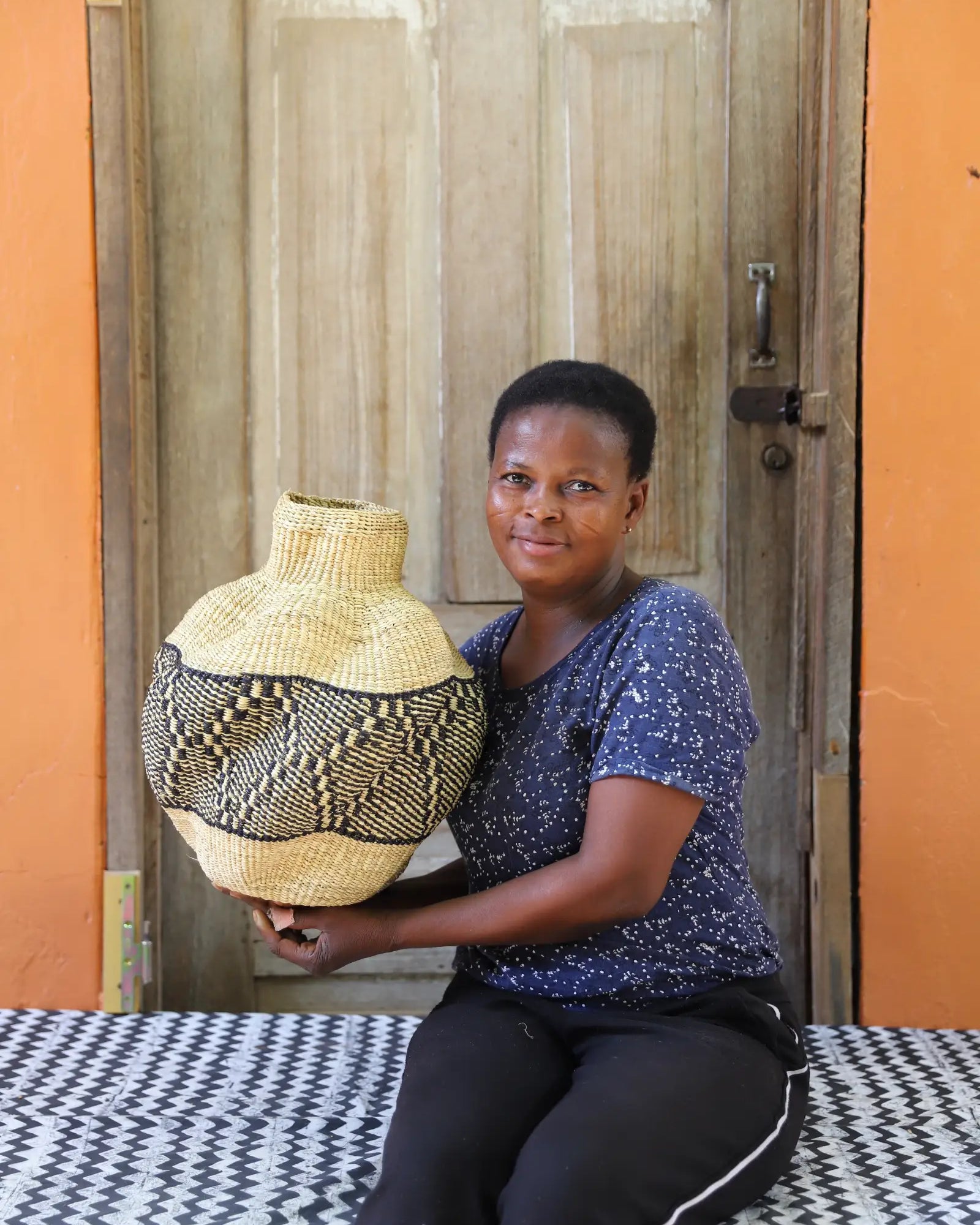 The weaver of this Baba Tree basket will receive a commission on the retail price of this basket in addition to what they were initially paid upon completion of the basket. 12.5% for the large and medium sizes, and 10% commission for the tiny size.