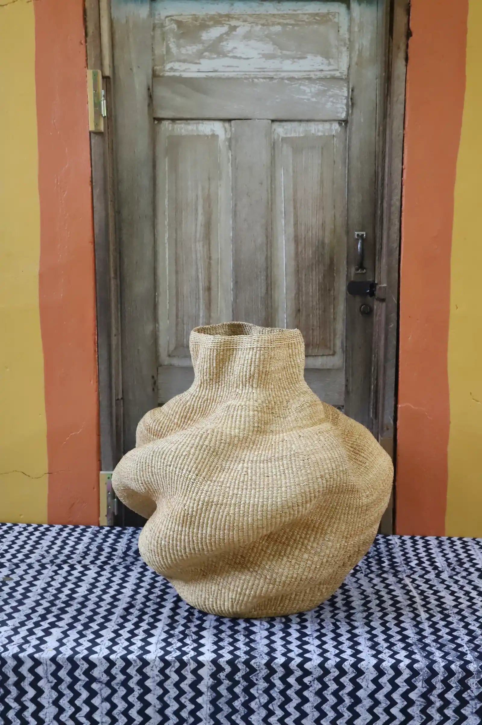 Yoomelingah-yure (Bent Pot) is an art basket that speaks in curves and quiet presence. Handwoven with care, its graceful form captures the stillness of dusk and the beauty of craftsmanship. A sculptural piece for those who see baskets as more than function—this is basketry as poetry.