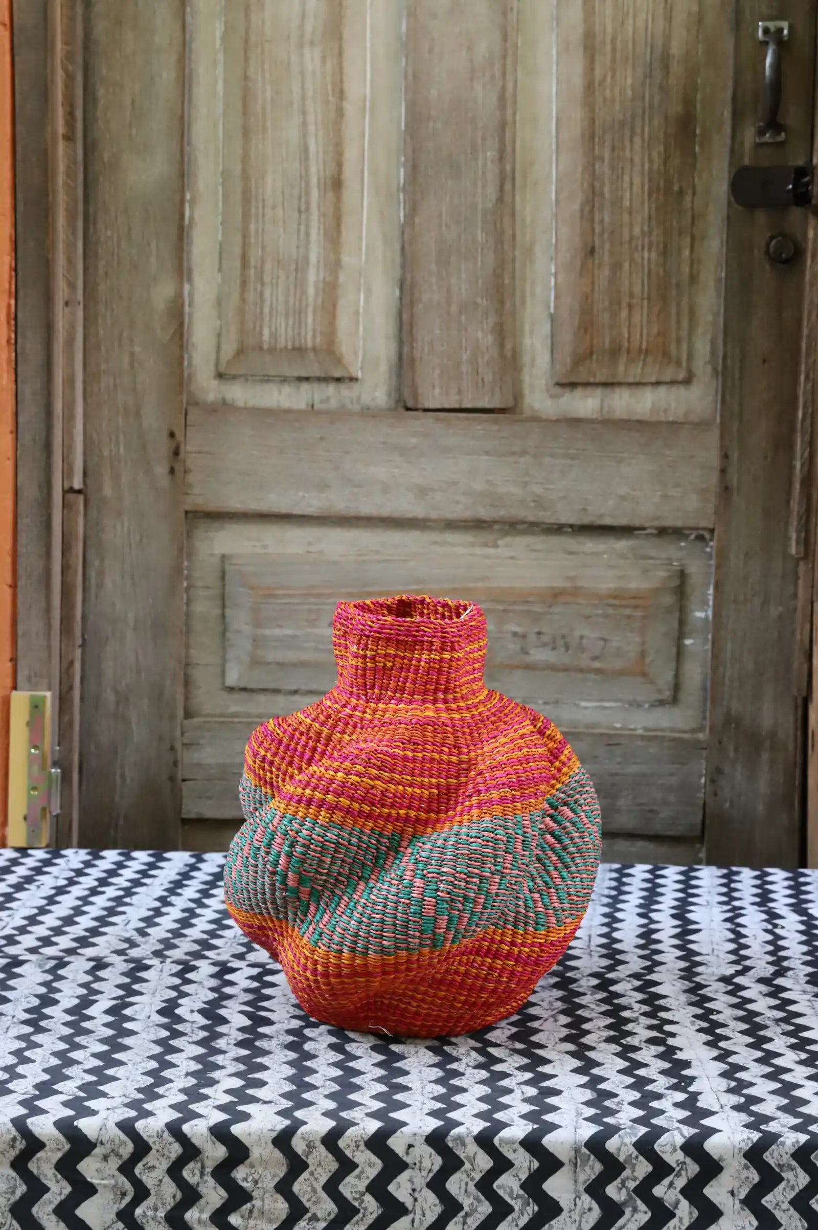 Yoomelingah-yure (Bent Pot) is an art basket that speaks in curves and quiet presence. Handwoven with care, its graceful form captures the stillness of dusk and the beauty of craftsmanship. A sculptural piece for those who see baskets as more than function—this is basketry as poetry.