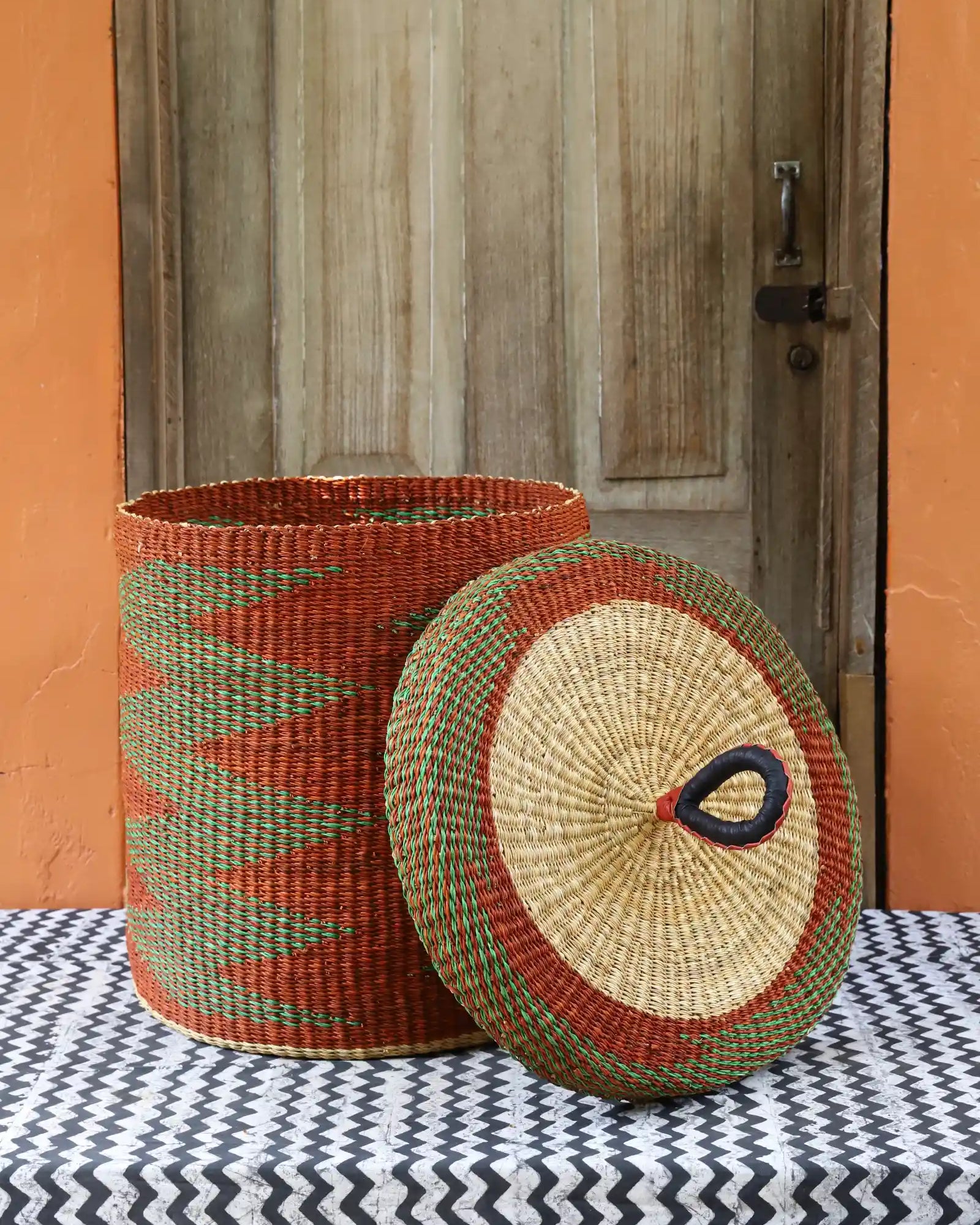 Each piece in this collection comes direct from the hands of the artisans we collaborate with--energetic, colorful, purposeful. Each luscious curve you discover is the hand-print or signature of the Master Weaver who has expertly handcrafted your basket, we celebrate the unique differences in each and every art piece. Basketry is art, we believe.