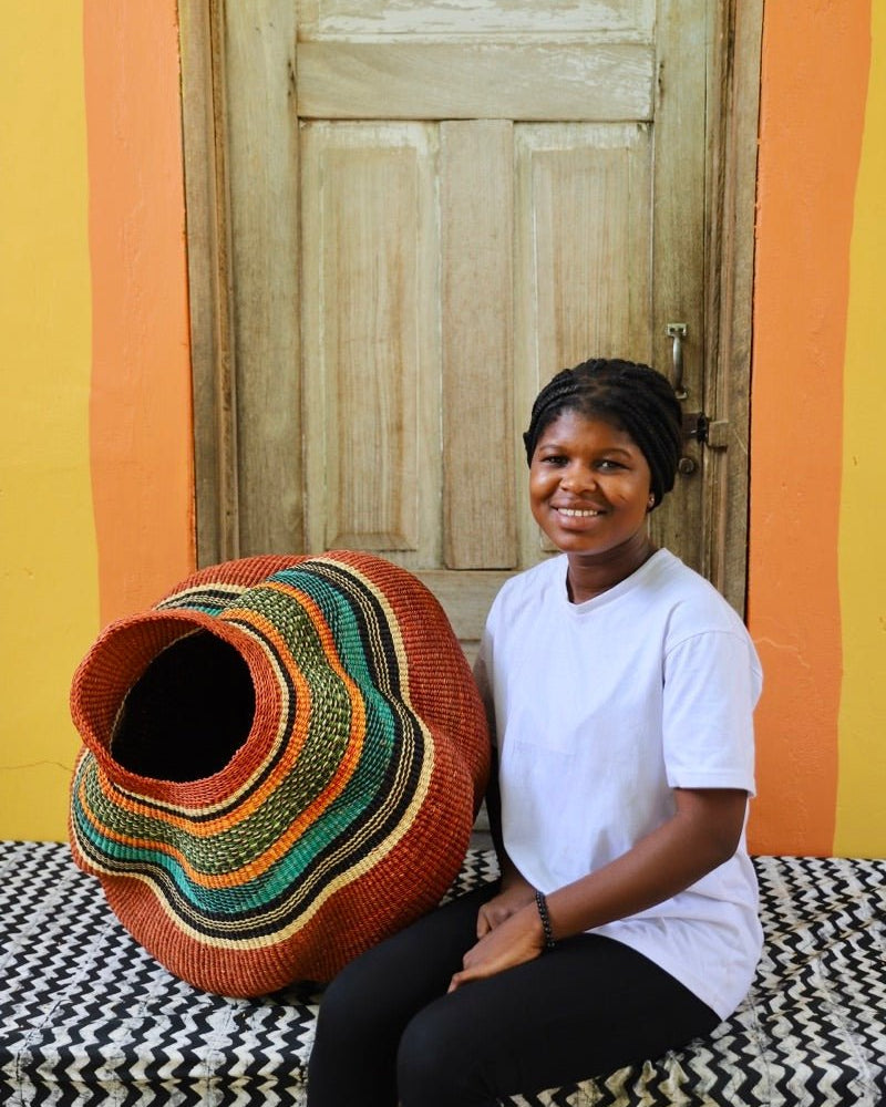 A big-hearted art basket designed by the master himself, Chairman Akabare Abentara. This stunning piece blends tradition with artistry—more than a basket, it’s a sculptural statement that brings soulful character to any space.