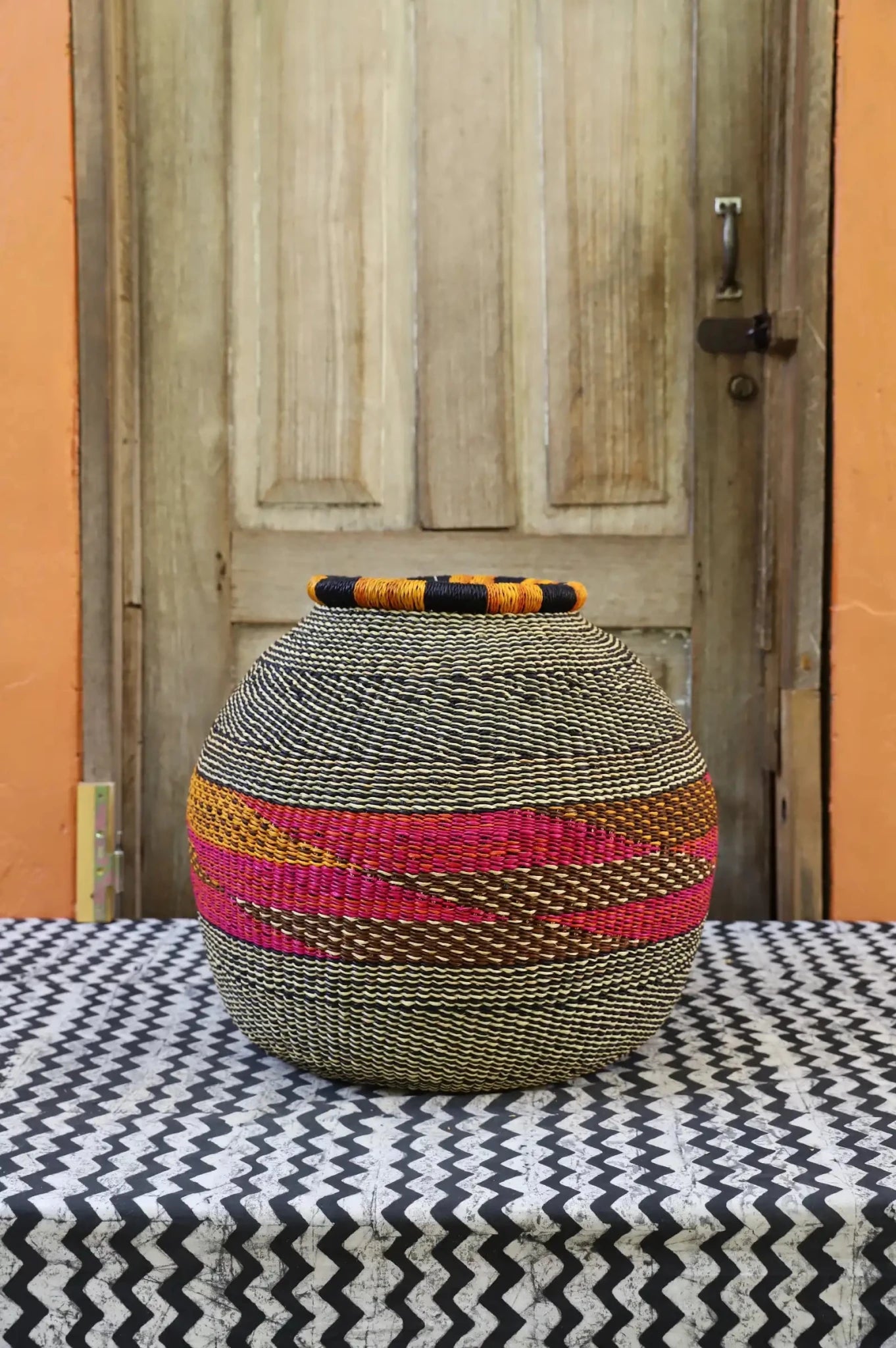 Kenkia, meaning a large water-carrying gourd in Gurune, the language of Ghana’s Gurunsi people is the inspiration behind this full-bodied basket. Though simple in design, its elegant proportions demand the skill of an expert weaver. A true art piece, the Kenkia basket doubles as a stunning woven vase—just add a glass jar for fresh flowers or garden finds.