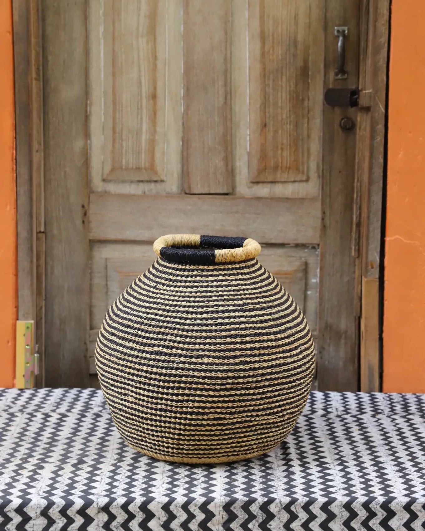 Kenkia, meaning a large water-carrying gourd in Gurune, the language of Ghana’s Gurunsi people is the inspiration behind this full-bodied basket. Though simple in design, its elegant proportions demand the skill of an expert weaver. A true art piece, the Kenkia basket doubles as a stunning woven vase—just add a glass jar for fresh flowers or garden finds.
