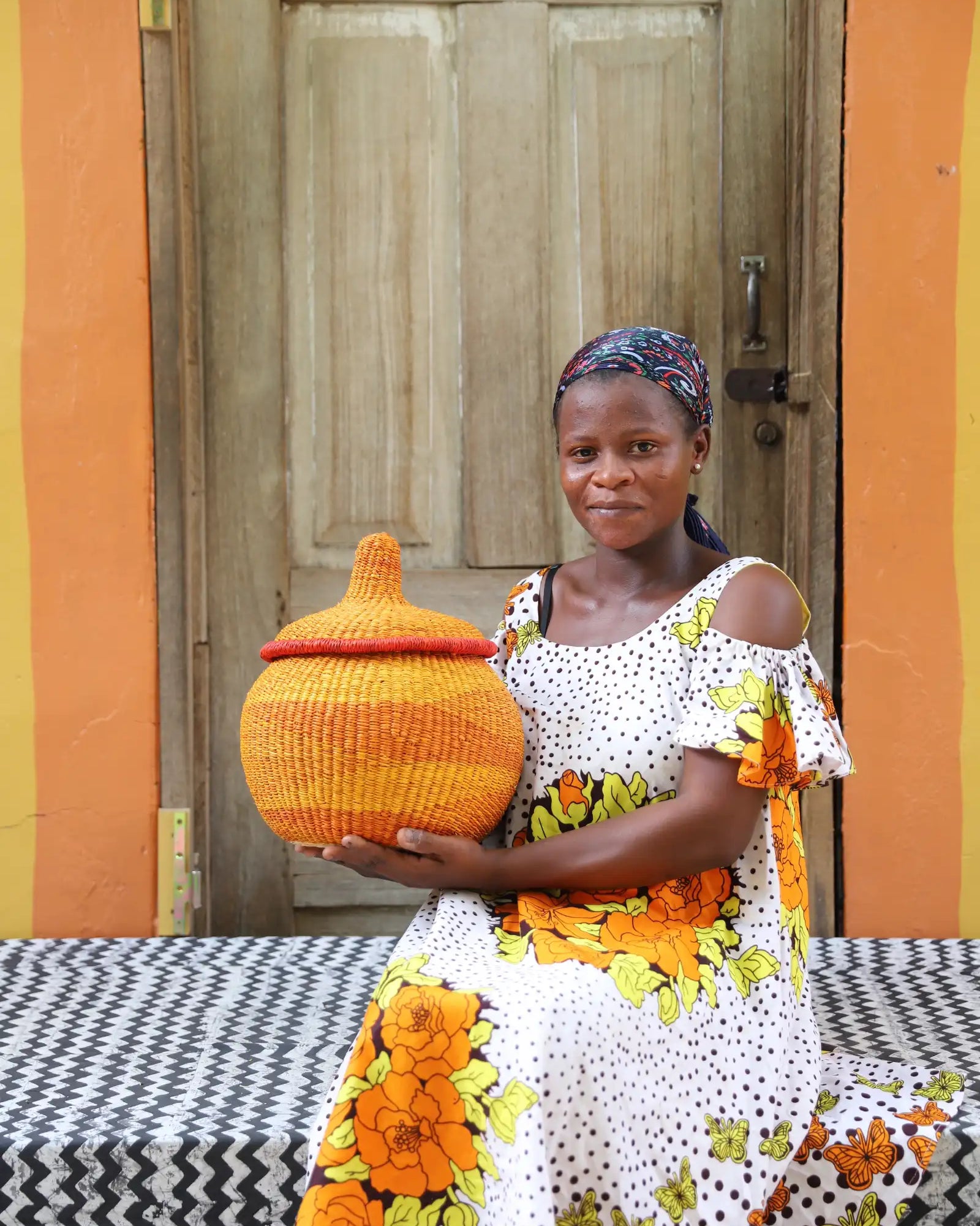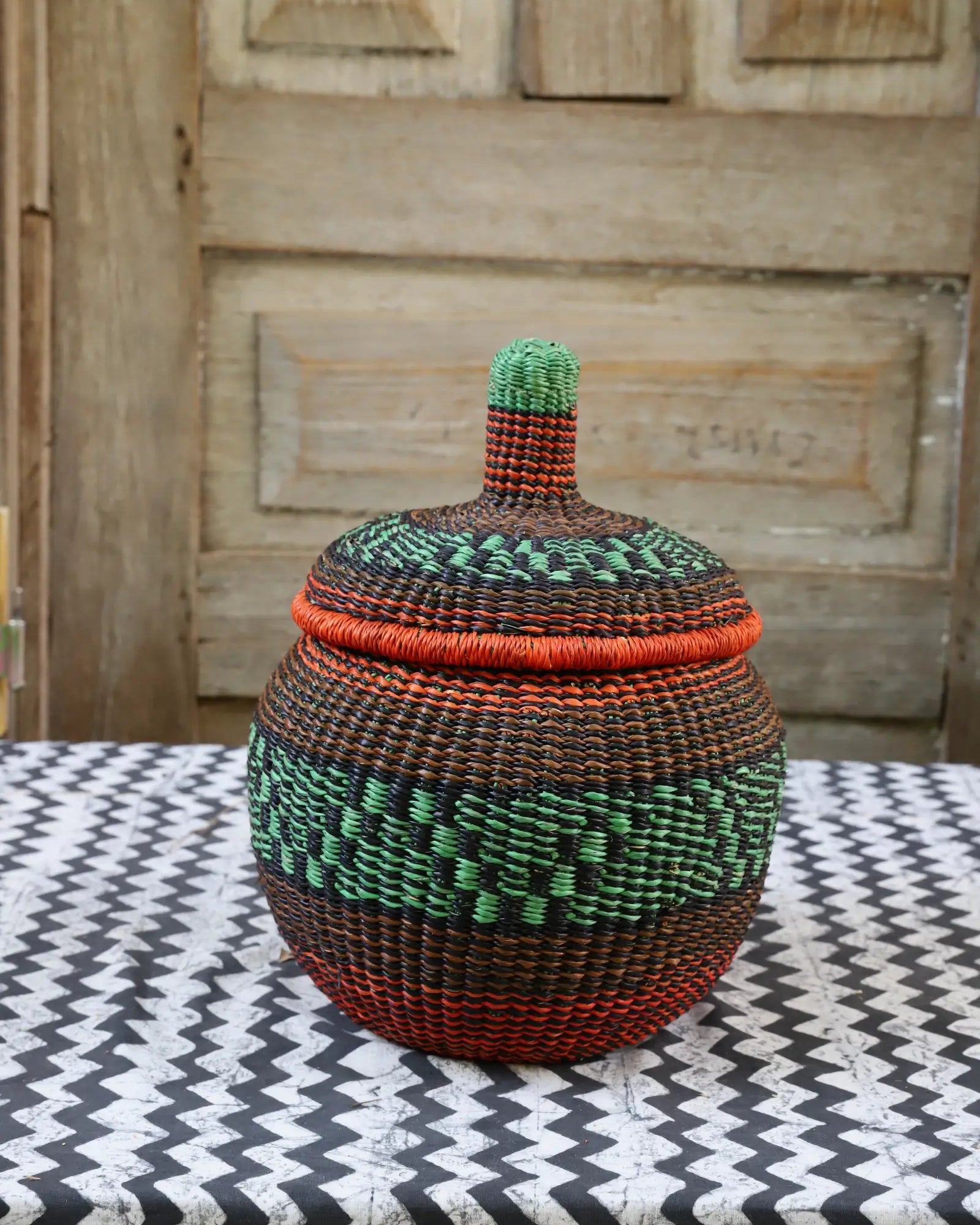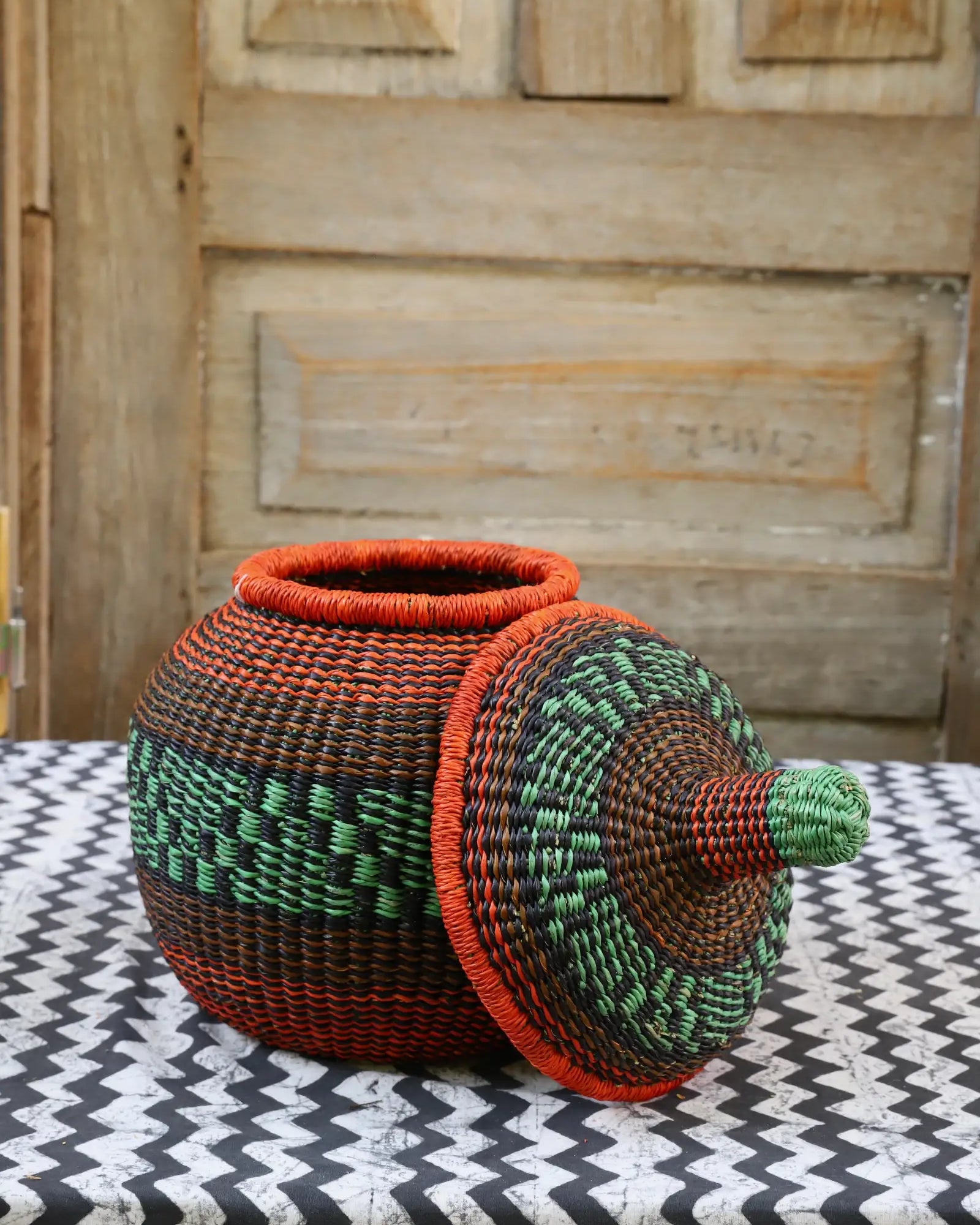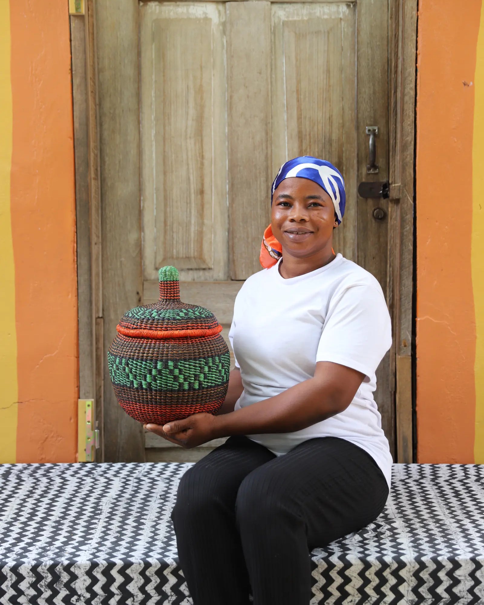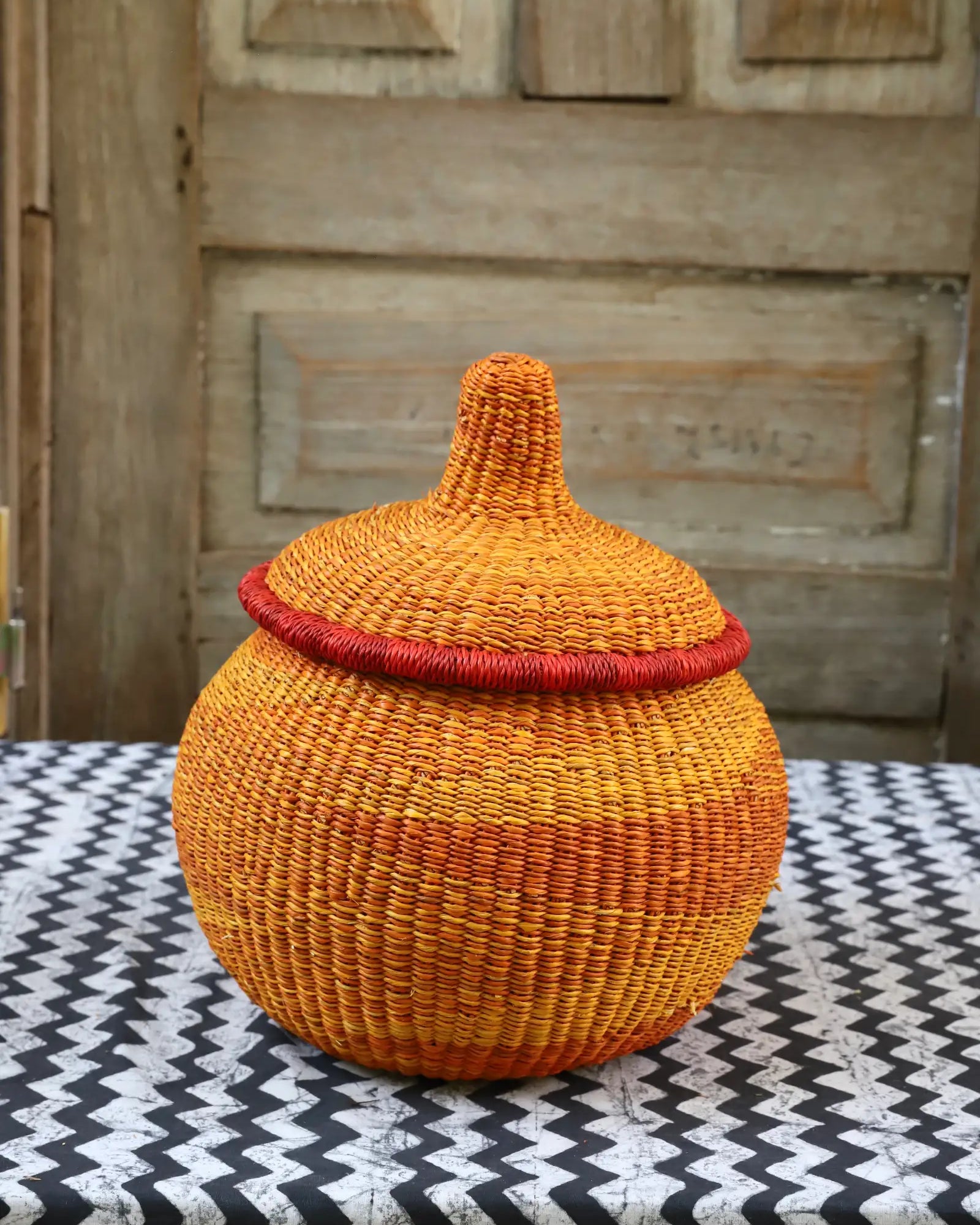 Also Known as Kuope-oh, Orbit was the trusted keeper of flour, salt, and other essentials for preparing TZ, a staple dish in Ghana. It's perfectly fitting lid made it ideal for gently storing ingredients. Orbit serves as a beautiful storage solution and decorative art piece, bringing tradition into the home while keeping spaces functional and graceful.