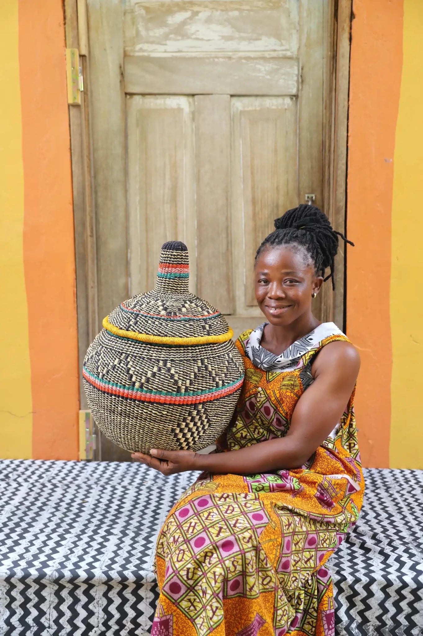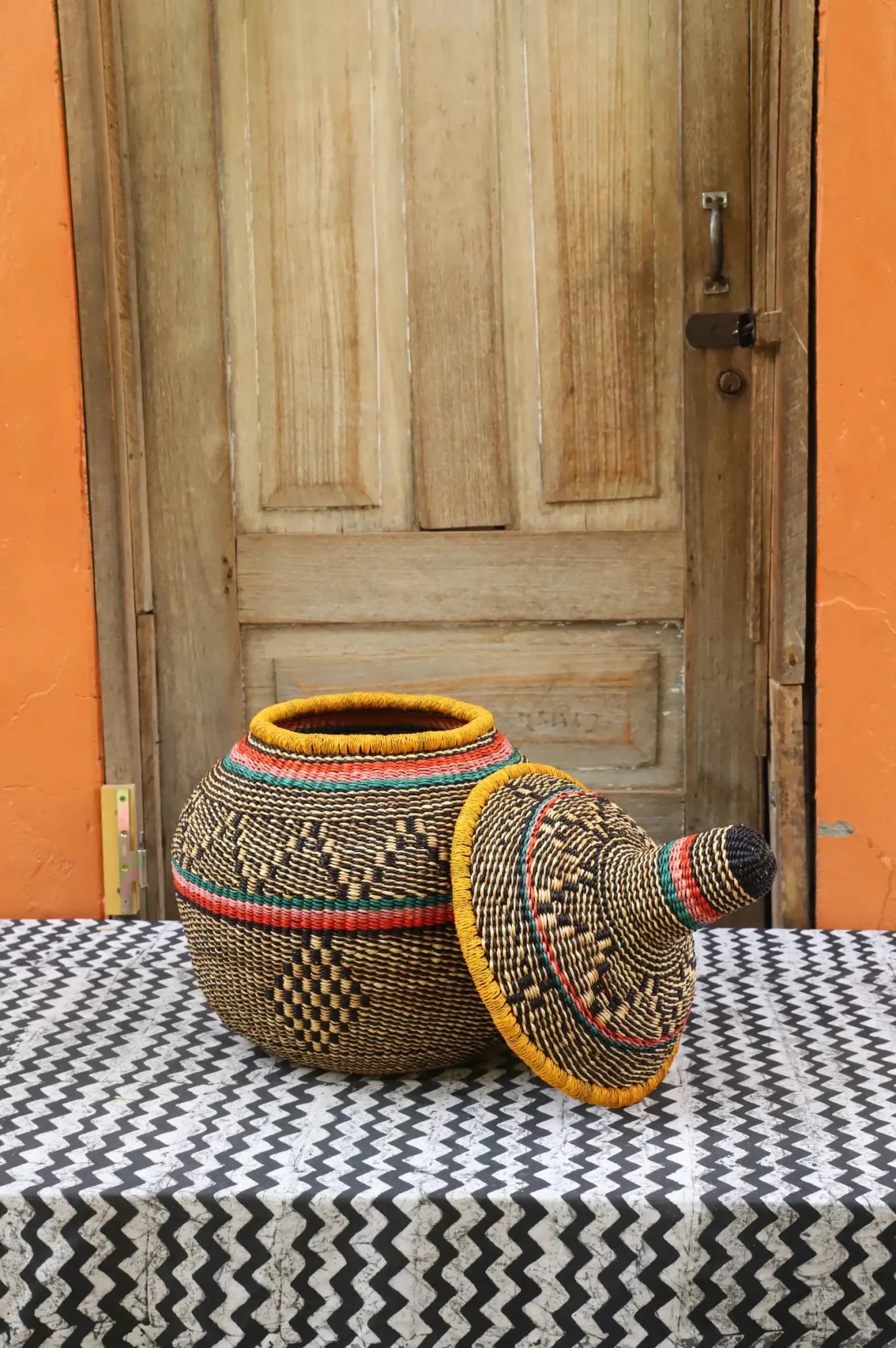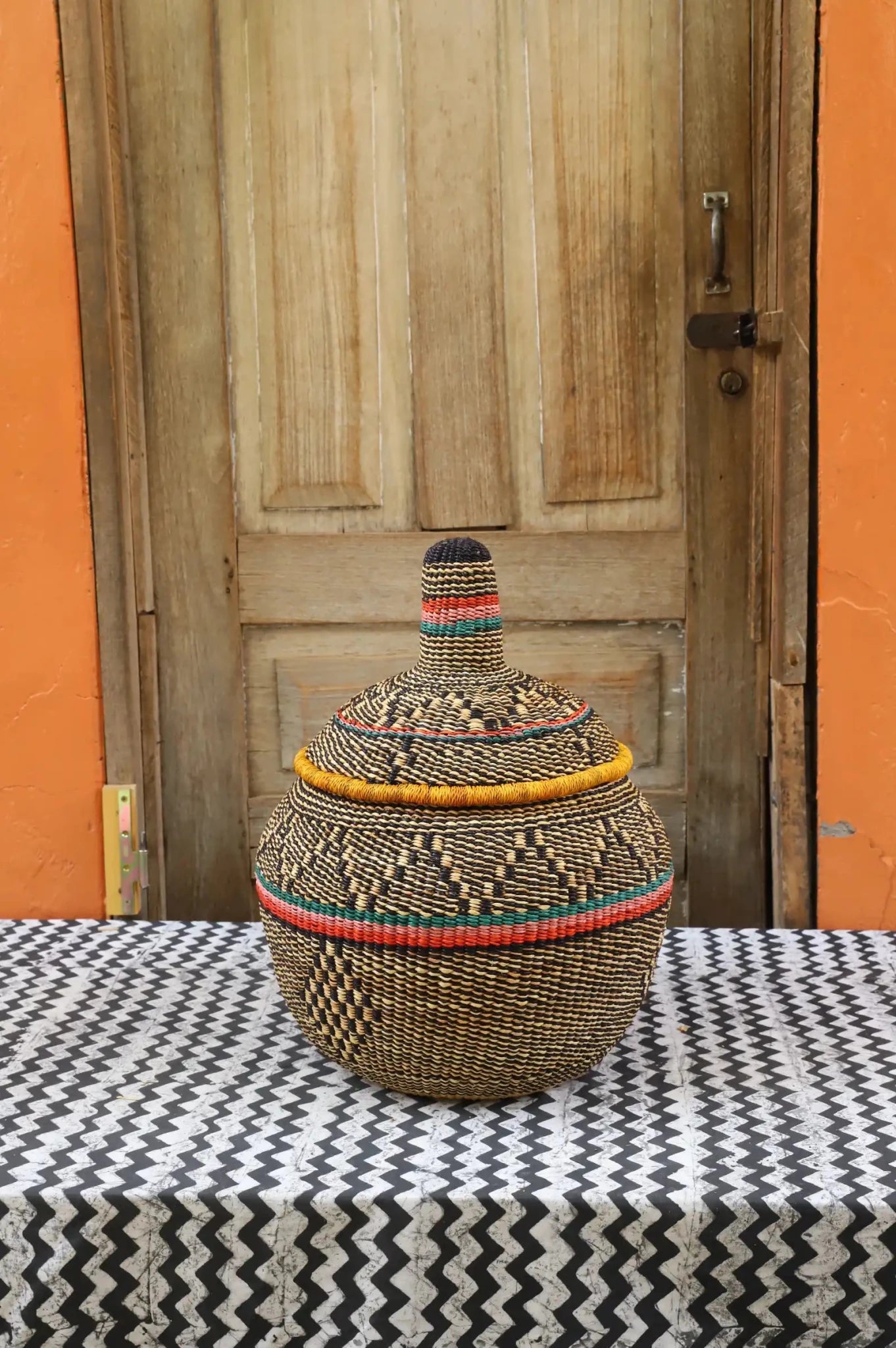 Also Known as Kuope-oh, Orbit was the trusted keeper of flour, salt, and other essentials for preparing TZ, a staple dish in Ghana. It's perfectly fitting lid made it ideal for gently storing ingredients. Orbit serves as a beautiful storage solution and decorative art piece, bringing tradition into the home while keeping spaces functional and graceful.