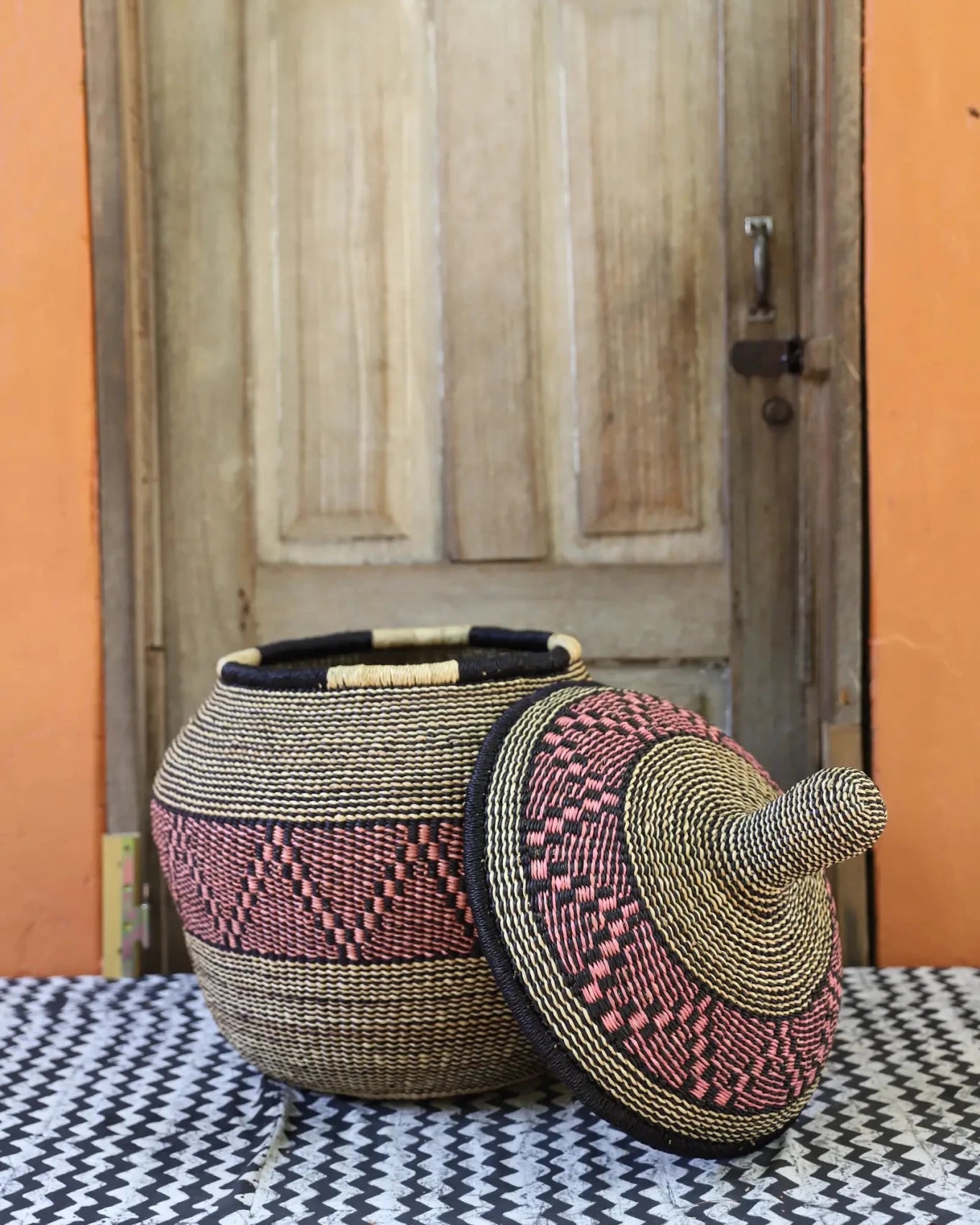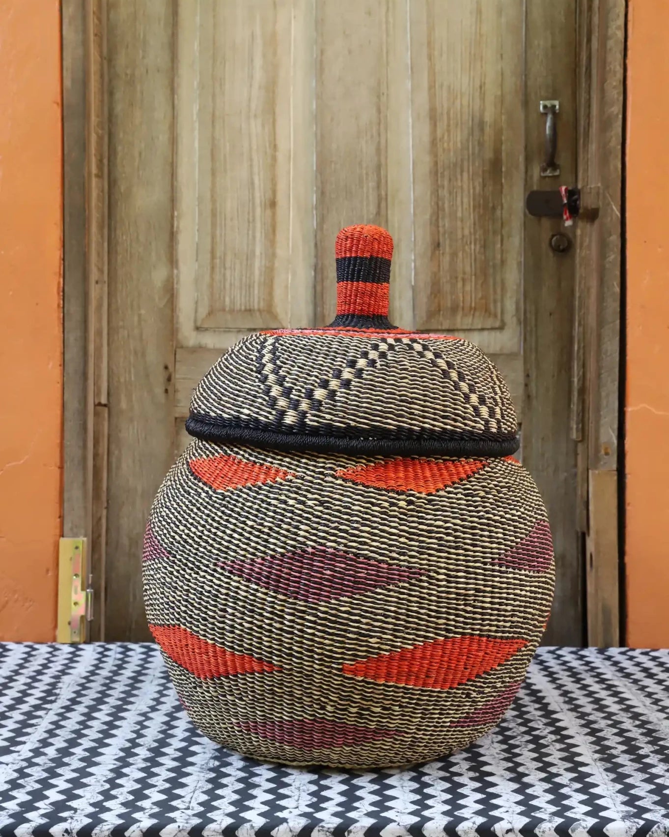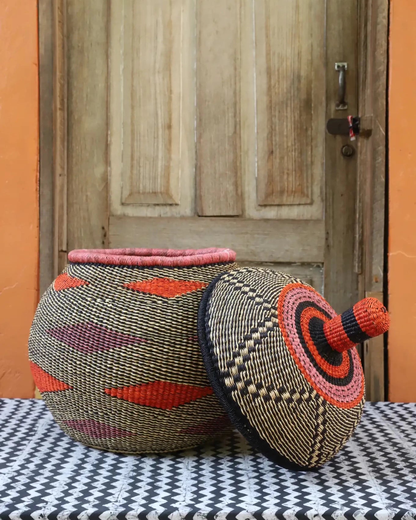 Also Known as Kuope-oh, Orbit was the trusted keeper of flour, salt, and other essentials for preparing TZ, a staple dish in Ghana. It's perfectly fitting lid made it ideal for gently storing ingredients. Orbit serves as a beautiful storage solution and decorative art piece, bringing tradition into the home while keeping spaces functional and graceful.