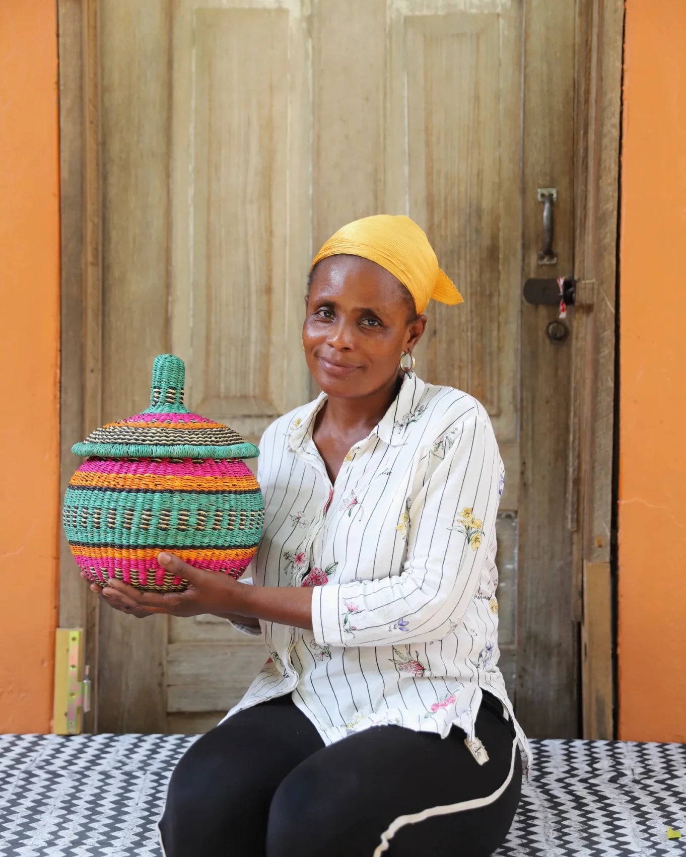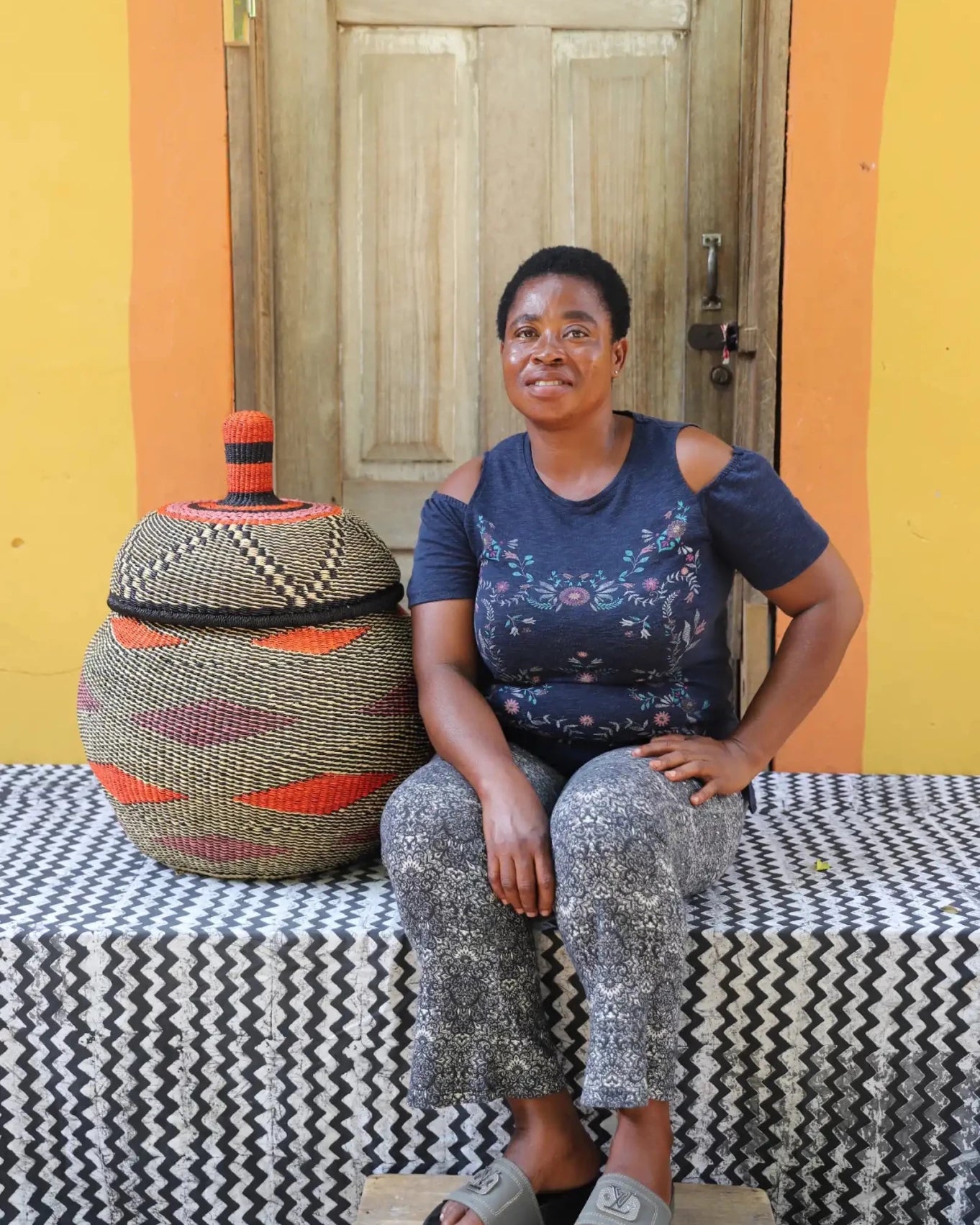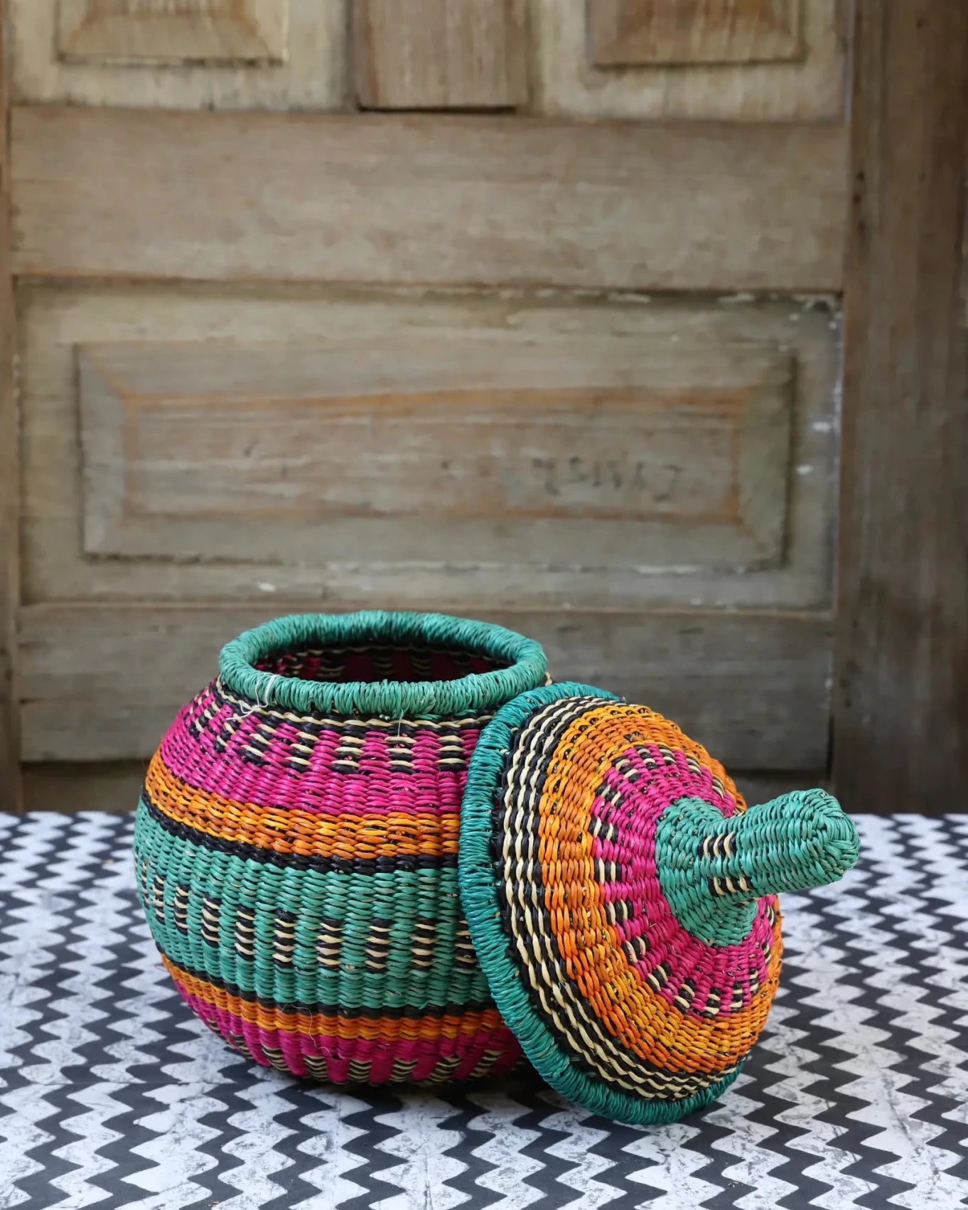 Also Known as Kuope-oh, Orbit was the trusted keeper of flour, salt, and other essentials for preparing TZ, a staple dish in Ghana. It's perfectly fitting lid made it ideal for gently storing ingredients. Orbit serves as a beautiful storage solution and decorative art piece, bringing tradition into the home while keeping spaces functional and graceful.