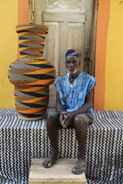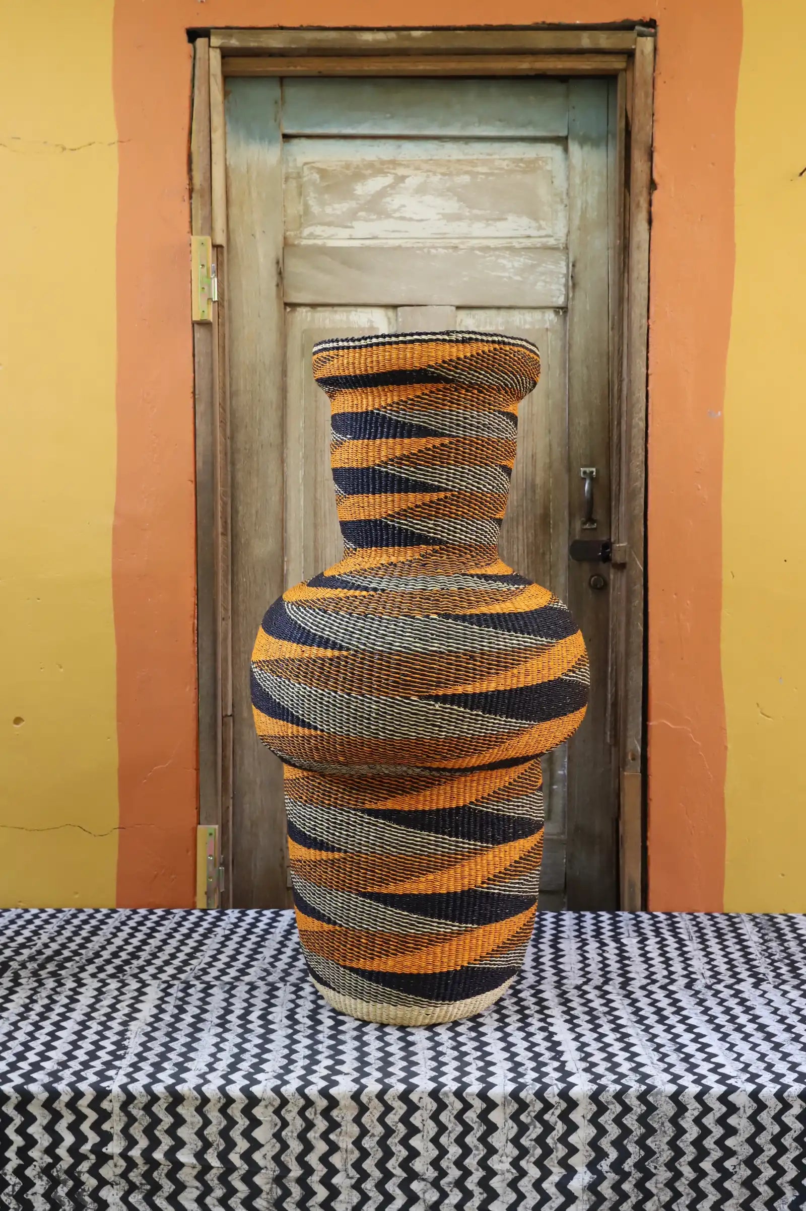 Dugla is a small, pot-like vessel traditionally used to store shea butter. Inspired by the Gurunsi’s shea butter-making rituals, the Tall Dugla basket is an art sculpture in its own right—or insert a glass jar to transform it into a woven vase for fresh flowers or garden greens.