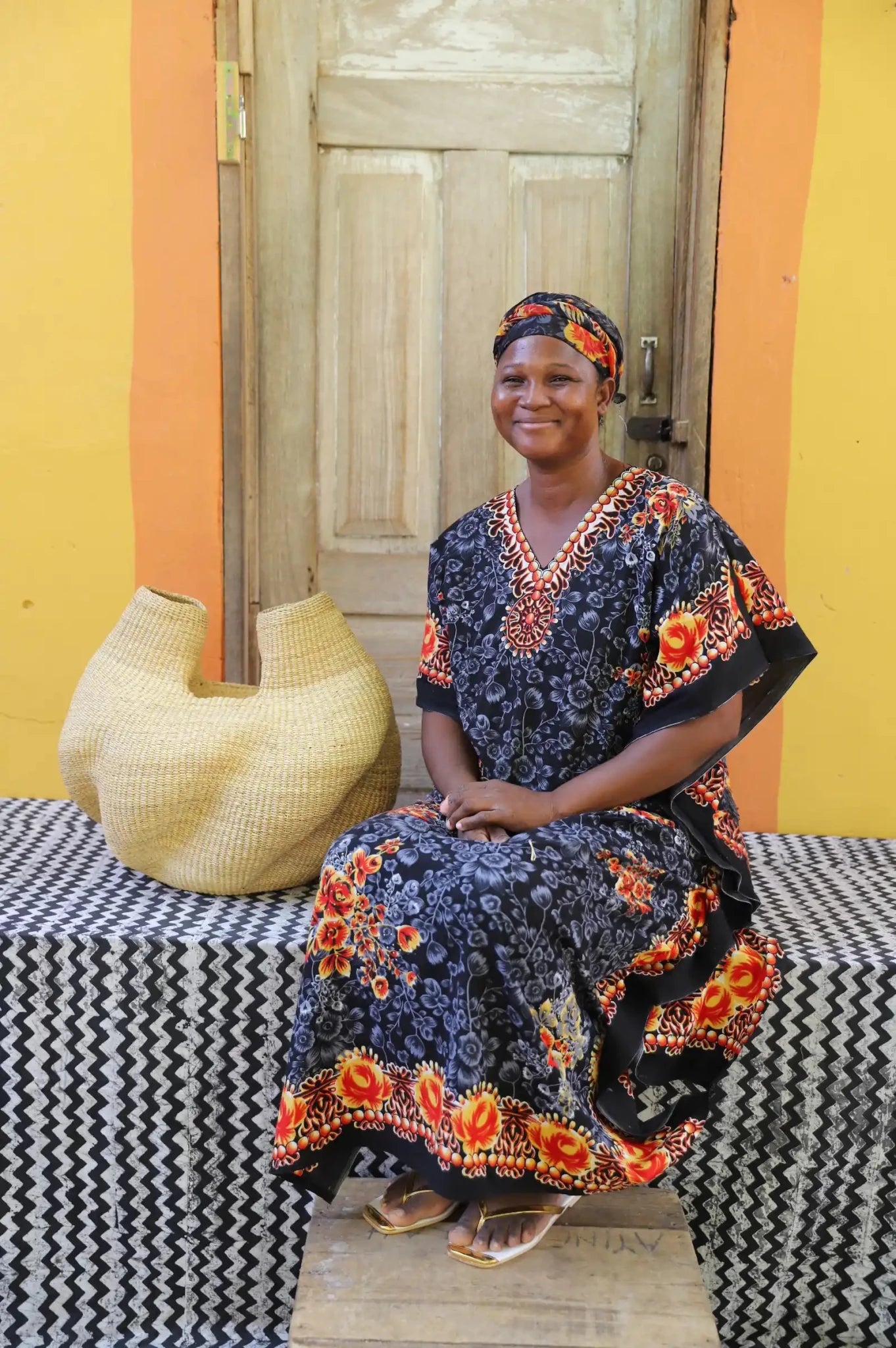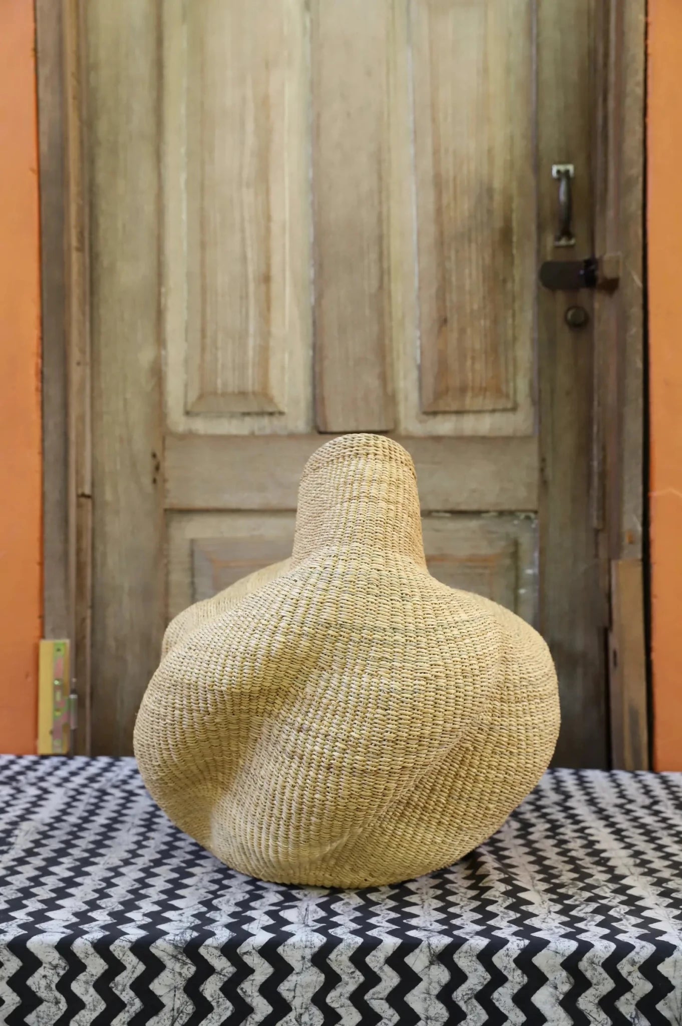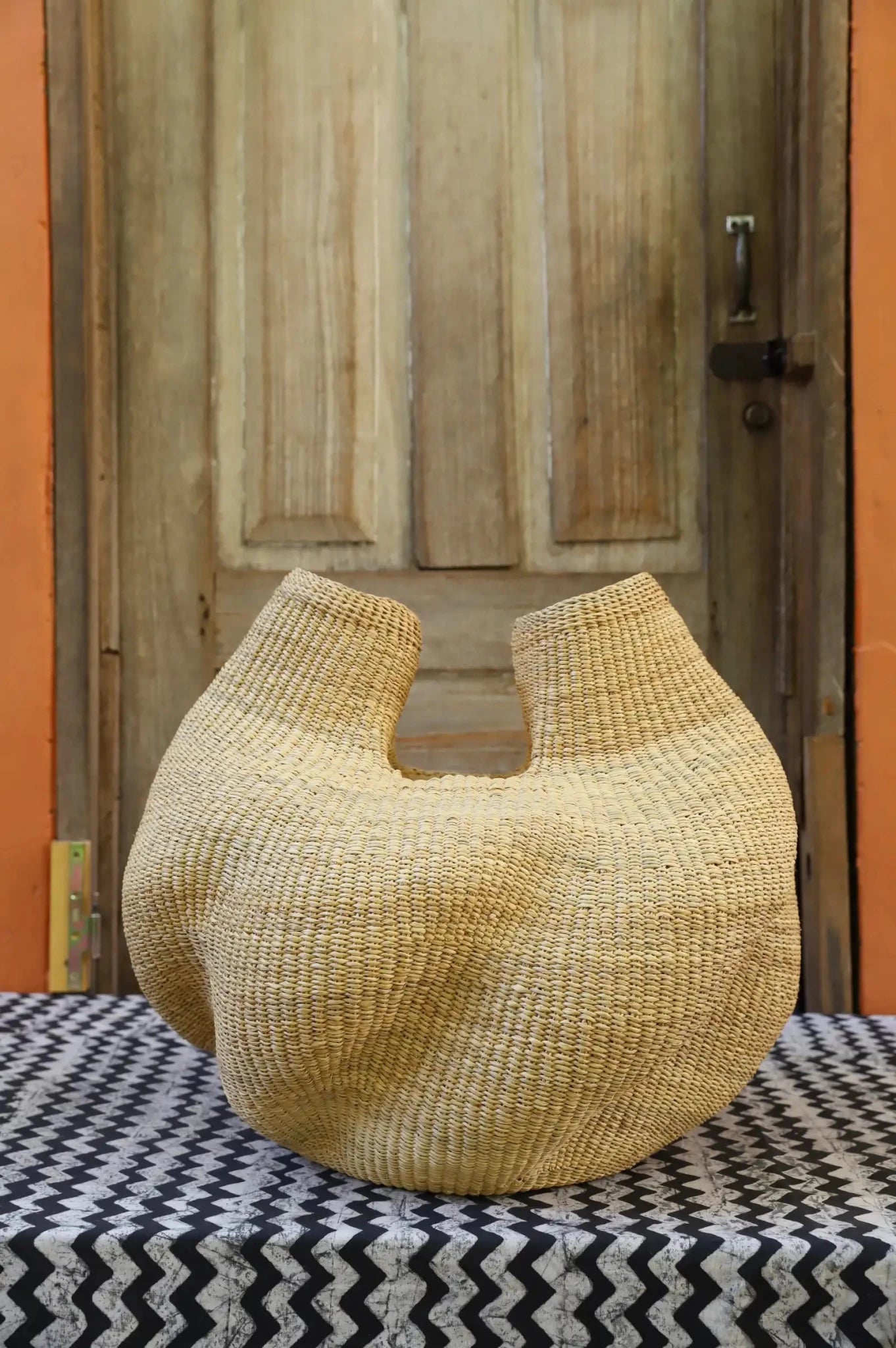 The Woman Man Basket was imagined and created by Madame 1000, inspired by a two-headed baby goat born near her home. The result: a basket with two “heads”—a symbol of balance and duality. At The Baba Tree, women and men weave side by side, as equals in craft and community. This piece celebrates that spirit.