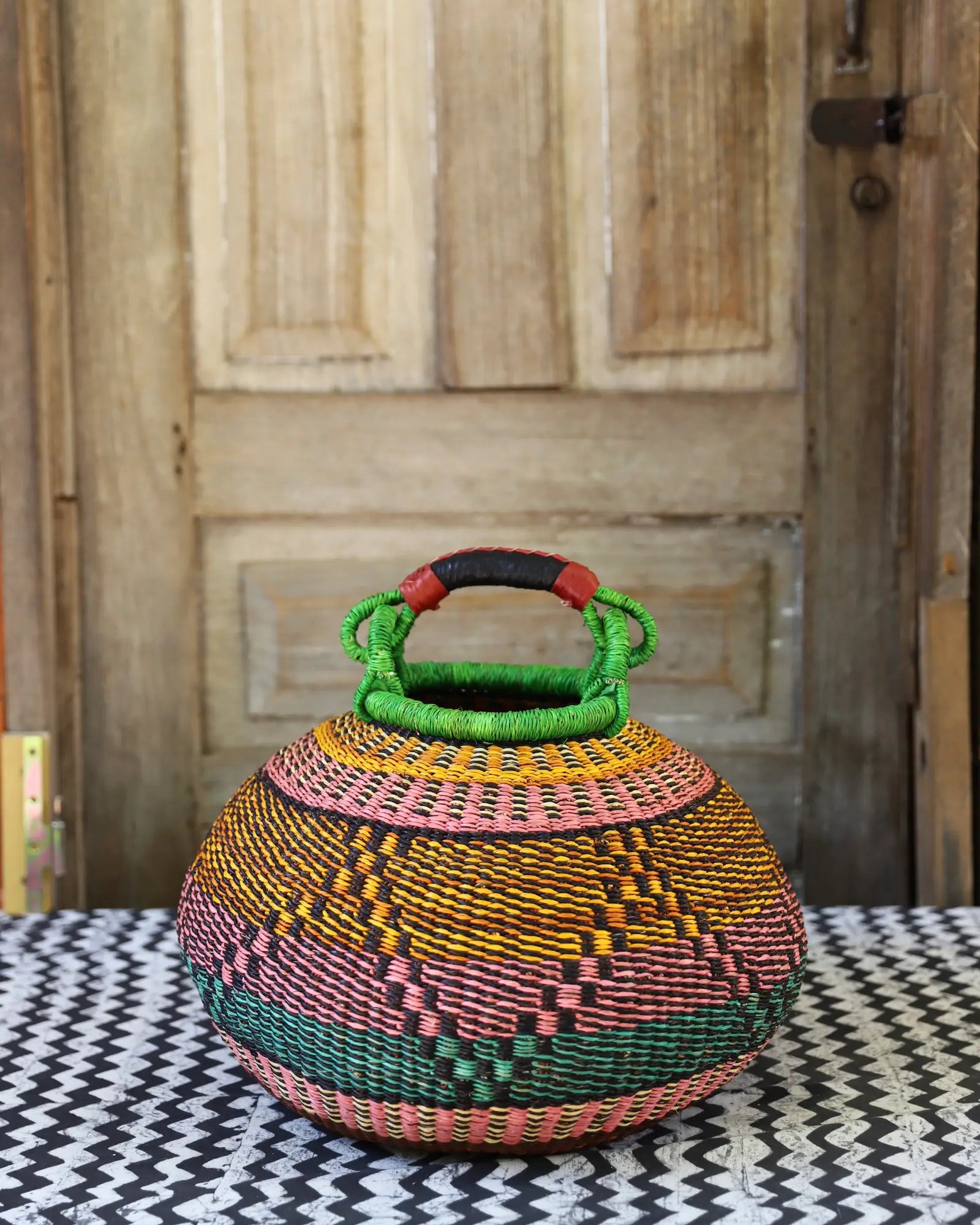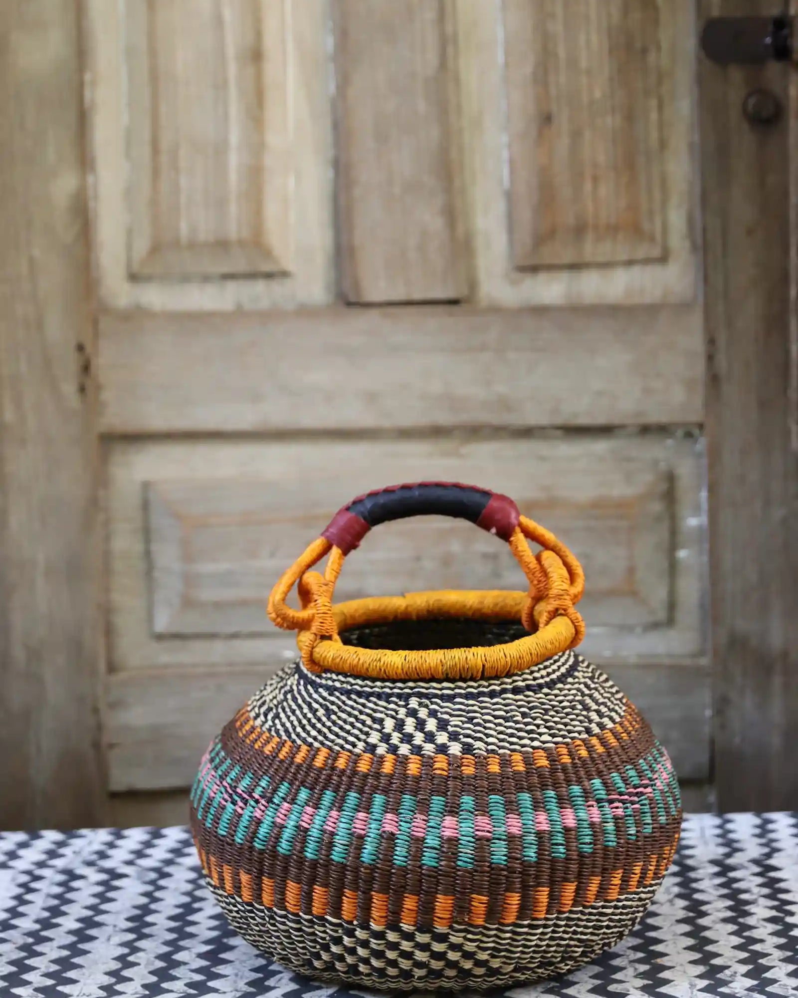 A popular yet challenging basket to weave, our artisans have truly made this design sing. Though not suited for heavy shopping, this Baba Tree Pot Basket is equal parts art and storage, perfect for everything from that special vacation rock to keepsakes and to those little mysteries only you understand.