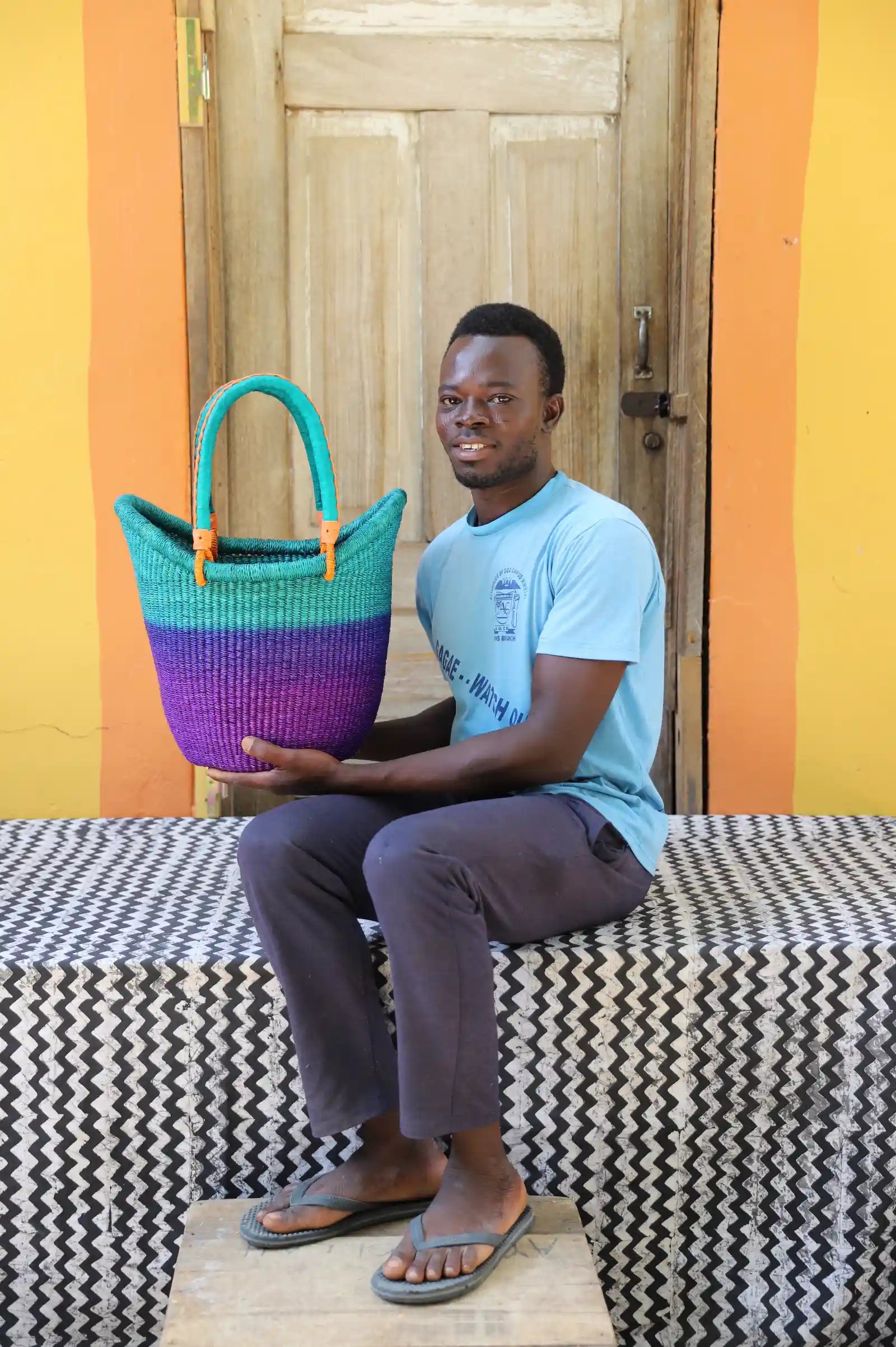 Nyariga Dip-dyed Shopping Basket (Medium) by Kwame Ayine