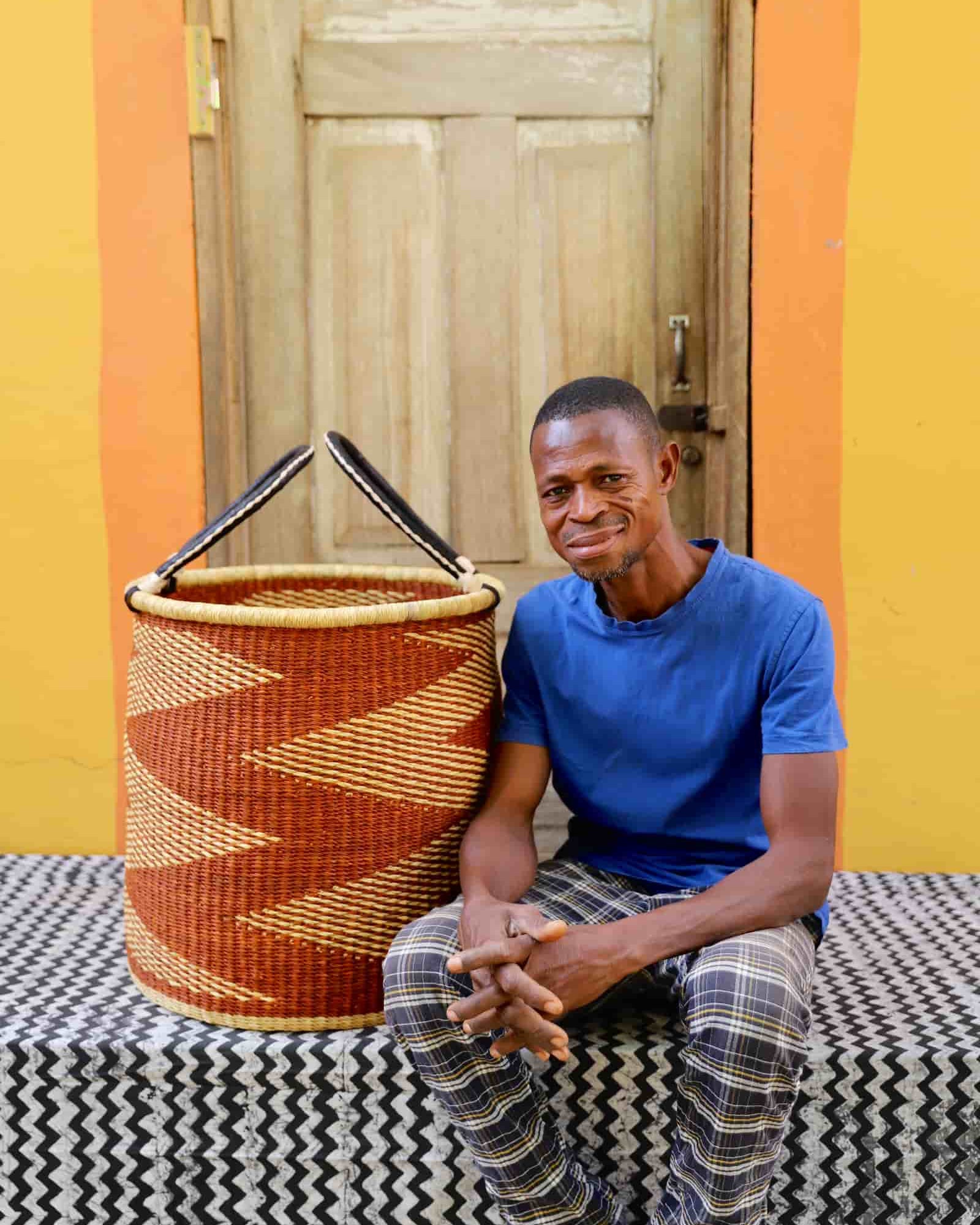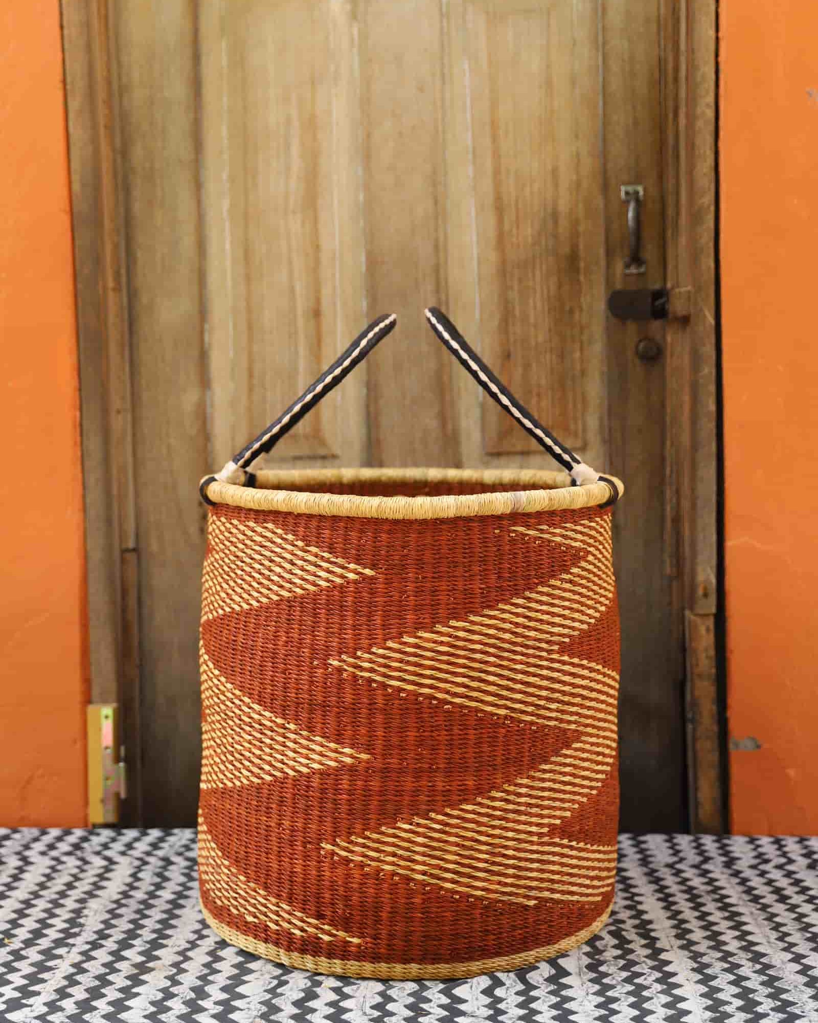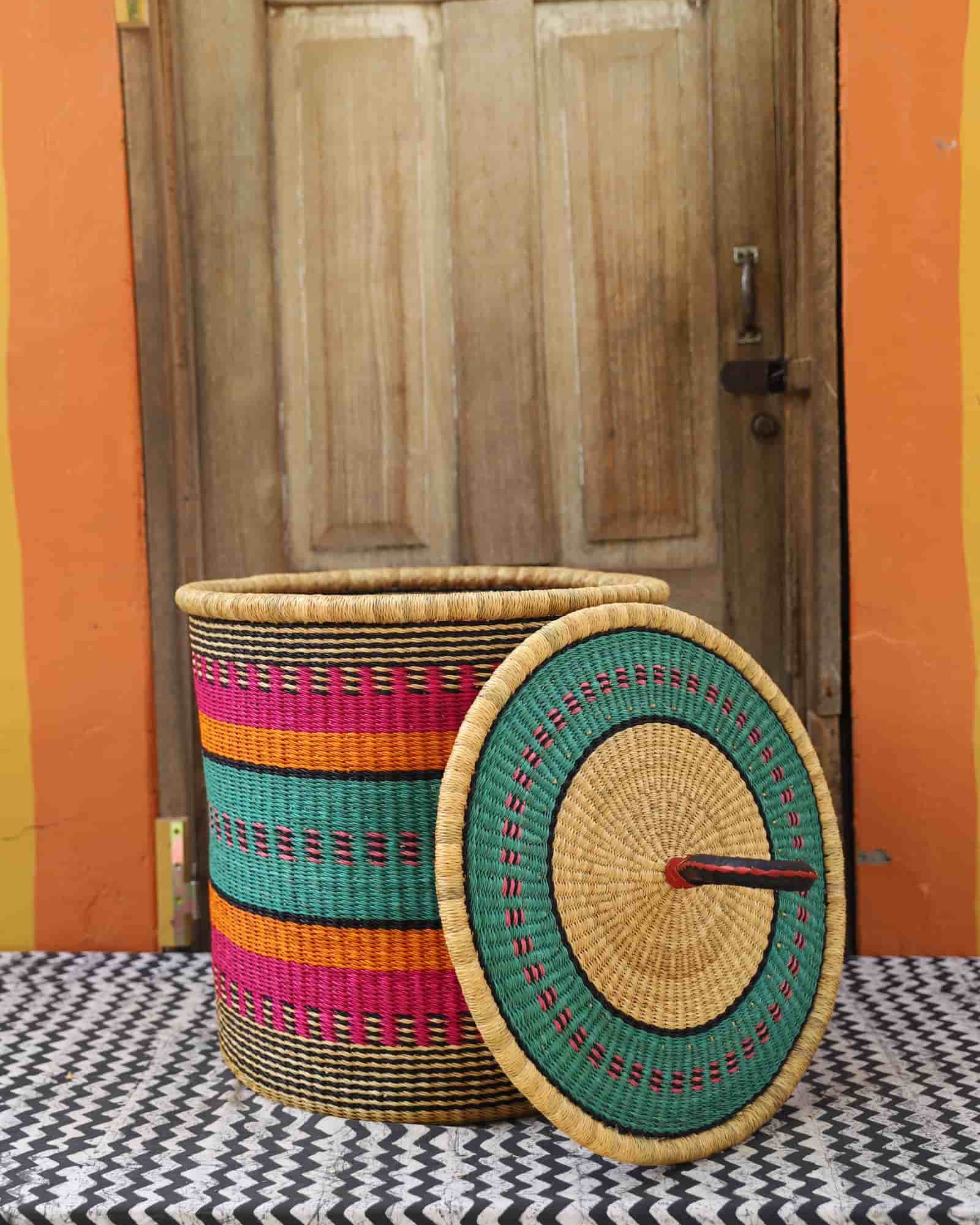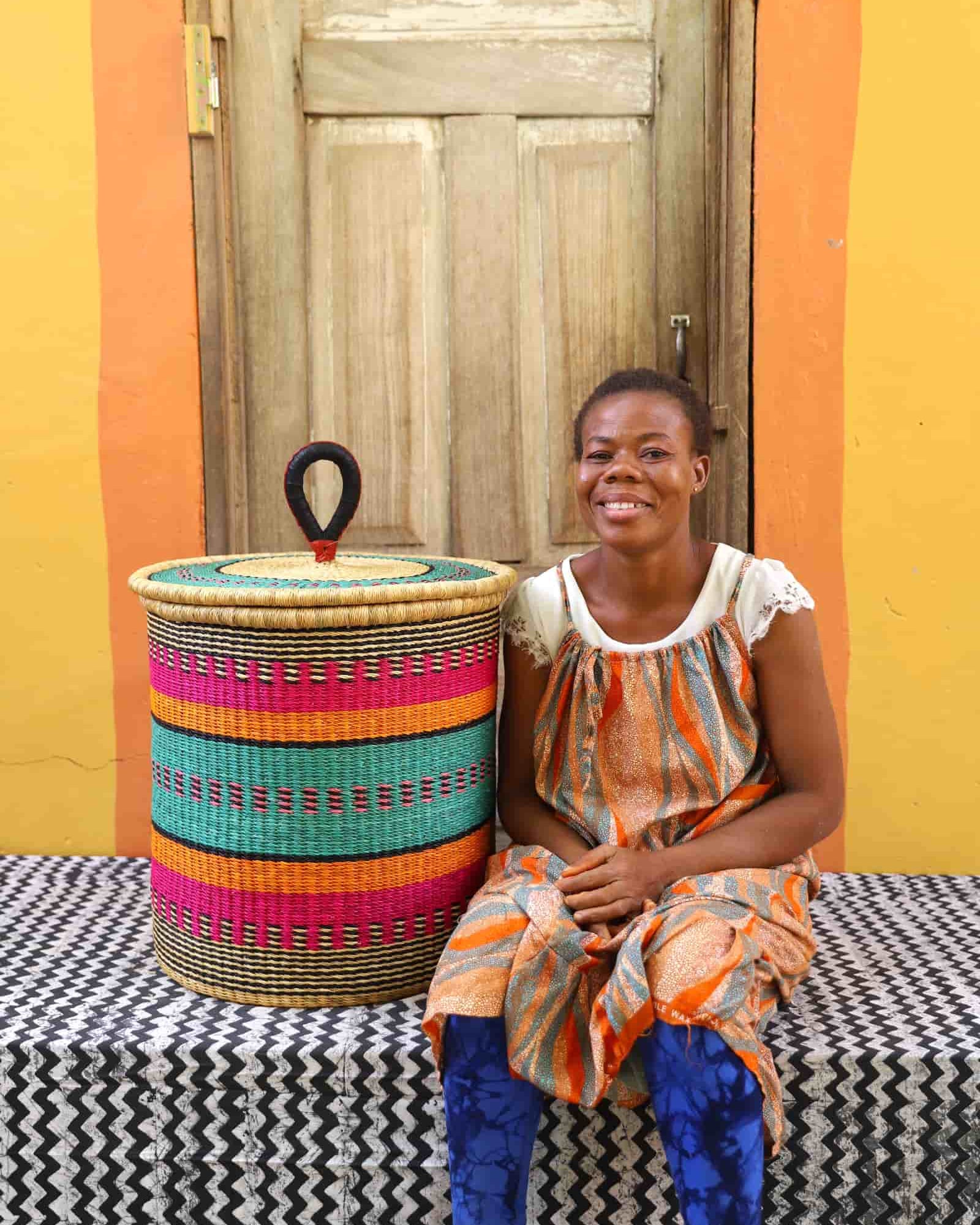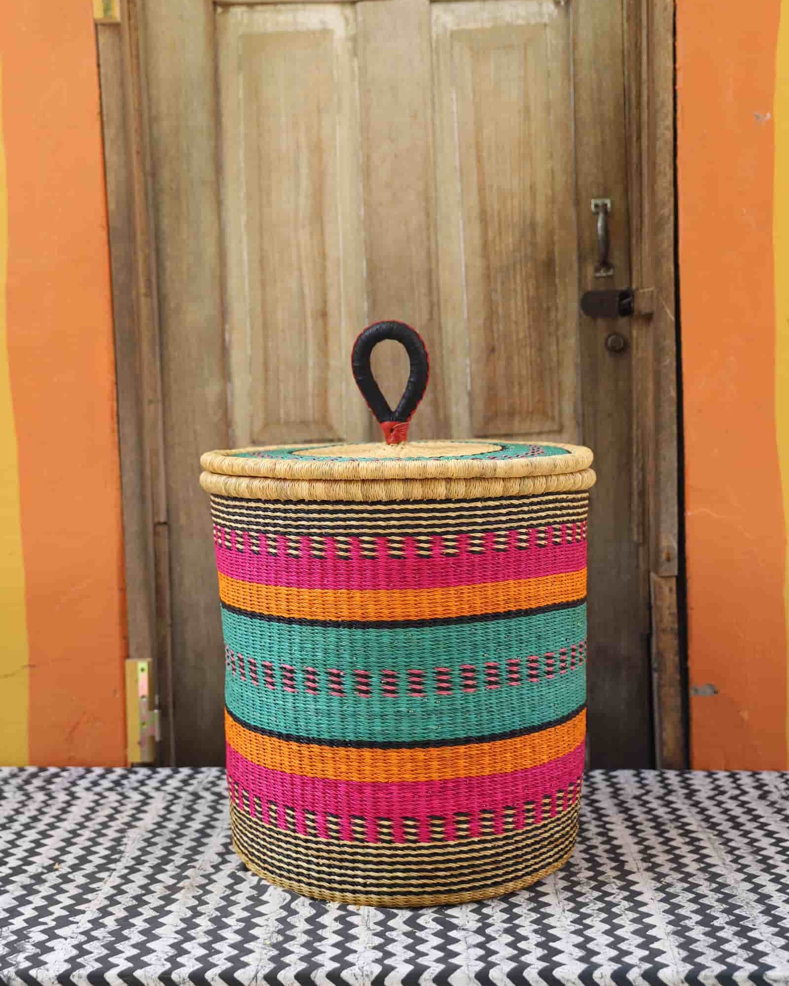 Our handwoven artisan laundry baskets are available in L, M and S. Choose from grounded earth tones, natural elephant grass or beautiful combinations inspired by the colours of Ghana. Now also available lidded and lined in beautiful local batik by Esther Amate, Ghana wax print and natural handwoven. Crafting modern luxury and making laundry a pleasure.