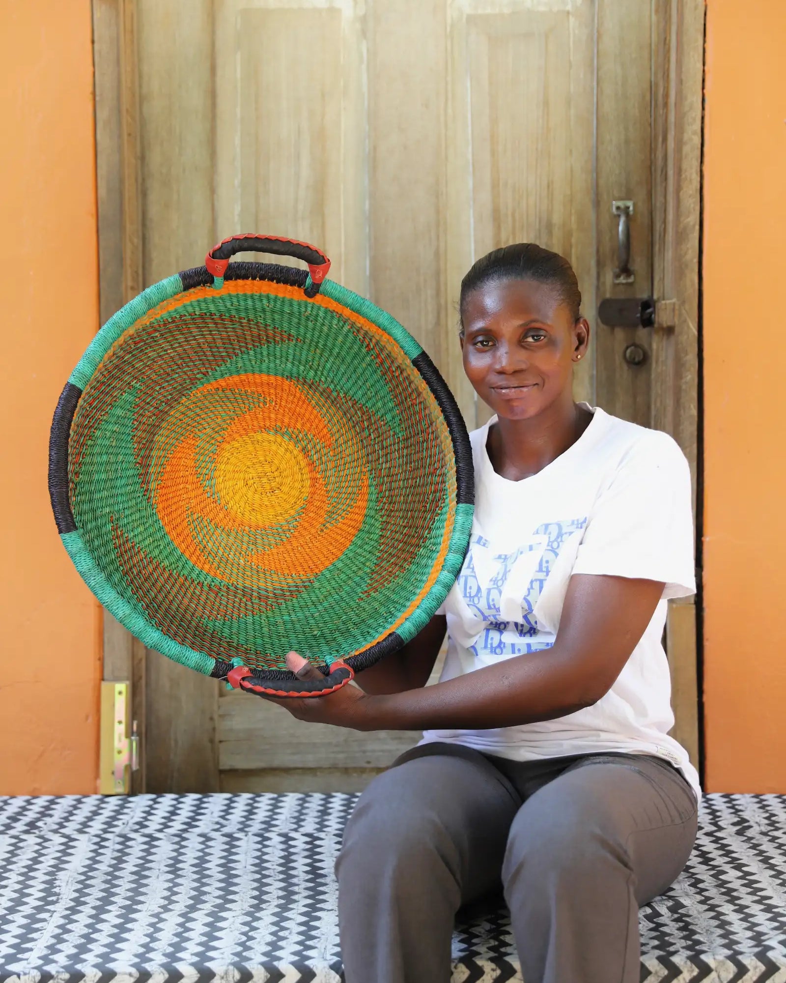 You will receive the basket in the picture. In our photos, baskets are presented by the weavers who created them.