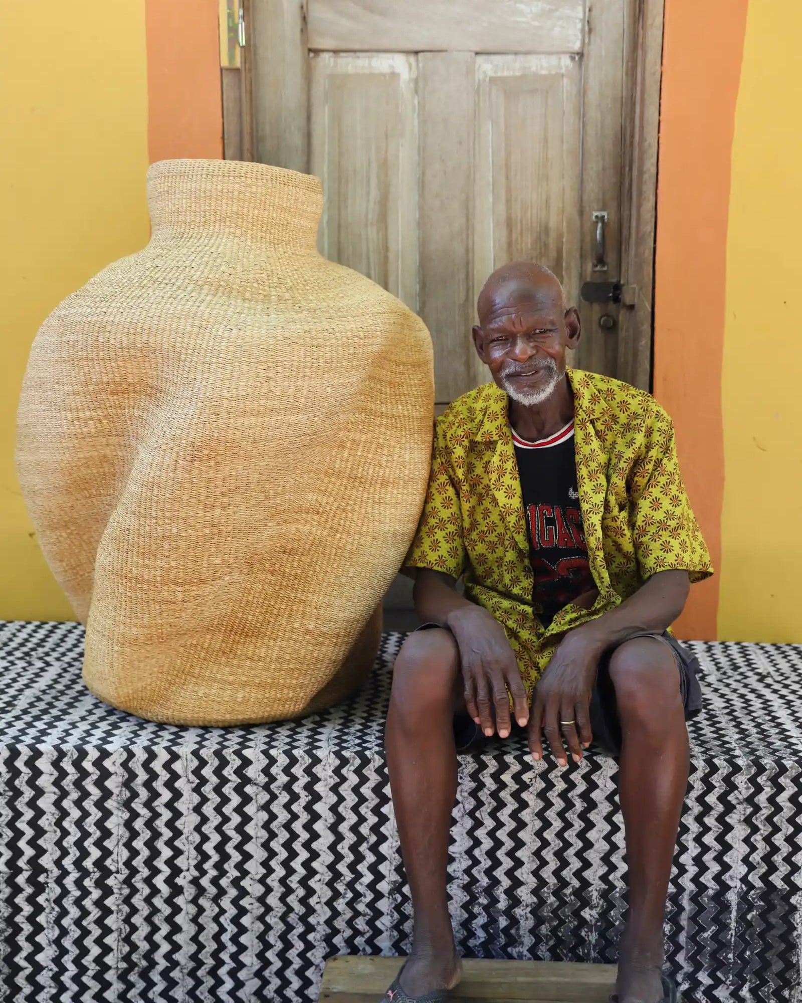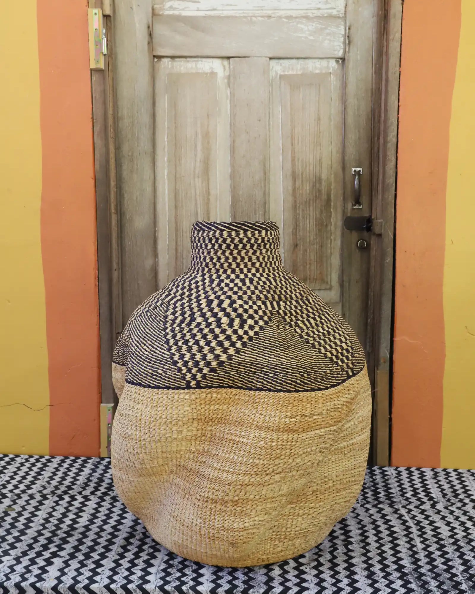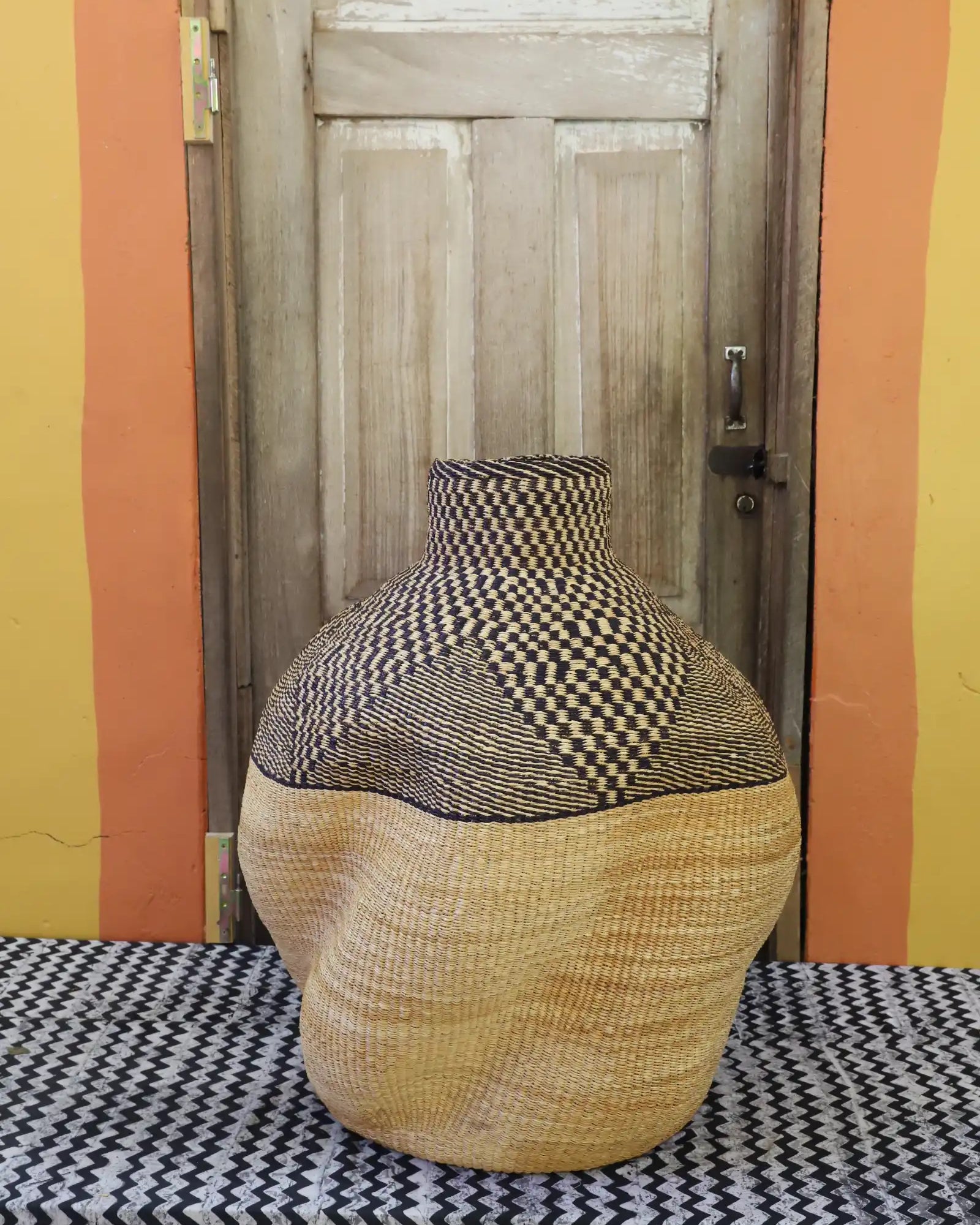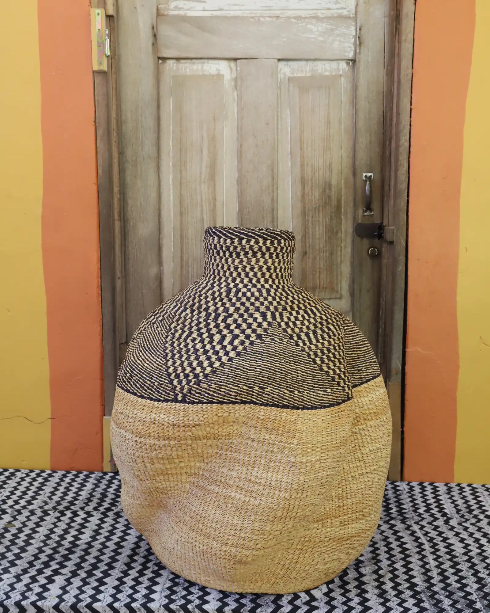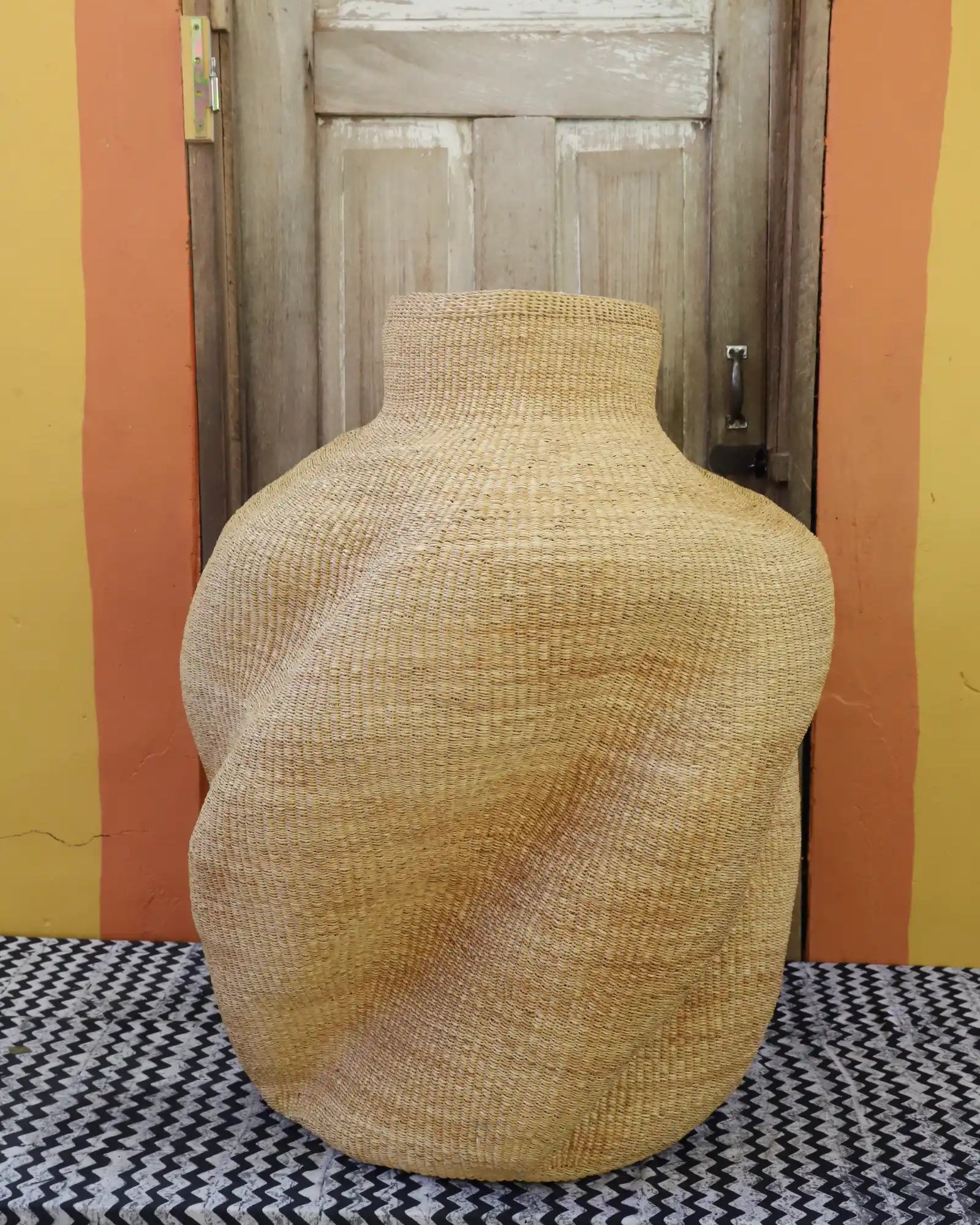 Slowly woven in our signature “Wave” design, these oversized specialty baskets are sculptural statements crafted from natural elephant grass. Each curve carries the handprint of its Master Weaver—perfect as a pair in a foyer or standing solo. Quiet drama. Functional art. Always one of a kind.