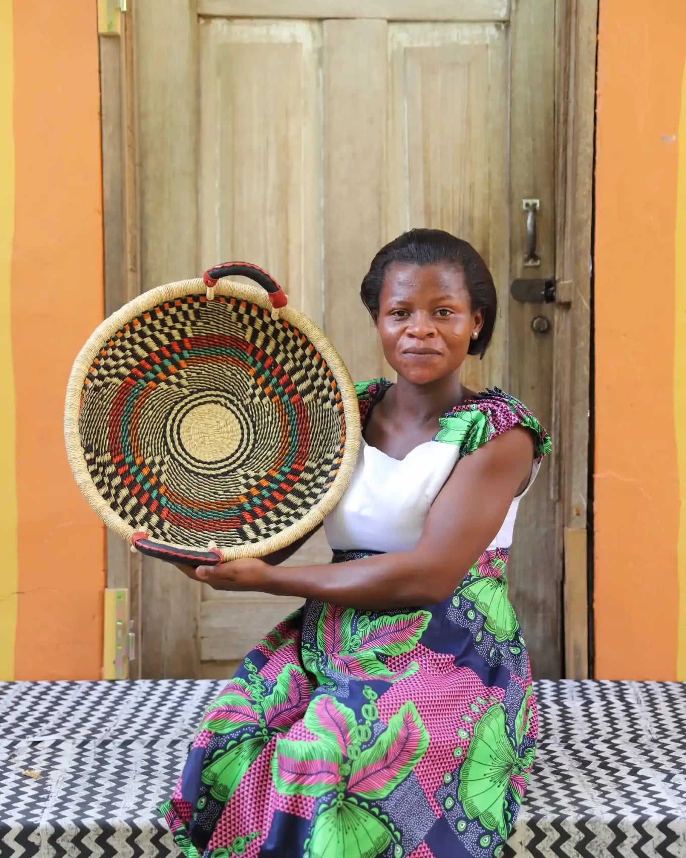 You will receive the Woven Tray in the picture. In our photos, Woven Trays are presented by the weavers who created them.