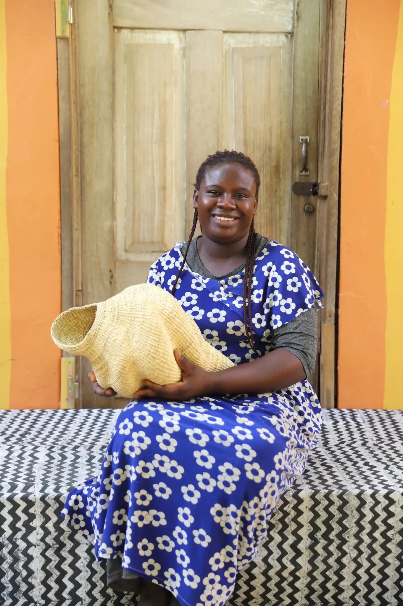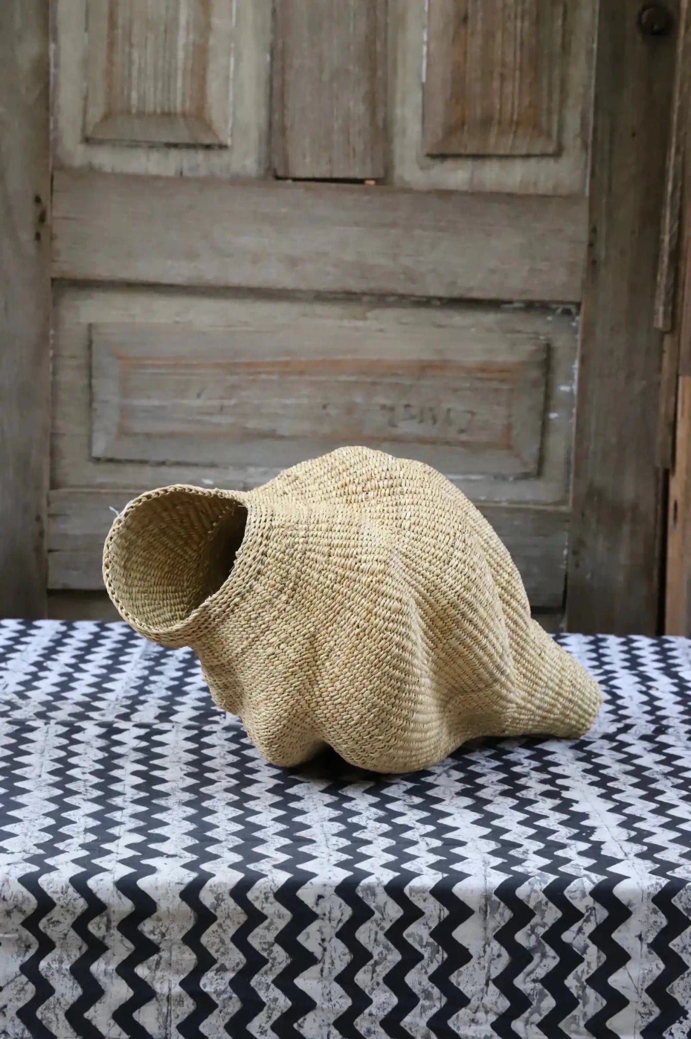 Katayeli-tia (Conch), known as the snail basket in Gurune, is an ode to the feminine. Crafted by artisan Perpetual over 3 1⁄2 weeks, its exquisite spiral design captivates with multi-dimensional beauty. Perfect as a striking statement in an entrance or overlooking the ocean in your beach home.